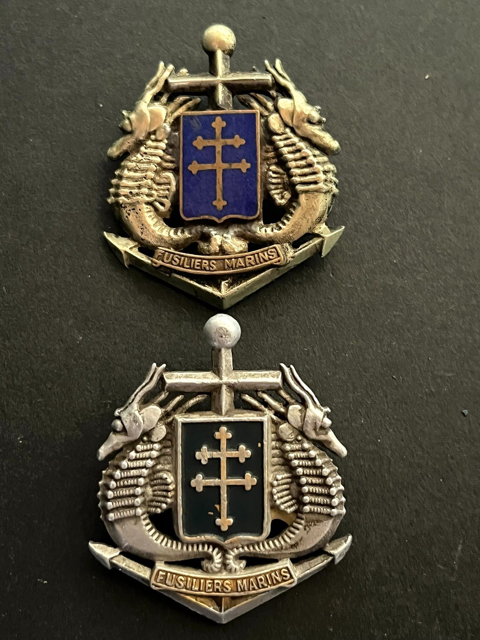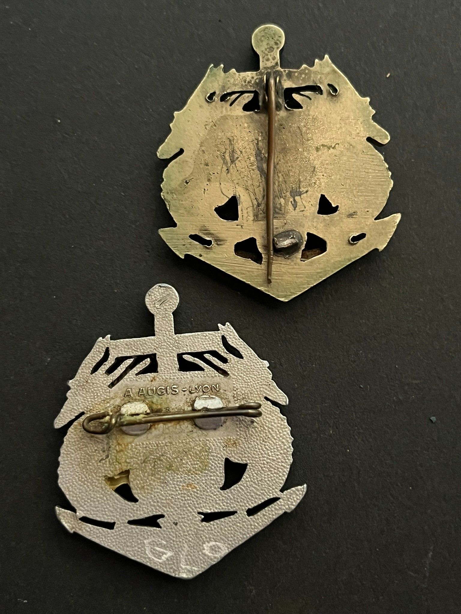 Batch of 2 parts, Badge of the BFM enamelled manufacture of Cairo, broken hook, badge of the BFM painted alu A. Augis. Lot of 2 pieces, badge of the BFM enameled Cairo manufacture broken hook, badge of the BFM painted aluminum A. Augis