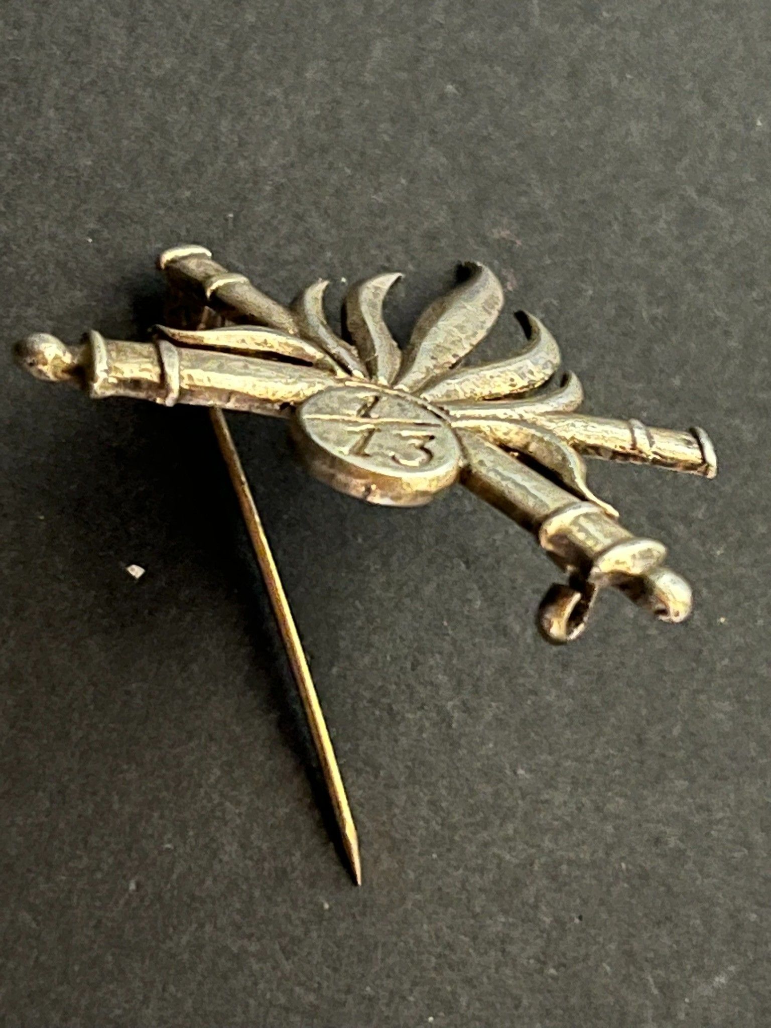 Badge of the 1st Battalion of the 13th DBLE silver with hinged pin fine Levant manufacture without mark. Badge of the 1st Battalion of the 13th DBLE silver with hinged pin fine Levant manufacture without mark