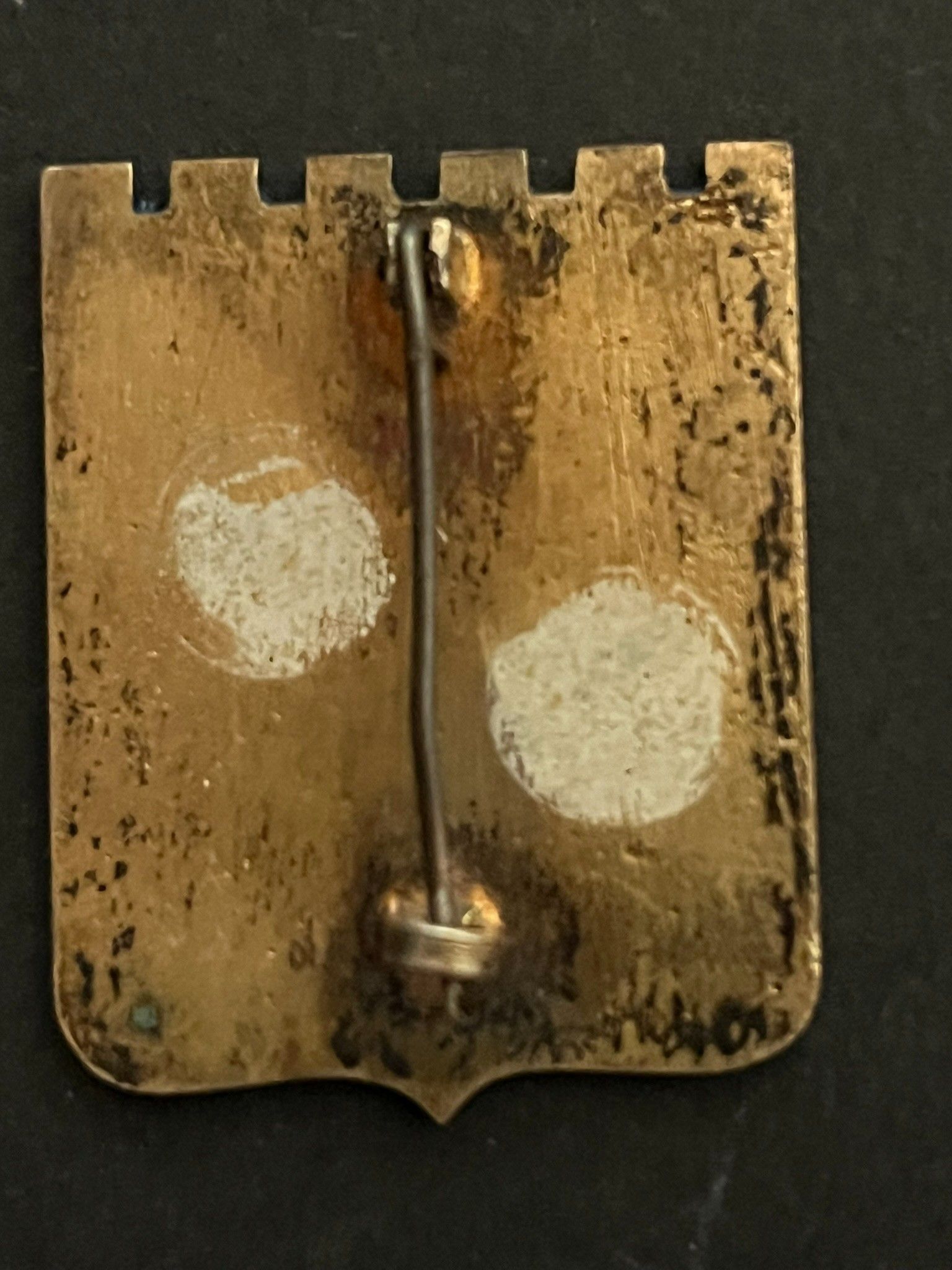Badge of the FFL Medical Section flat gilt silver painted with hinged pin local Syrian manufacture without mark. Badge of the FFL Medical Section flat gilt silver painted with hinged pin local Syrian manufacture without mark