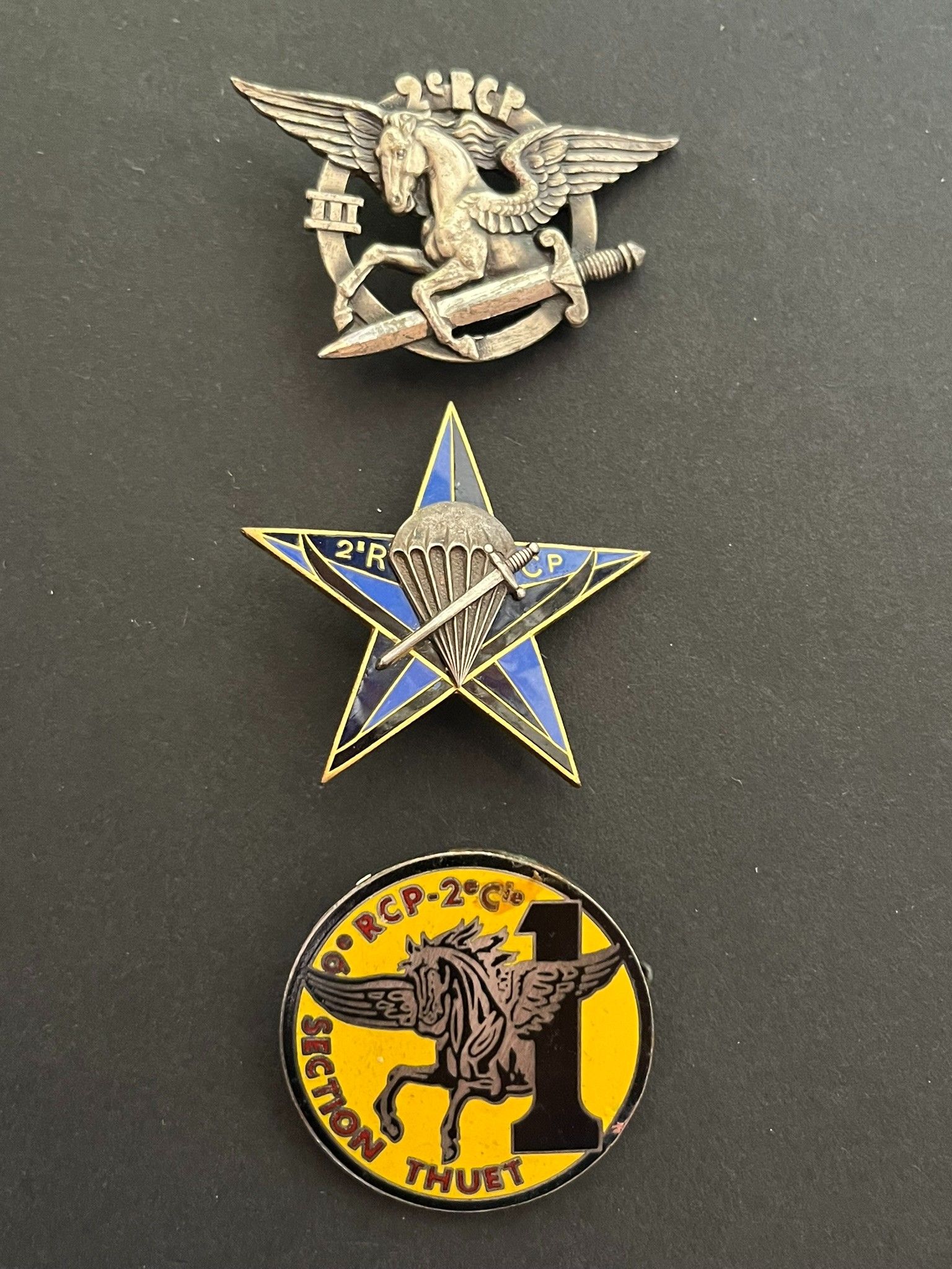 Lot of 3 pieces, SES 2 RCP Drago Ber, III/2 RCP Drago Ber, 9th RCP 2nd Company Thuet Gervasi. Lot of 3 pieces, SES 2 RCP Drago Béranger, III/2 RCP Drago Béranger, 9th RCP 2nd Company Thuet Gervasi