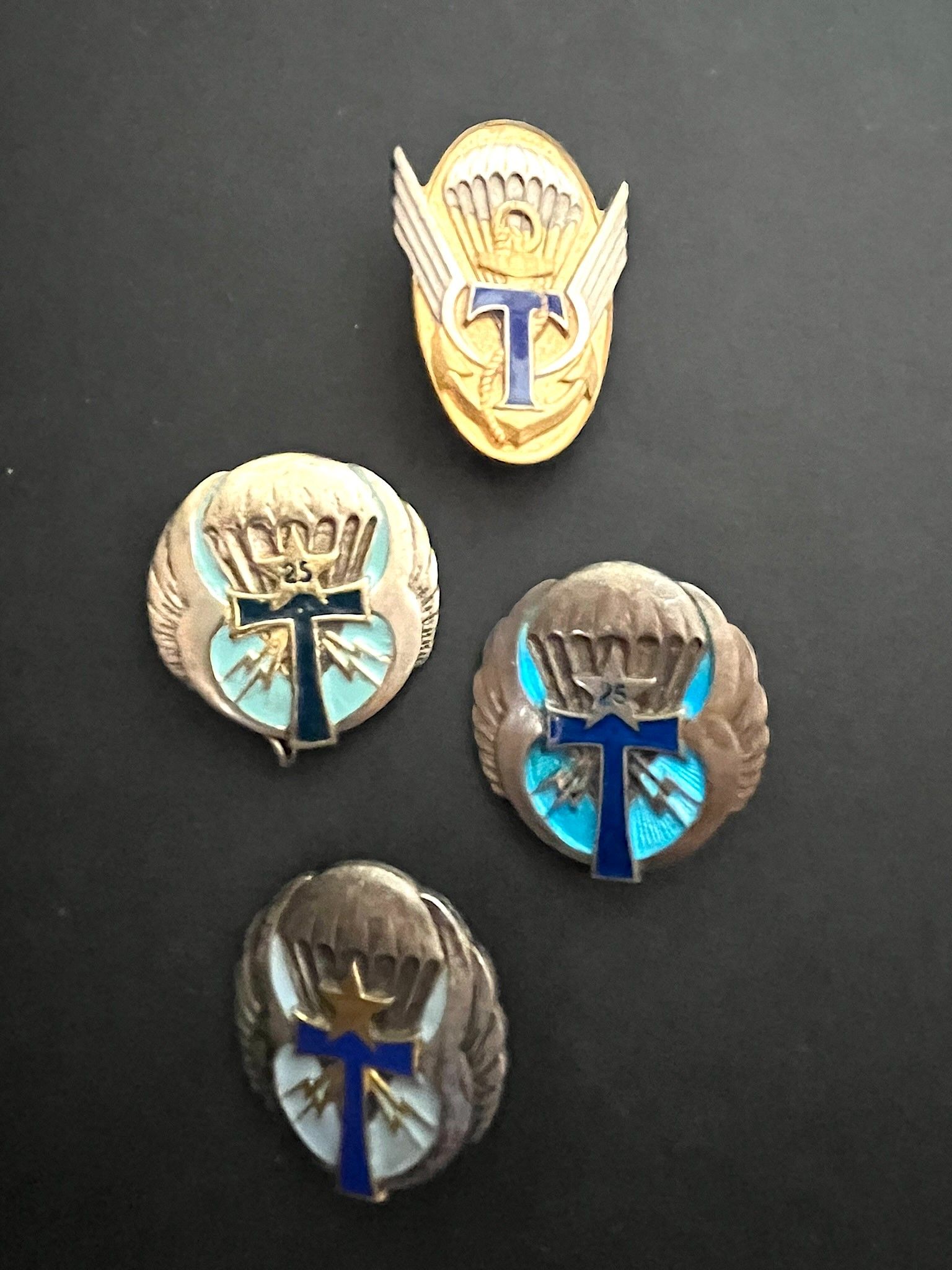 Lot of 4 pieces ,Silver badge Transmissions 25 DP Drago OM, Transmissions 25 DP locally cast, Transmissions 25 DP Drago Paris, 342 CTP Drago Paris. Lot of 4 pieces, silver badge Transmissions 25 DP Drago Overseas, Transmissions 25 DP local cast, Transmissions 25 DP Drago Paris, 342 CTP Drago Paris