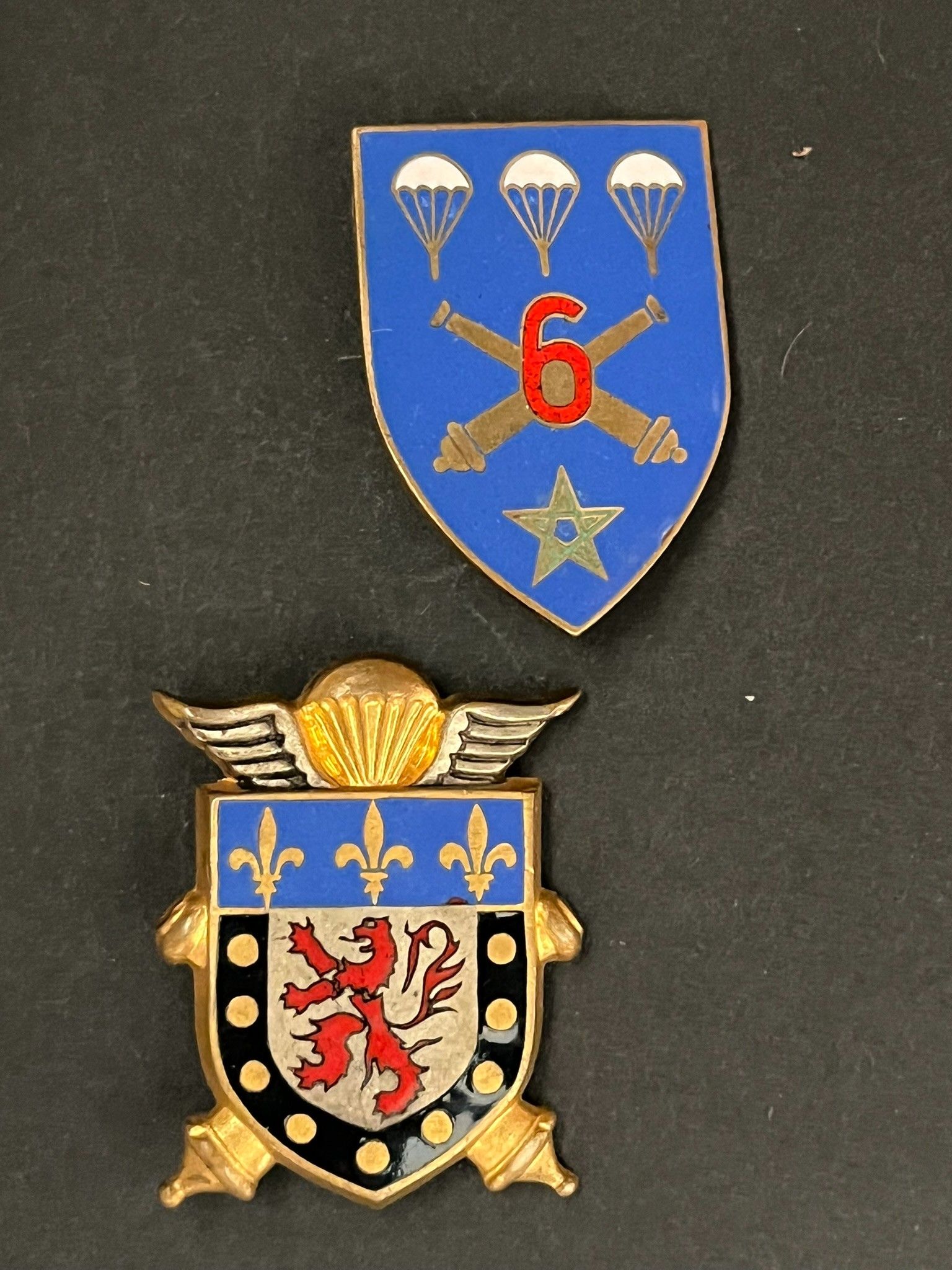 Lot of 2 pieces, 6th RALP 39mm without mark, 20th Airborne Group hinged pin without mark. Lot of 2 pieces, 6th RALP 39mm without mark, 20th Airborne Group hinged pin without mark