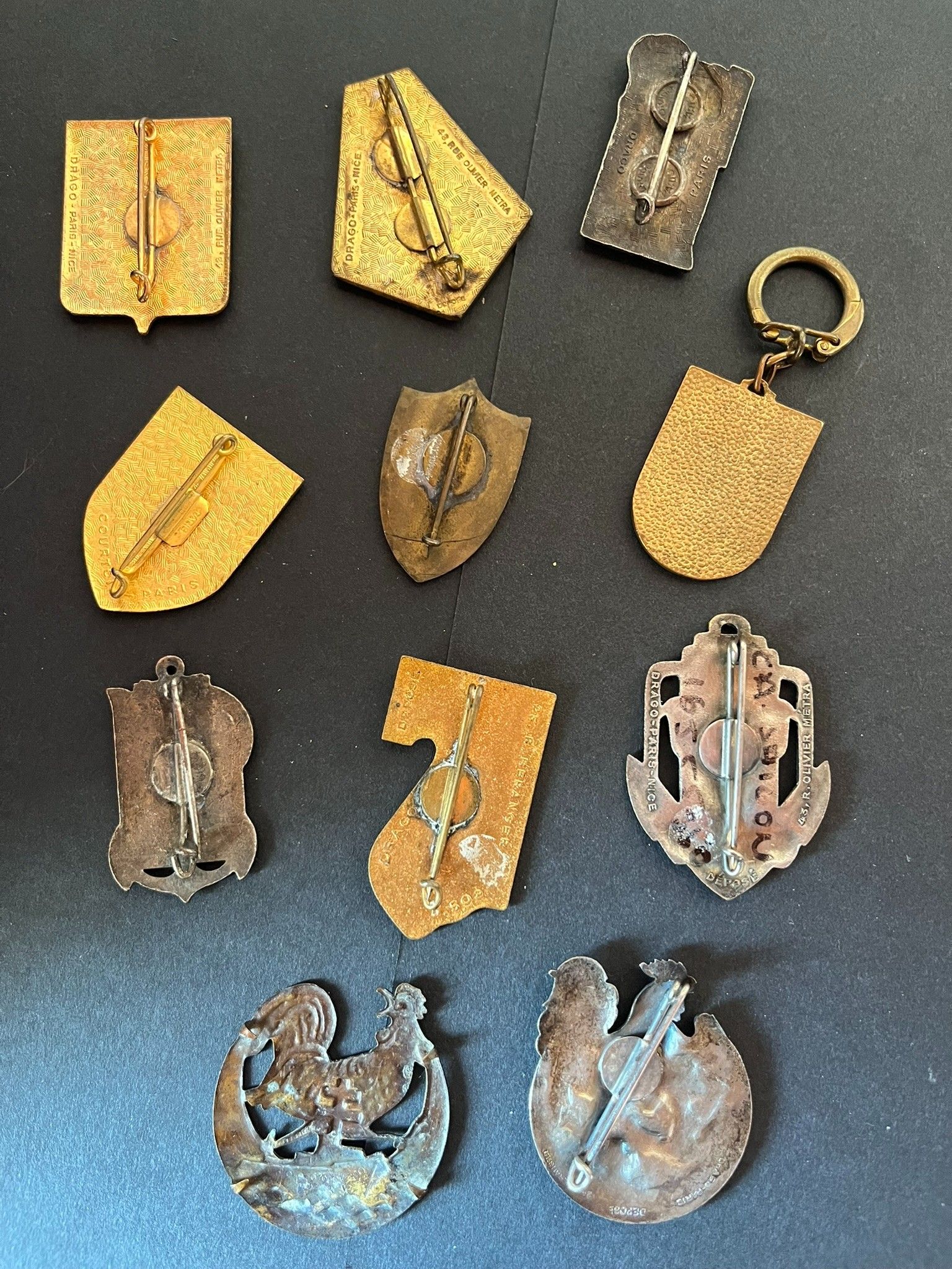 Lot of 11 pieces, Marseille Base Drago marked, Marseille Base stamped metal, CEFEO 1st model painted local manufacture, 2 DMT Courtois, GFOT Drago OM, Namky Railway Guards Drago Paris, Commandement Blindés EO sans, Compagnie de Garnison de Saigon Drago OM, Base Militaire Saigon Drago Ber, Compagnie de Garnison de Hanoi Drago OM, CEFEO key ring, chips. Lot of 11 pieces, Marseille Base Drago marked, Marseille Base stamped metal, CEFEO 1st model painted local manufacture, 2 DMT Courtois, GFOT Drago Overseas, Namky Railway Guards Drago Paris, Armored Command EO without mark, Saigon Garrison Company Drago Overseas, Saigon Military Base Drago Béranger, Hanoi Garrison Company Drago Overseas, CEFEO key ring with chips