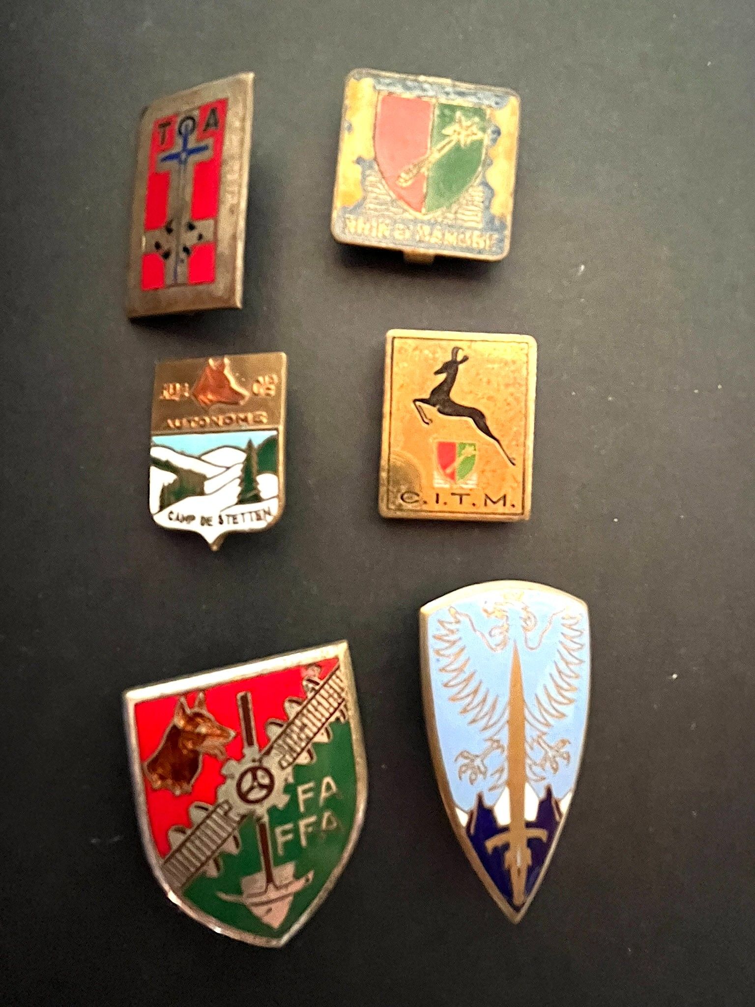 Lot of 6 pieces, Rhine and Danube painted, TOA Drago Ber, 302nd Company Stetten Augis, Mountain Tactical Instruction Center German manufacture without mark, FFA Cynophile Engineers German manufacture Mayer, FF Austria AB. Lot of 6 pieces, Rhin et Danube painted, TOA Drago Béranger, 302nd Company Stetten Augis, Mountain Tactical Instruction Center German manufacture without mark, FFA Cynophile Engineers German manufacture Mayer, FF Austria AB