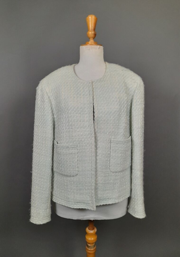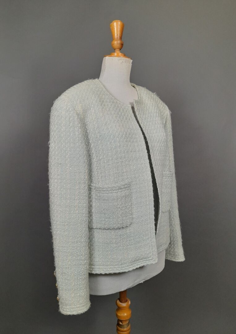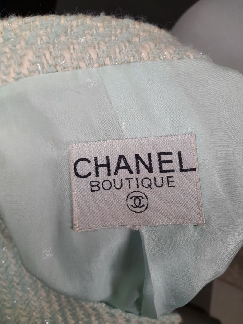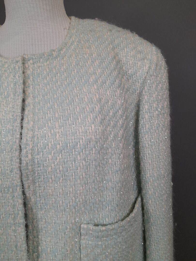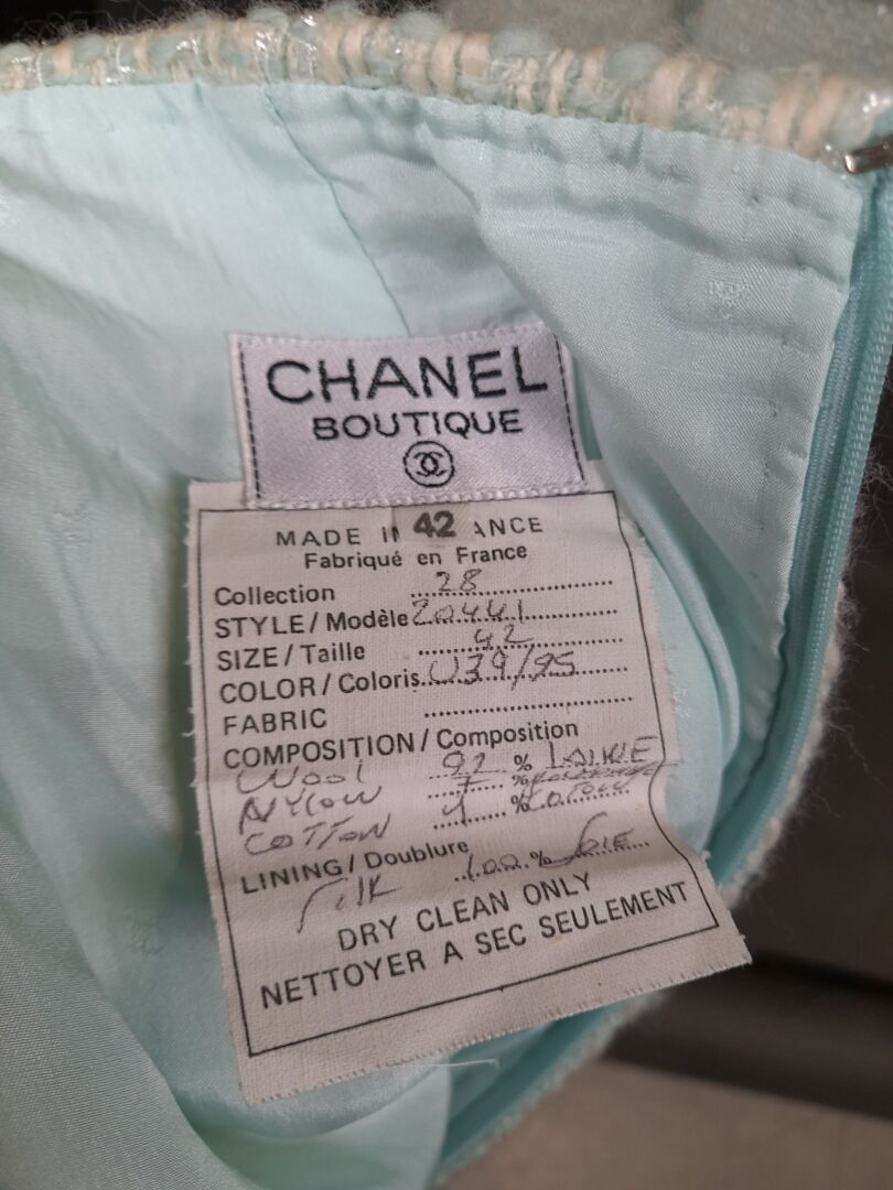 Premium CHANEL BOUTIQUE, PARIS. Light blue and ecru wool, polyamide …
