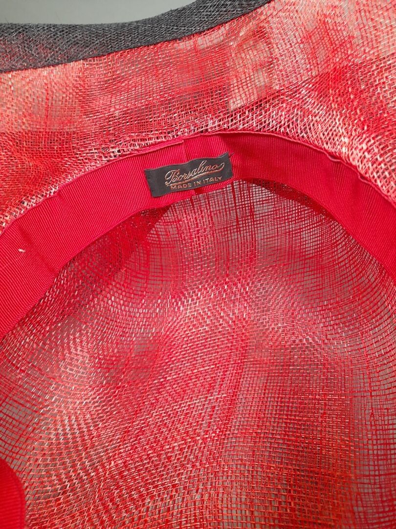 BORSALINO. Asymmetrical wide-brimmed cap in red and black si…