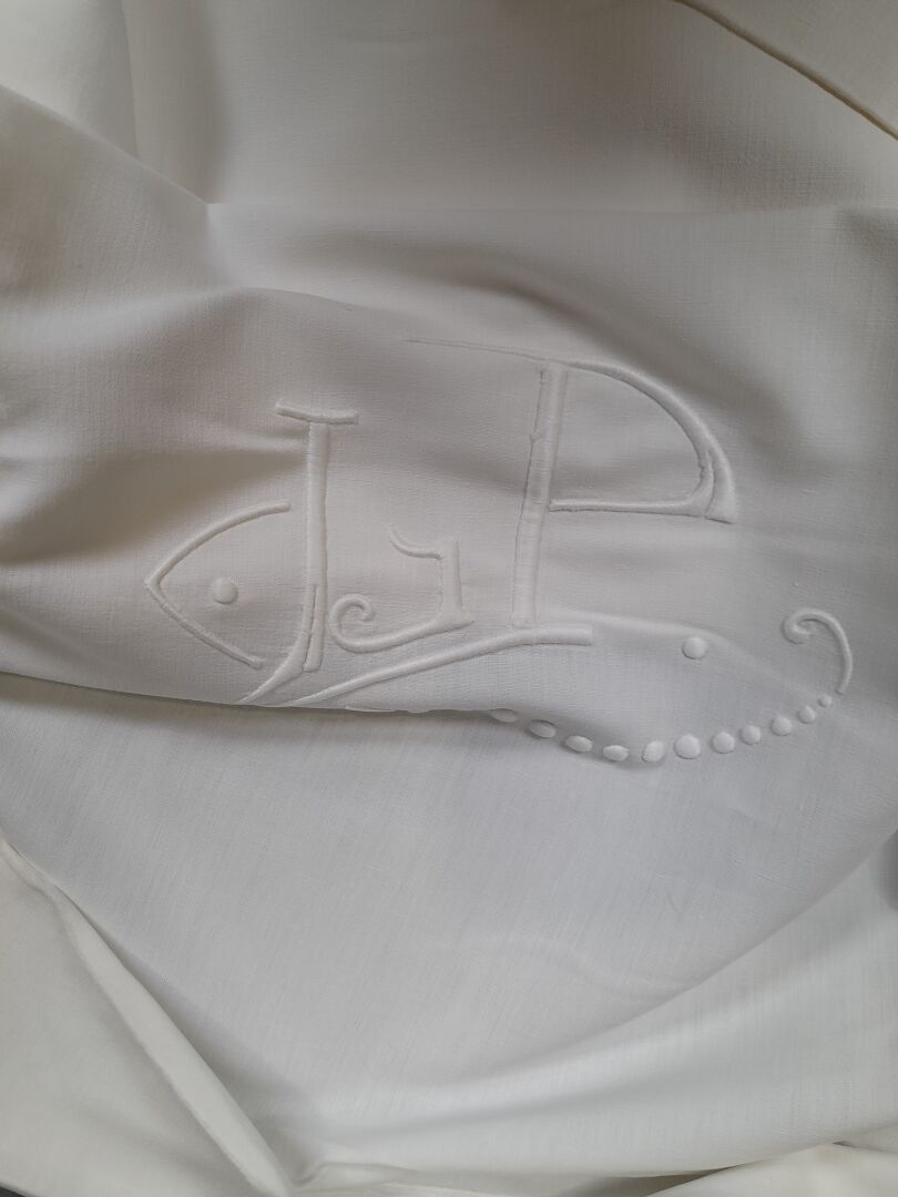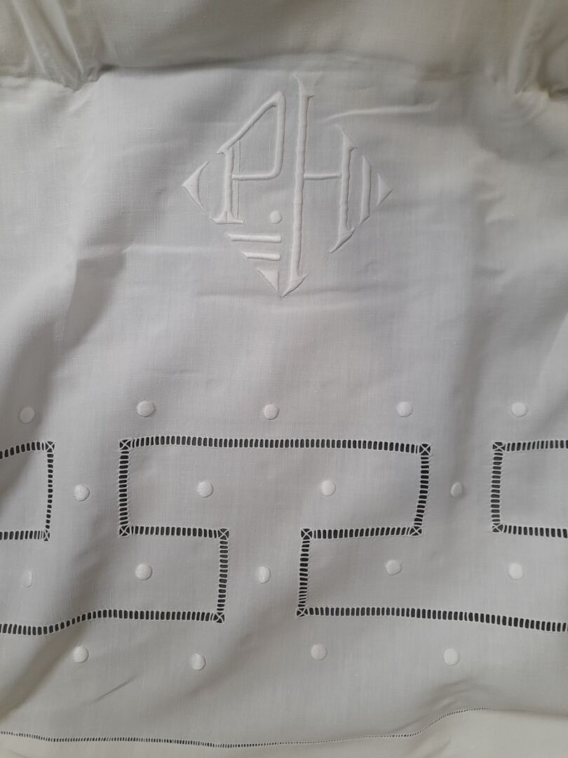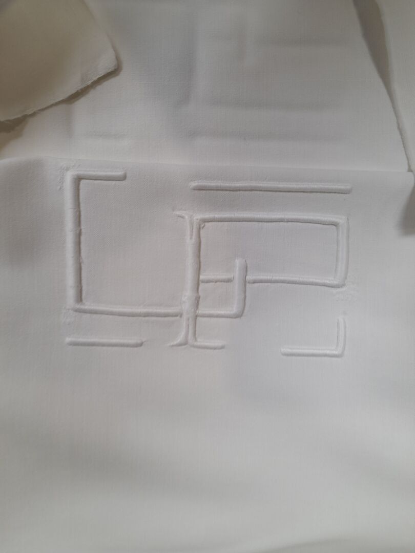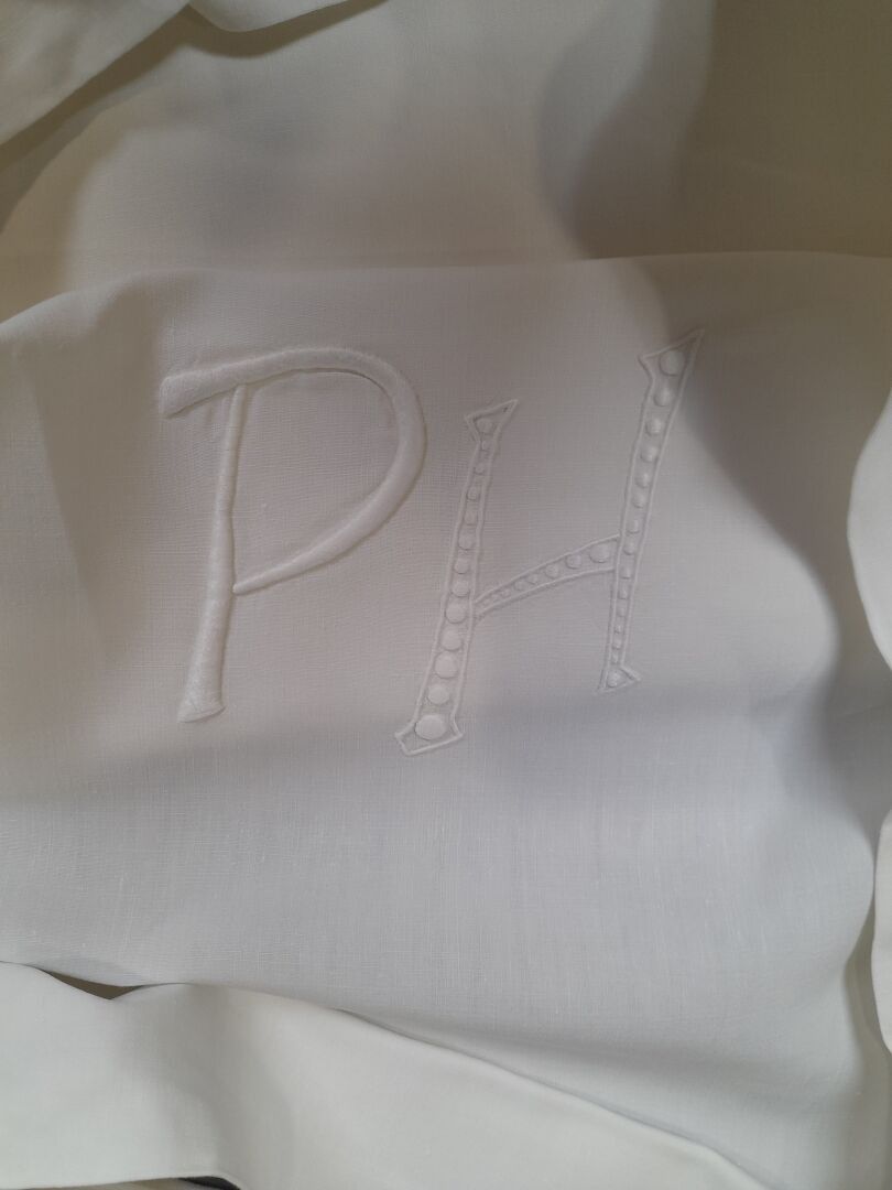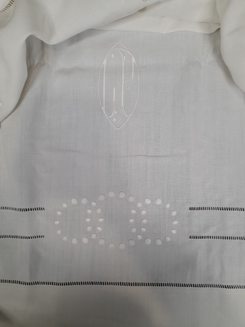 Set of embroidered and figured linen sheets.