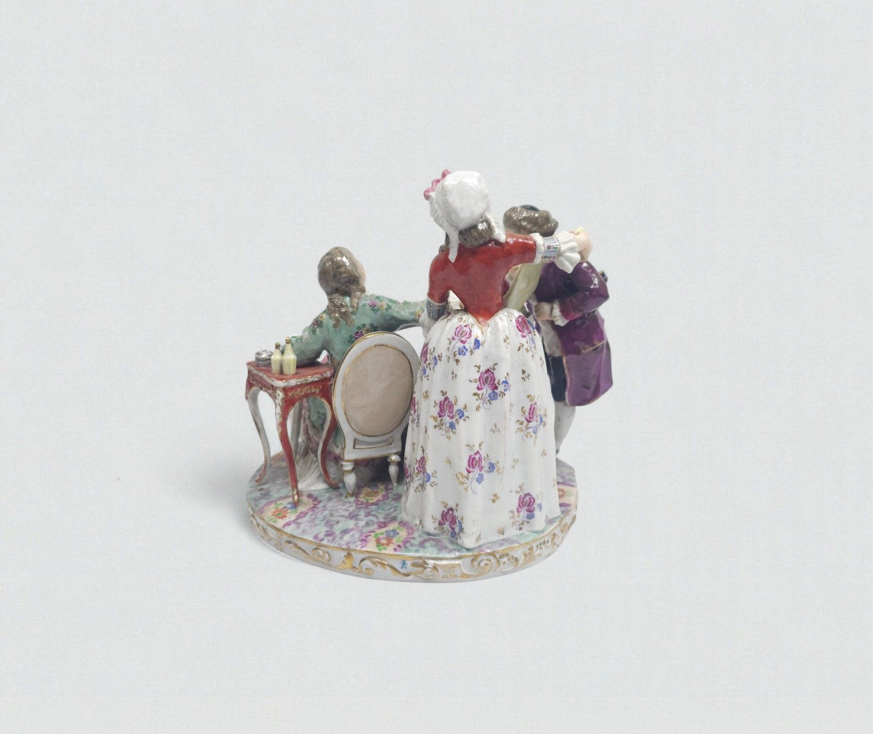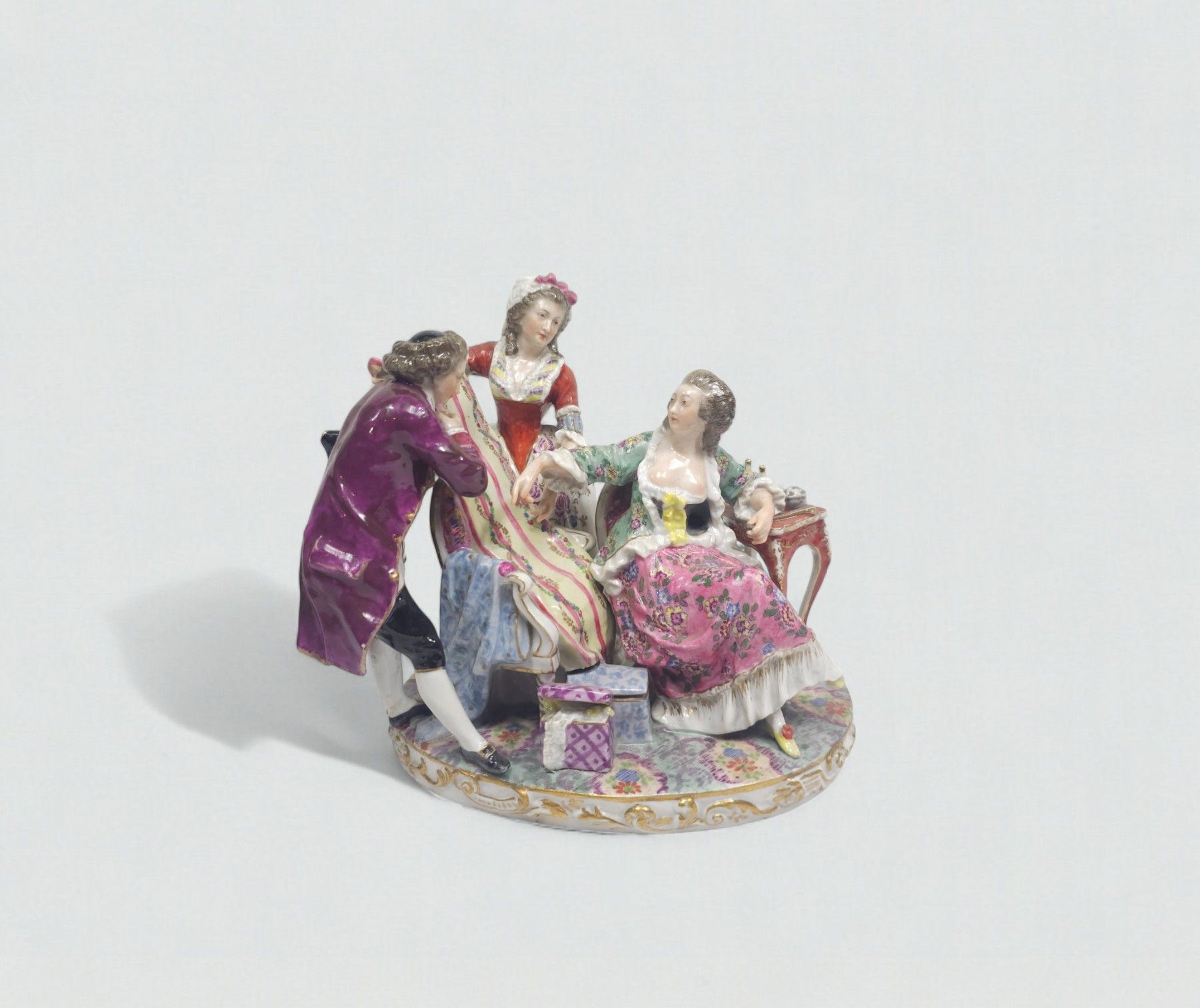Manufacture of Frankenthal - Dresden. Polychrome porcelain group with 3 figures. H: 20 W: 17 D: 19 cm (Unsigned). (Slight accidents)