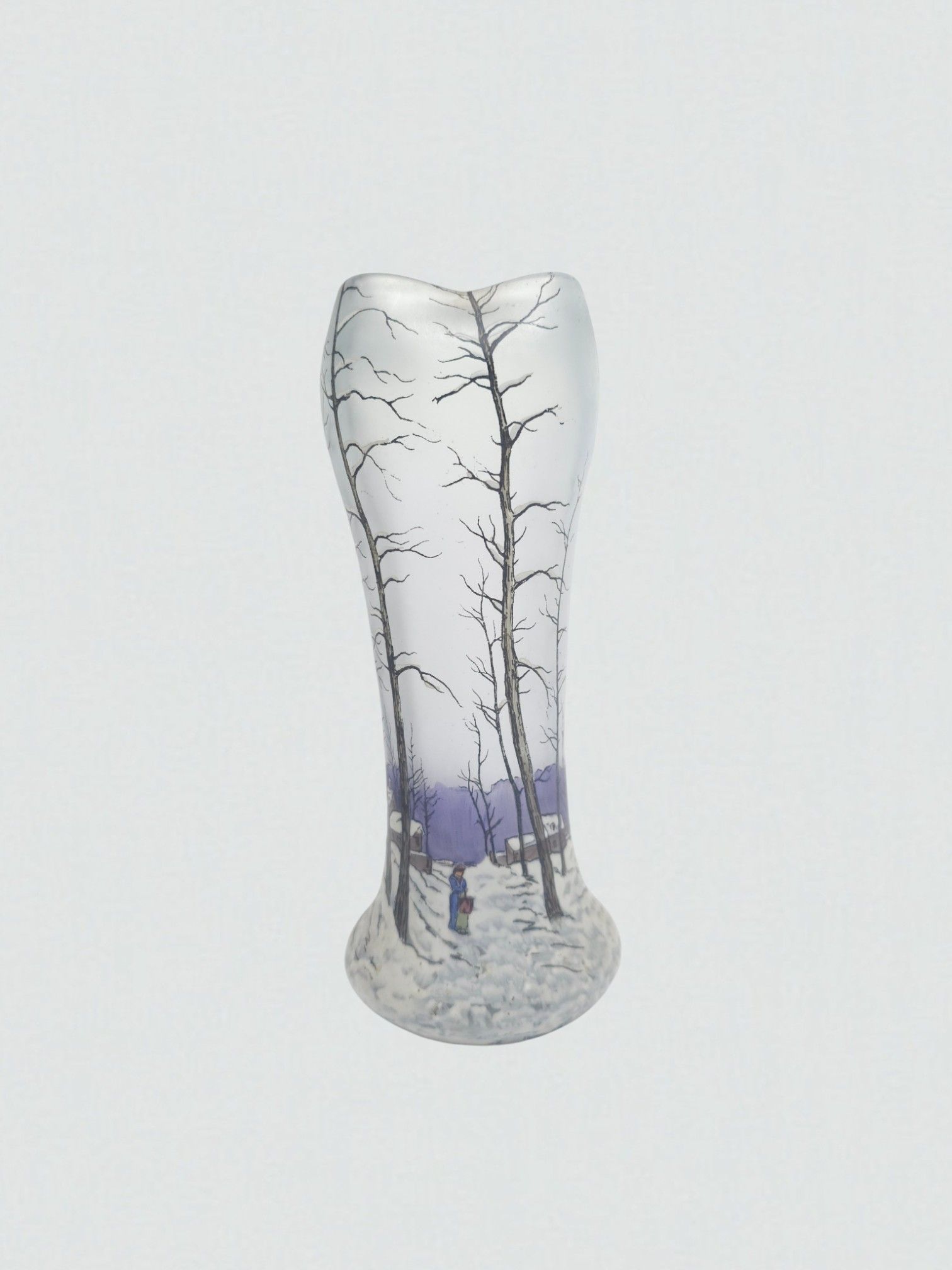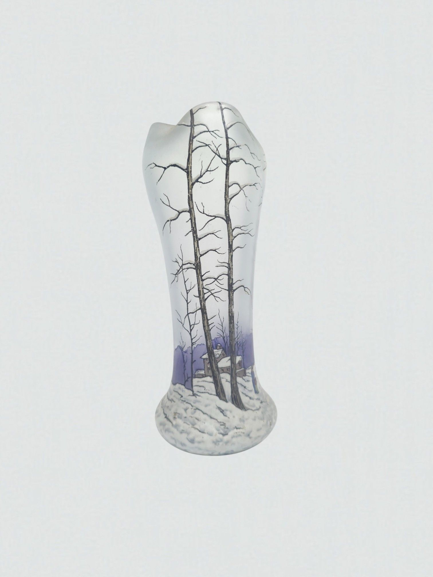 Attributed to François-Théodore LEGRAS (1839-1916). An enamelled glass vase "Sous la neige". H: 22 cm.