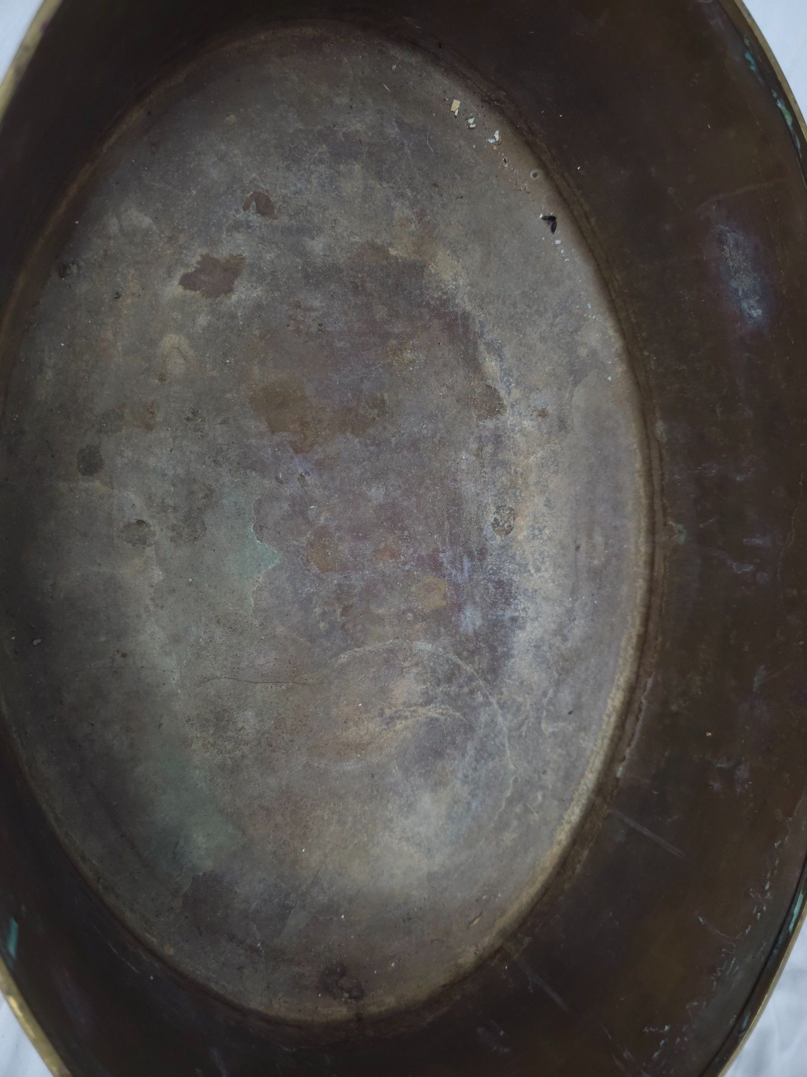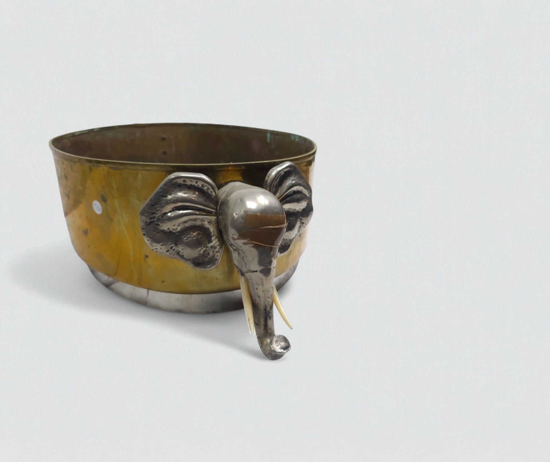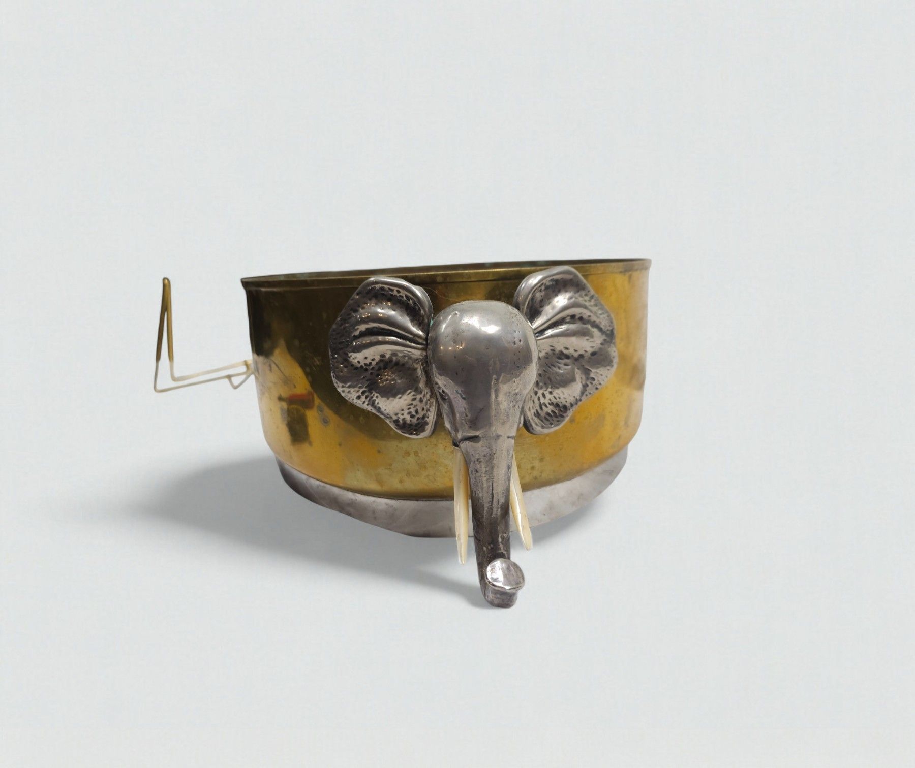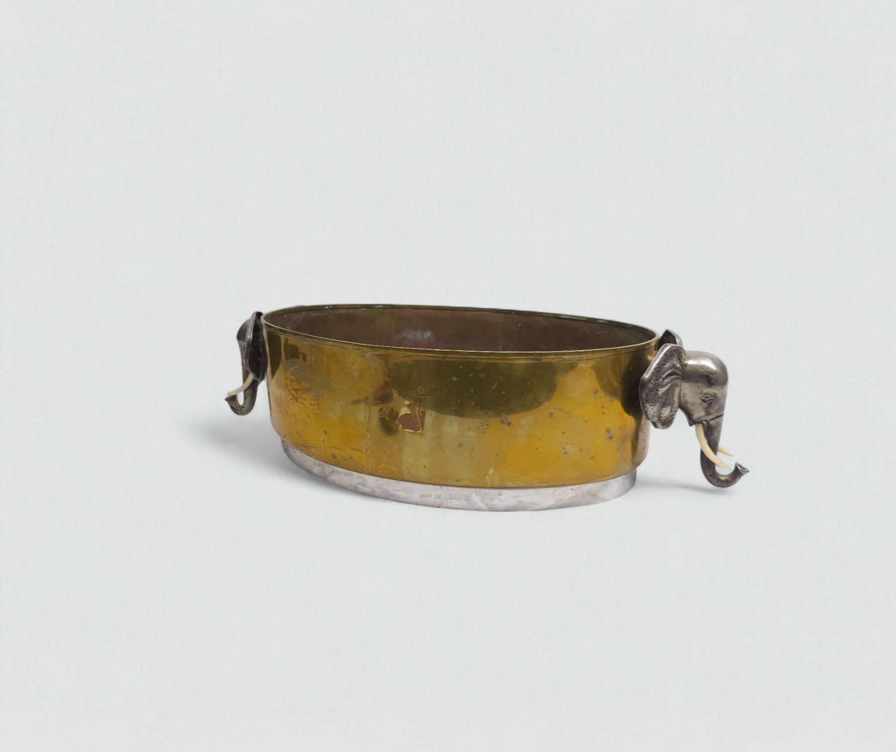 Gabriella BINAZZI (XXth-XXIth century) attributed to. Large planter in gilded metal (brass?) on a chrome base. Elephant head handles H: 17 W: 74 D: 38 cm (Wear)
