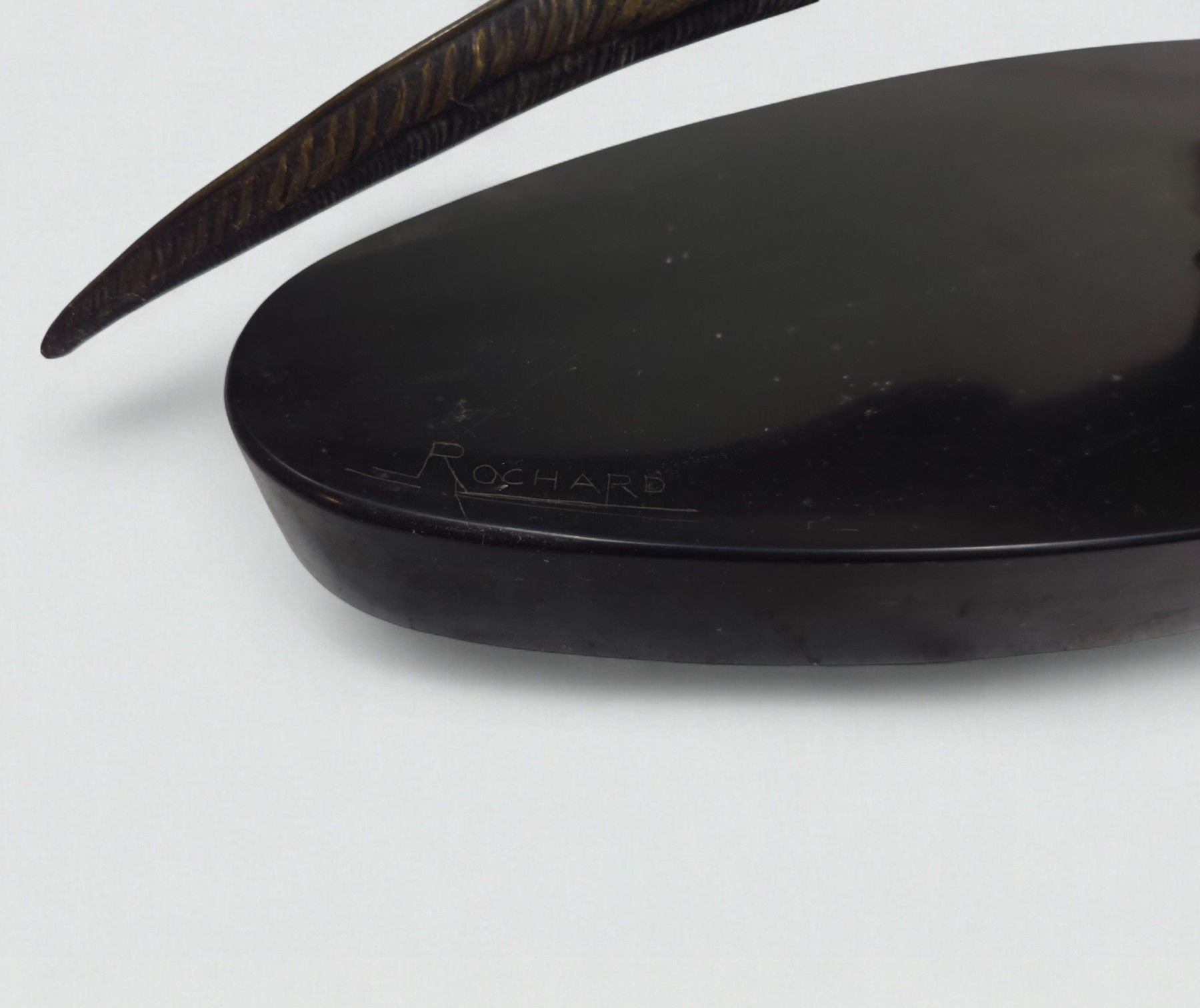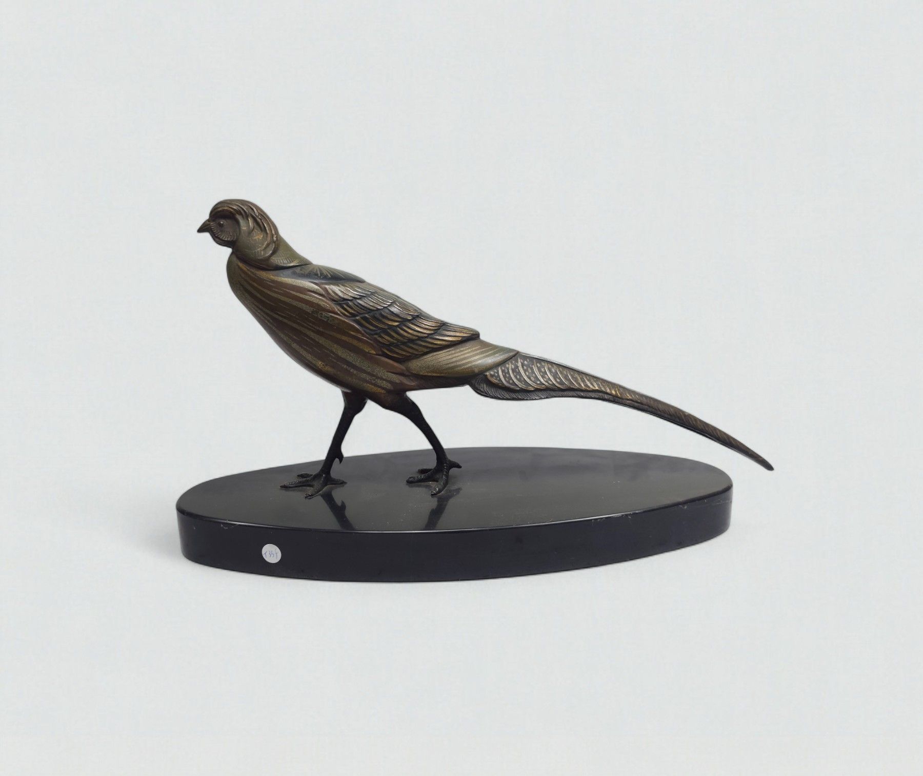 Irénée ROCHARD (1904-1984). "Pheasant" in patinated regula on a black marble base. H: 28 W: 50 D: 17 cm (slight wear)