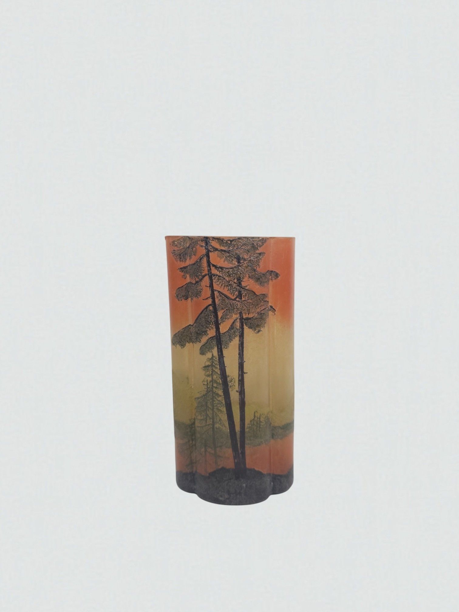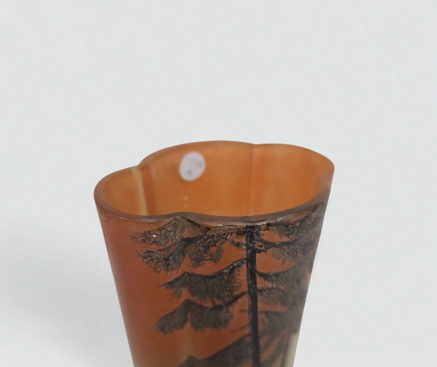 FRANCOIS THEODORE LEGRAS (1839-1916). 1 vase with enamelled decoration of a lake landscape. Signed. H: 22 W: 11 D: 8 cm (slight wear)