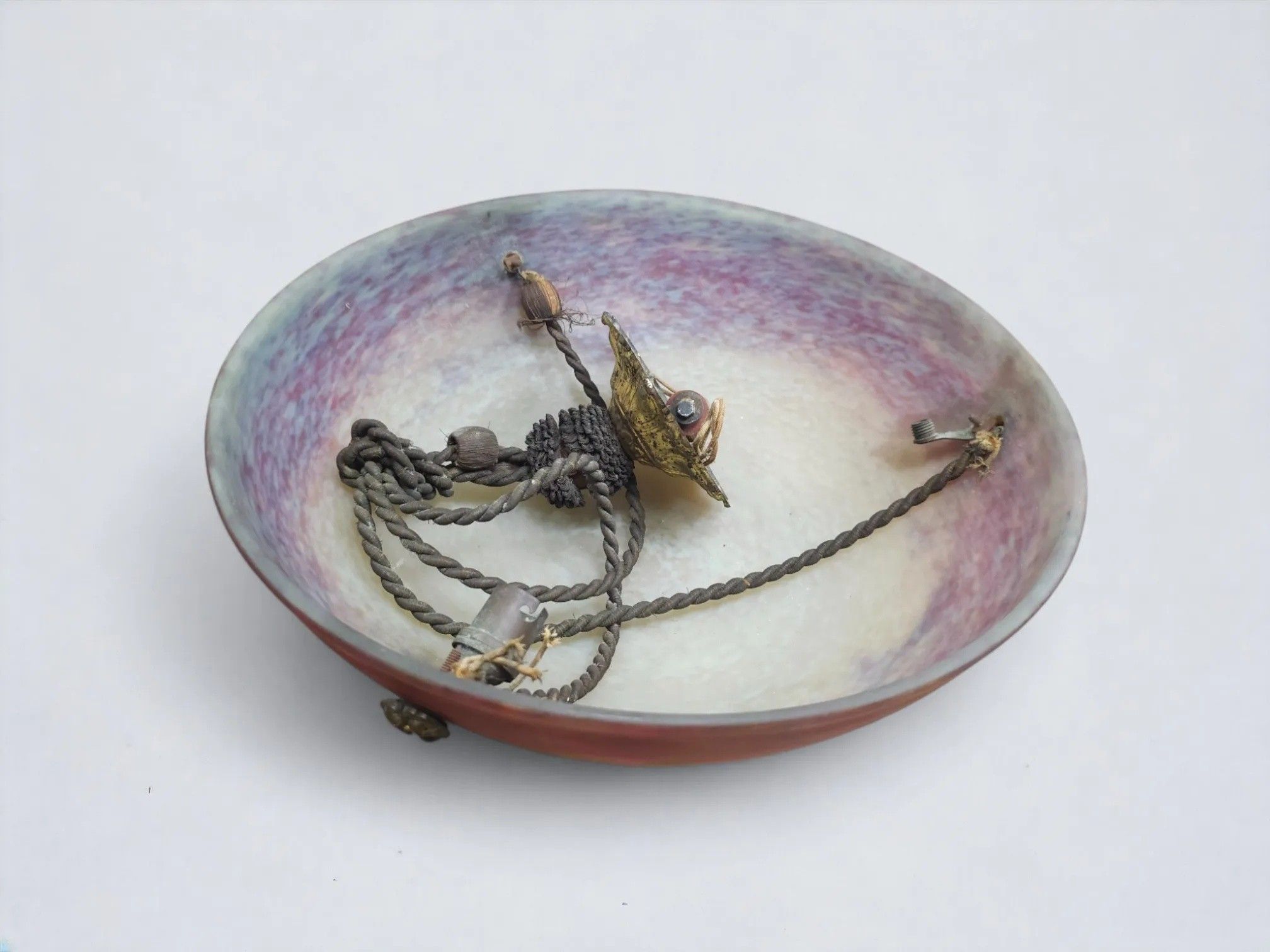MULLER FRERES. 1 violet and white marmorated glass suspension. D: 36 cm (slight wear)