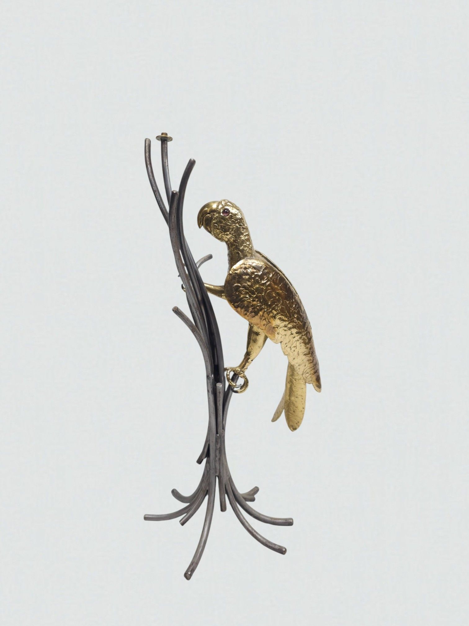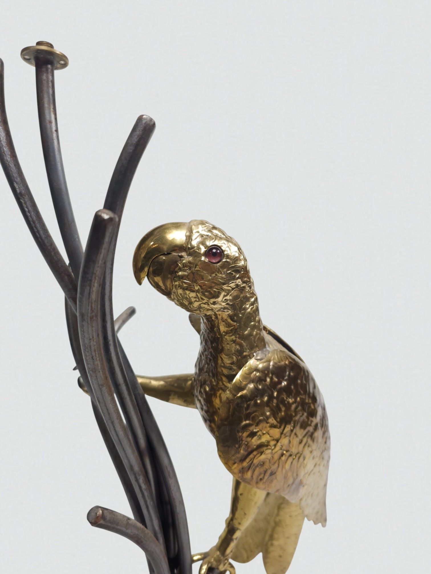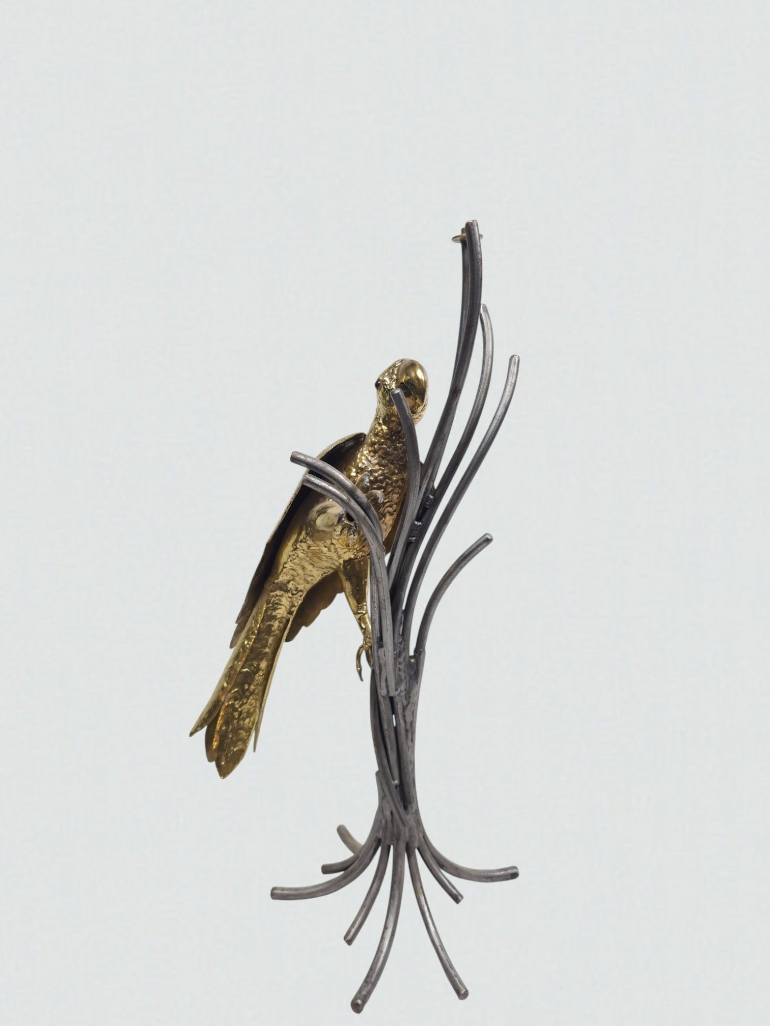 Philippe Lambert (born 20th) "The parrot" in gilded bronze and metal branch. Created around 2009. H: 63 W: 30 D: 20 cm (slight wear)