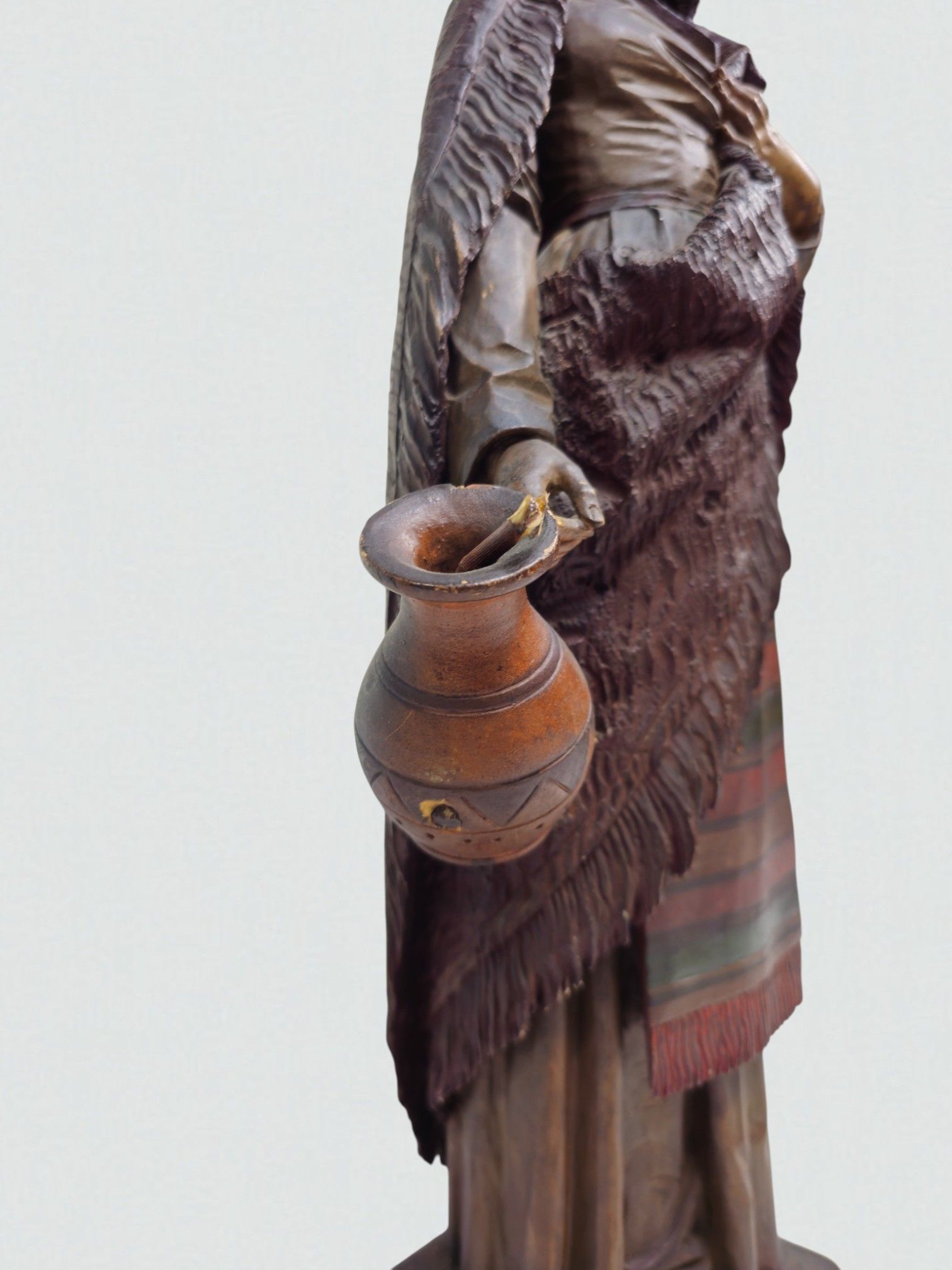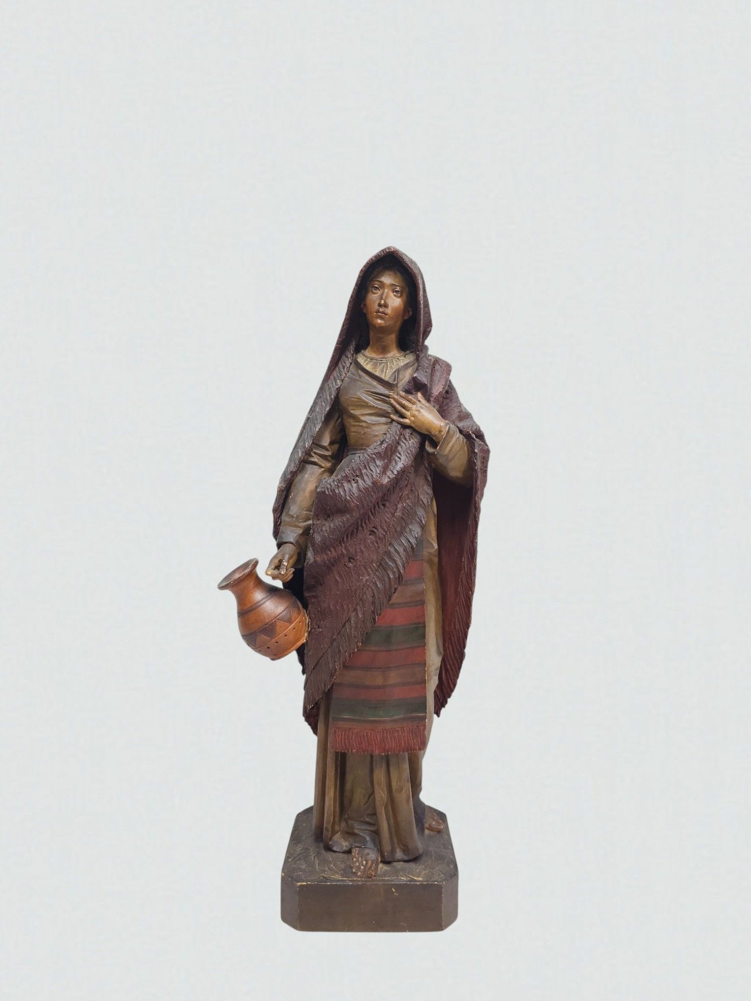 Attributed to ? / In the style of Louis HOTTOT (1834-1905). "Oriental woman with a jug" in polychrome wood. H: 61 W: 19 D: 15 cm (Accidents / cracks)