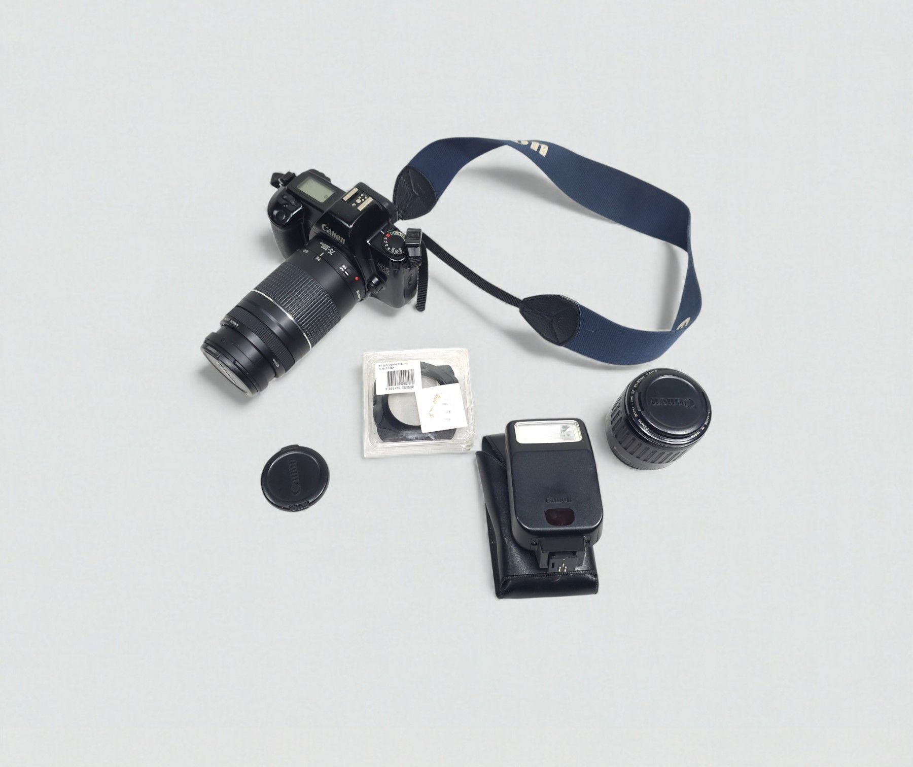 CANON. CANON camera model " EOS 1000 " with 2 lenses ; 1 fla…