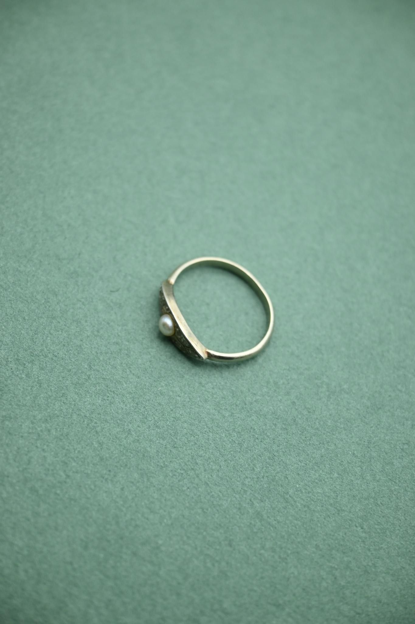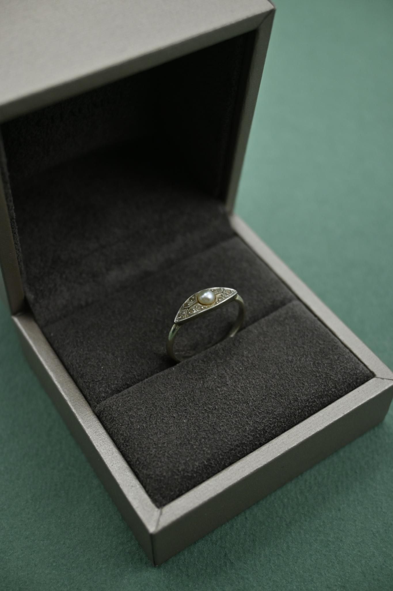 18K 750 thousandths white gold and 850 thousandths platinum ring centred on a pearl surrounded by diamond chips Finger size: 55 Gross weight: 2.3 g