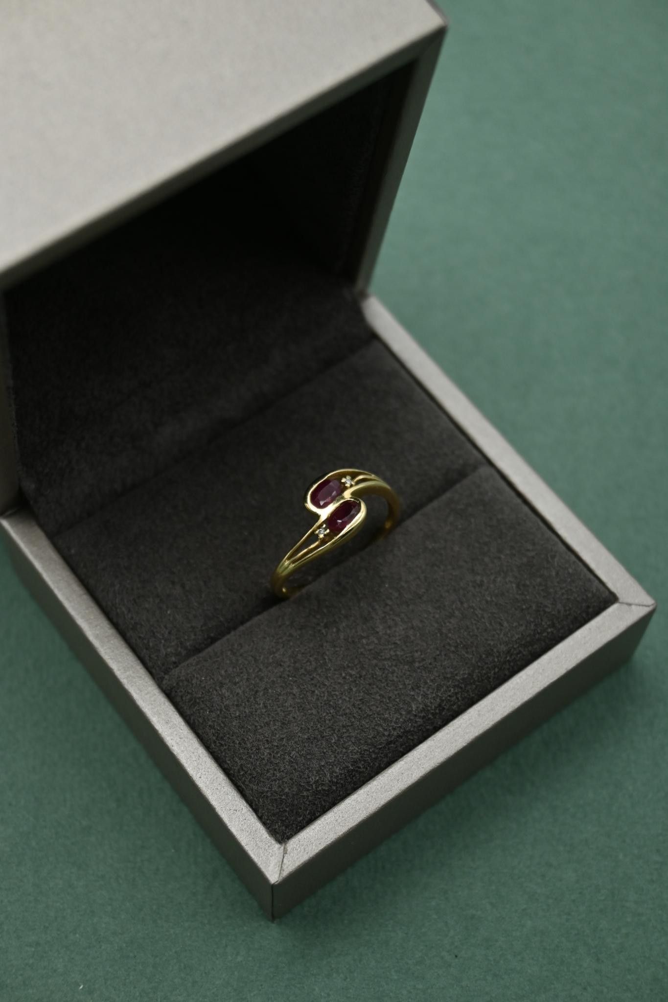 Vous et moi ring in 18K gold 750 thousandths, oval rubies and small diamonds (Twisted) Finger size : 57 . Gross weight: 2.4 g