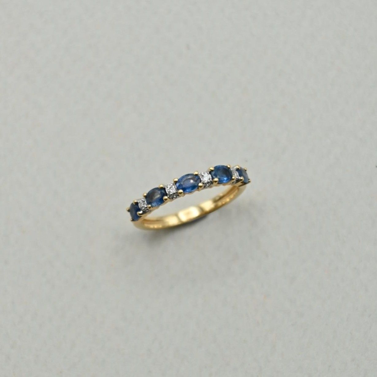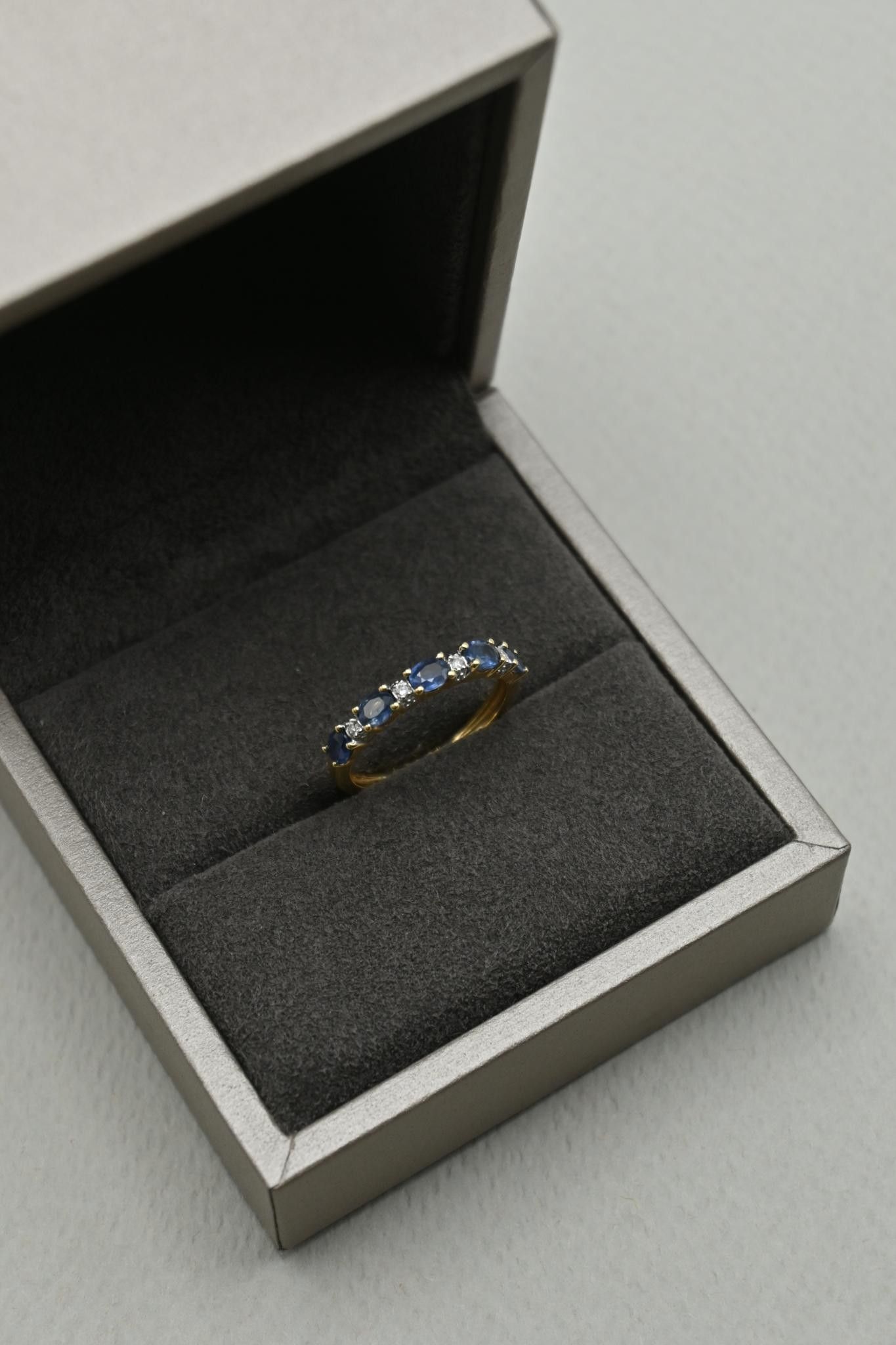 Half-ring in 18K 750 thousandths gold set with sapphires and diamonds.