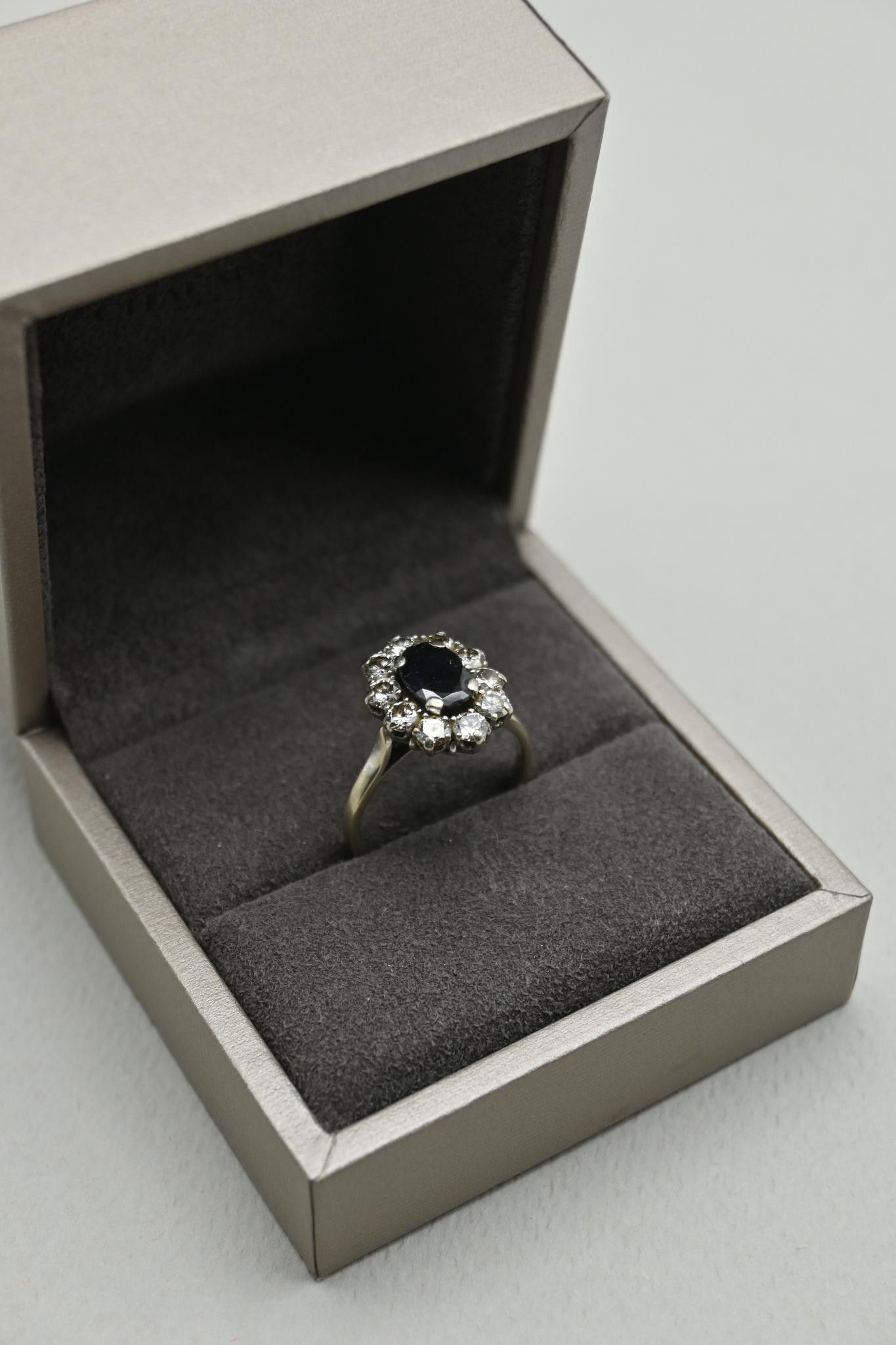 Marguerite ring in 18K white gold 750 thousandths, sapphire …