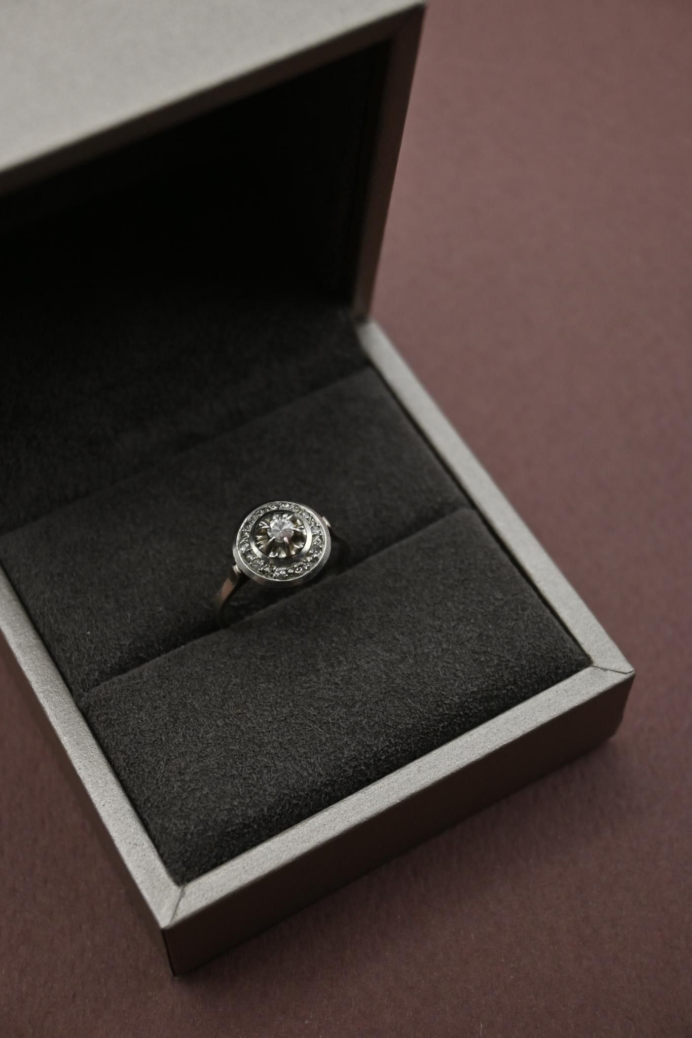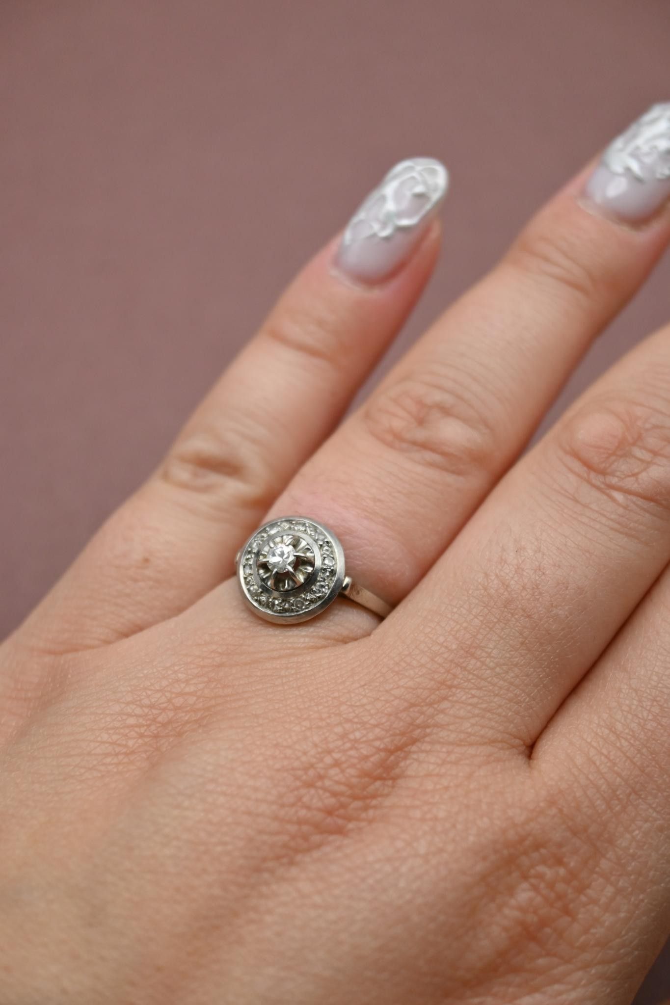 Ring in 850 thousandth platinum and 18K 750 thousandth white gold with round top set with diamonds. Circa 1920.