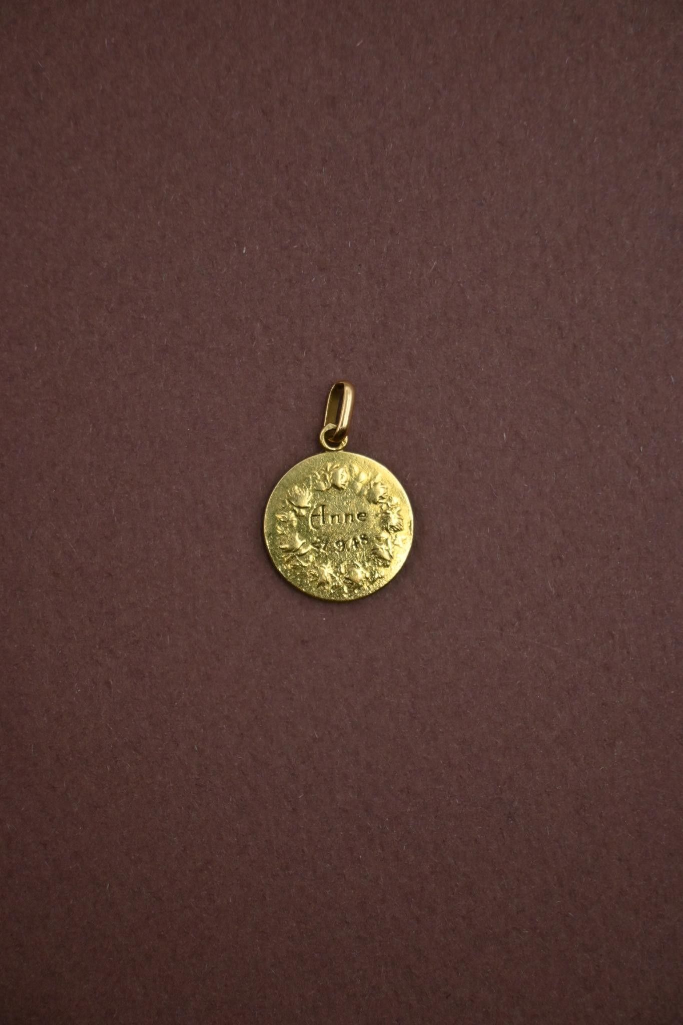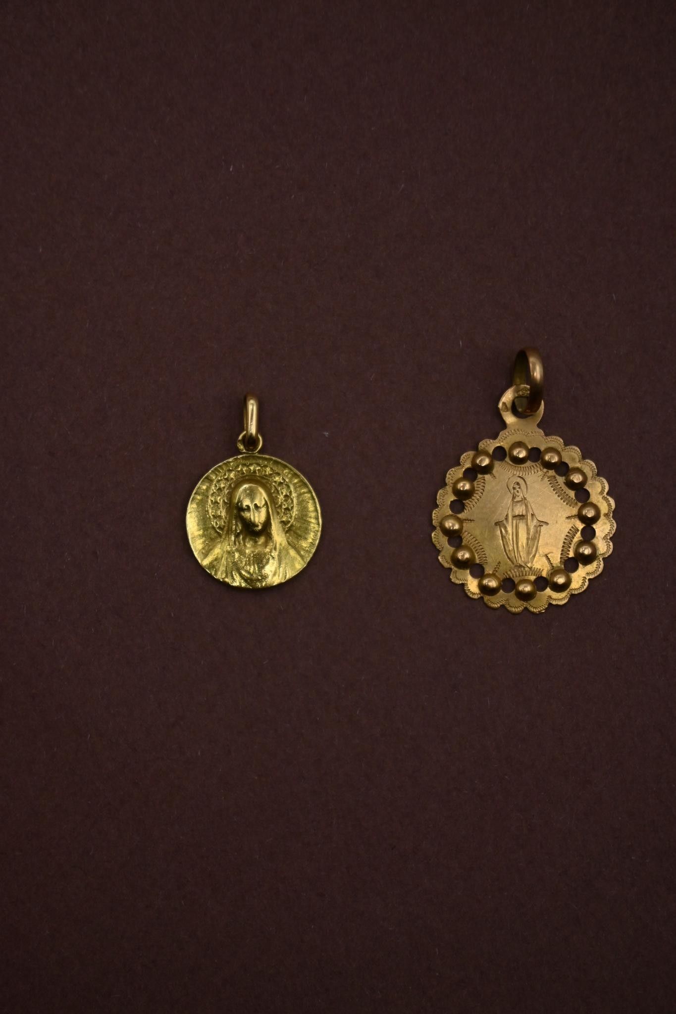Two 18K 750 thousandths gold medals, one engraved.