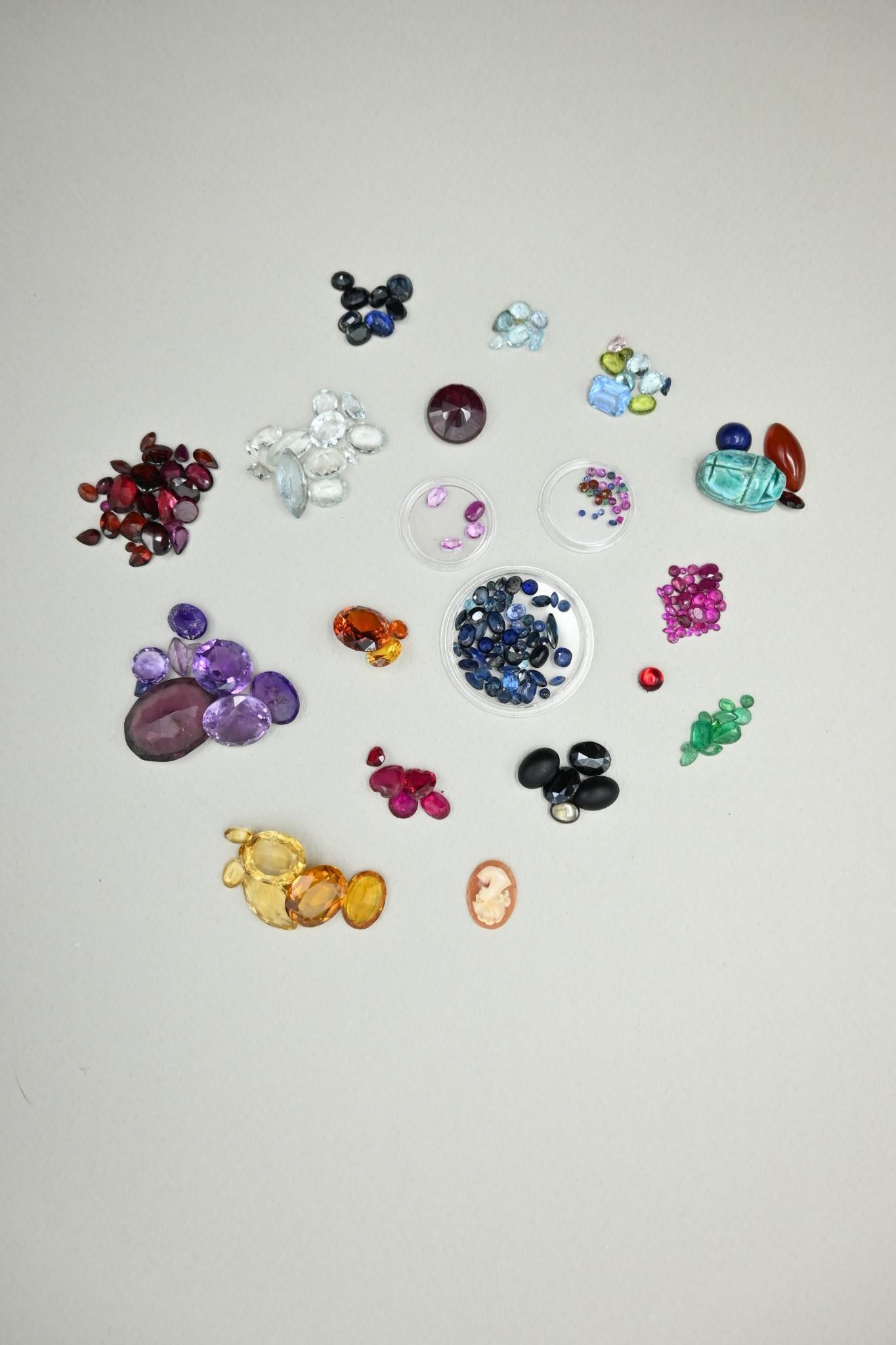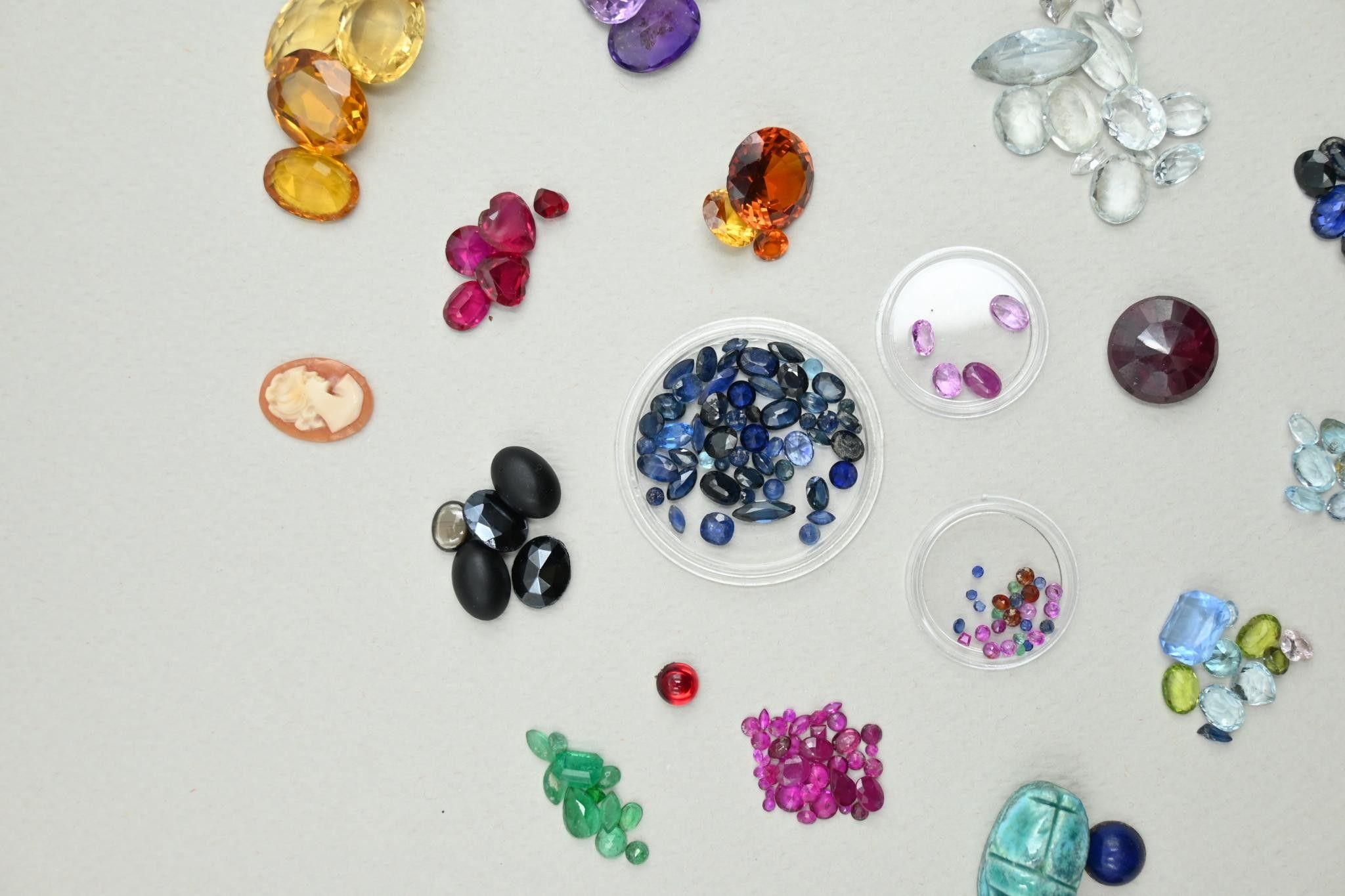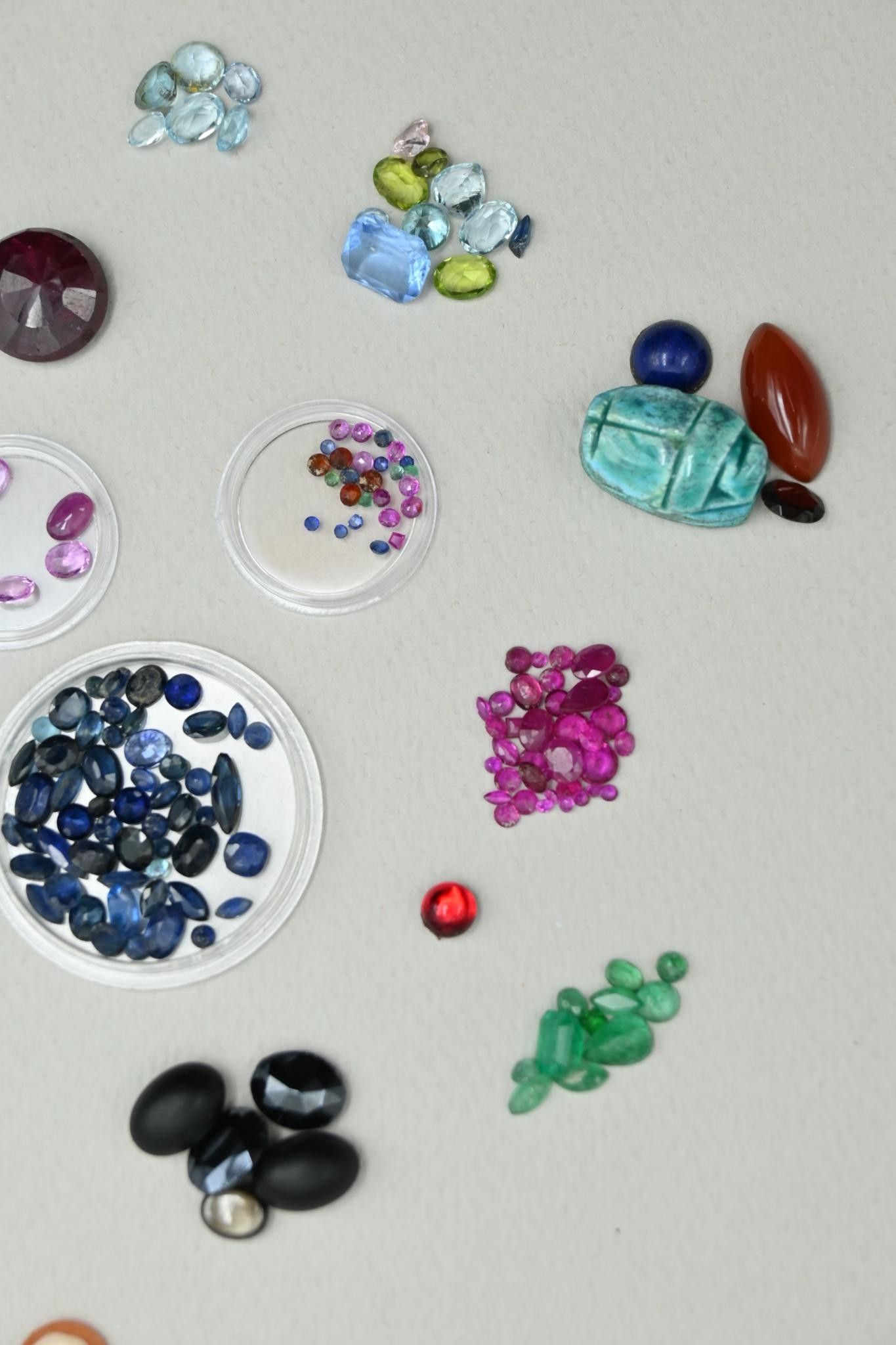 Collection of gemstones and precious stones on paper (from o…