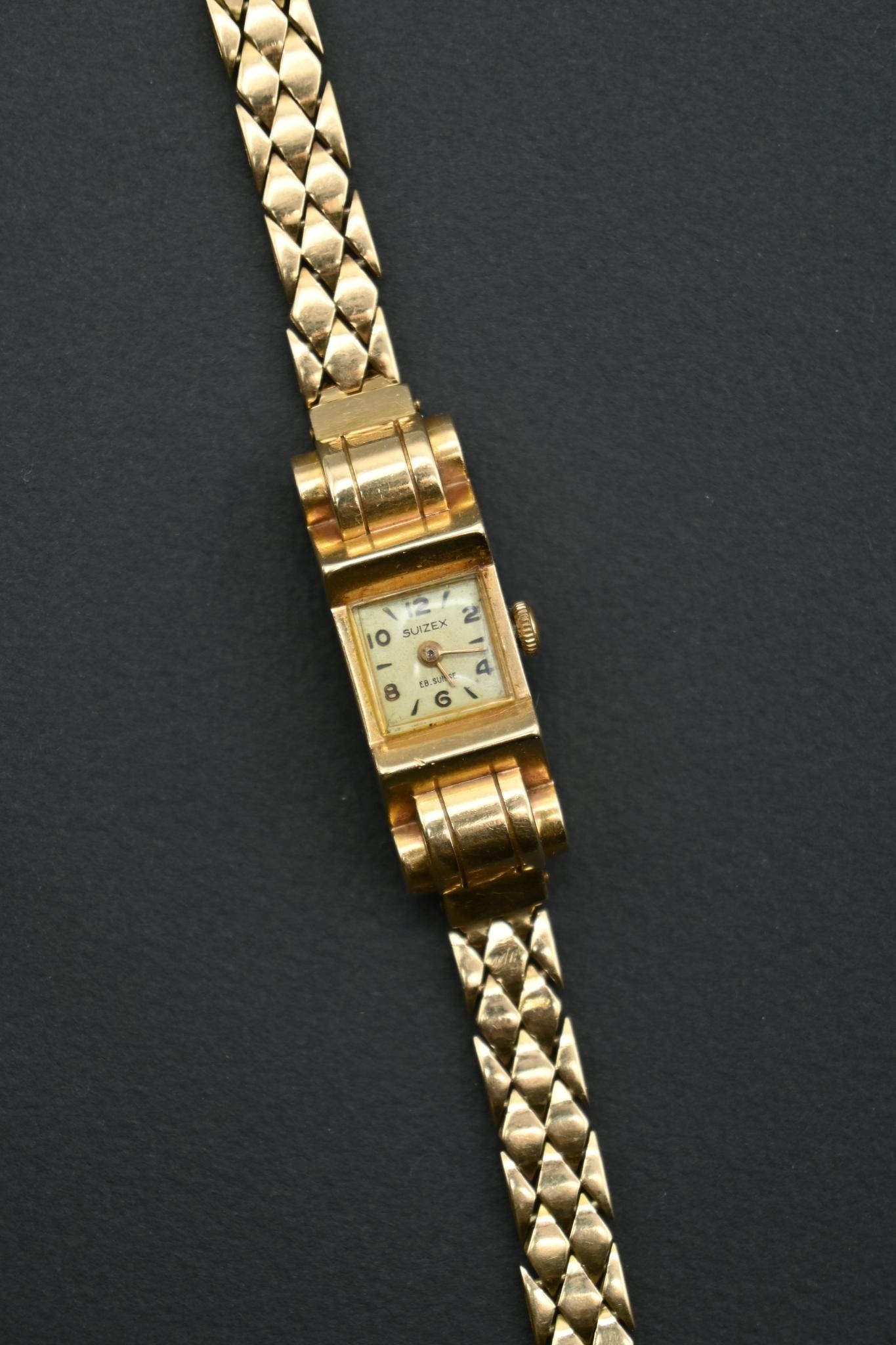 SUIZEX Tank-style ladies' watch in 18K 750 thousandths yello…