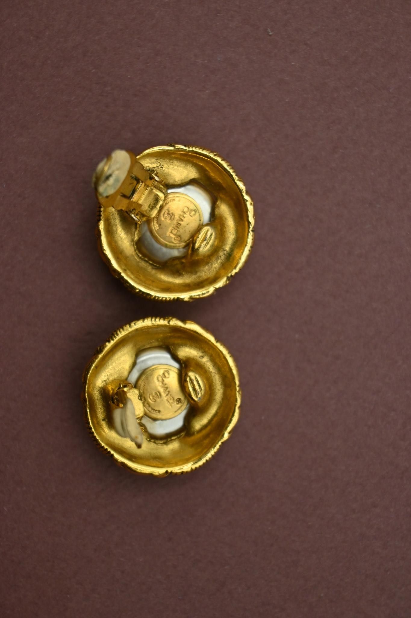 CHANEL Pair of round ear clips in gilded metal centred with …
