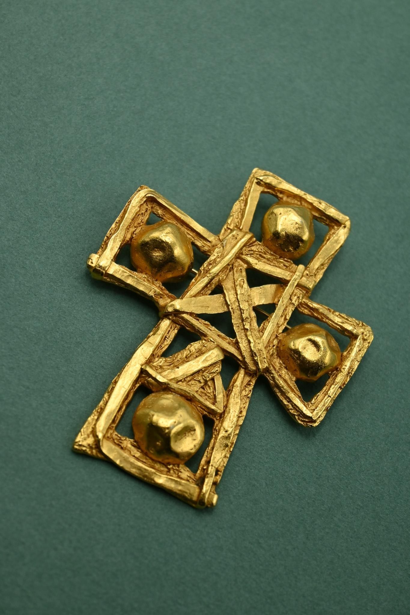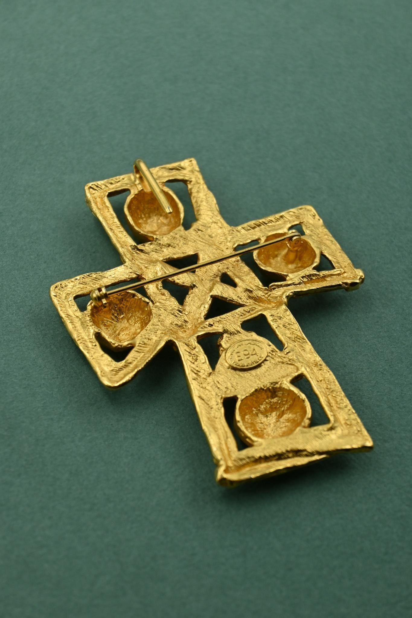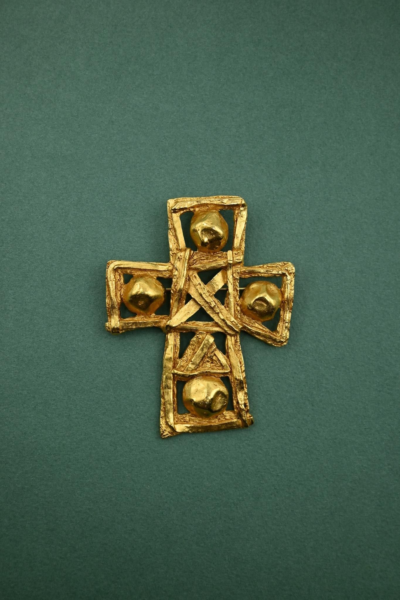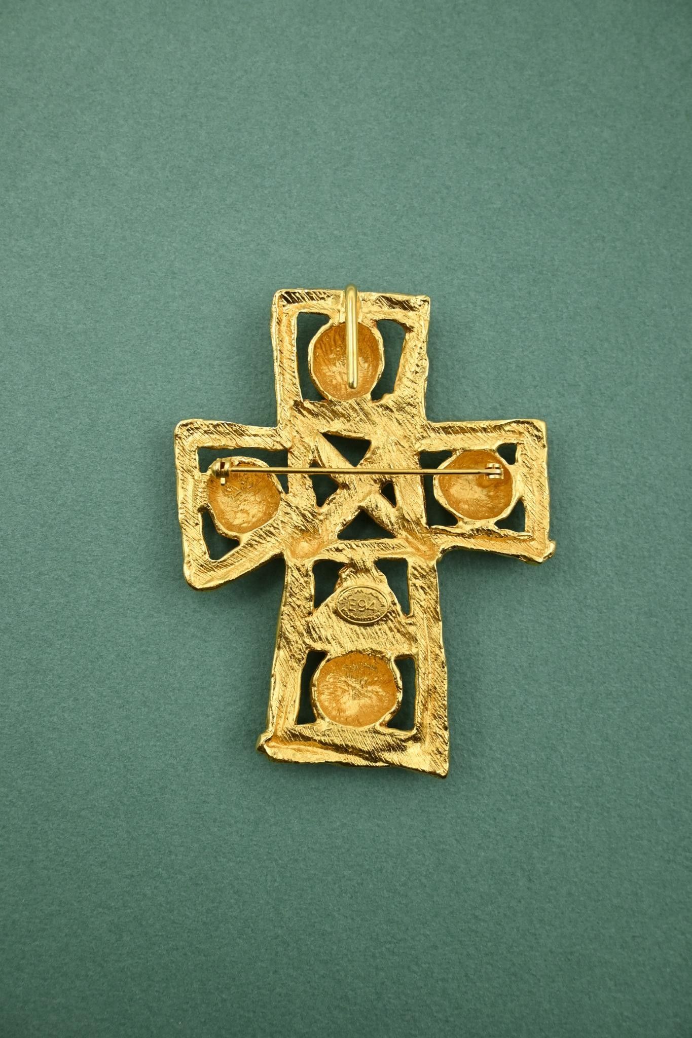 Important brooch / cross pendant in gilded metal.