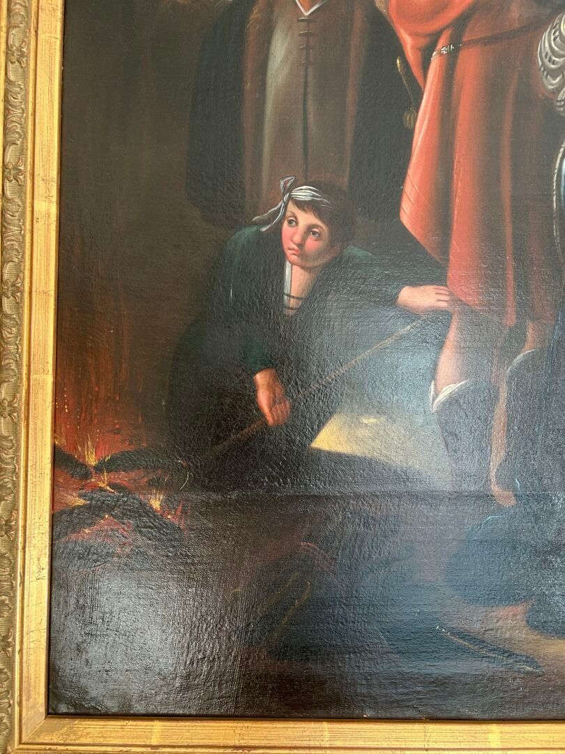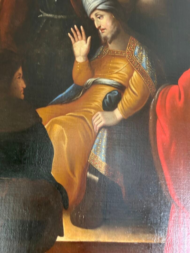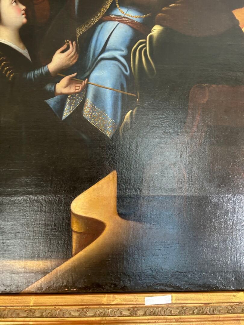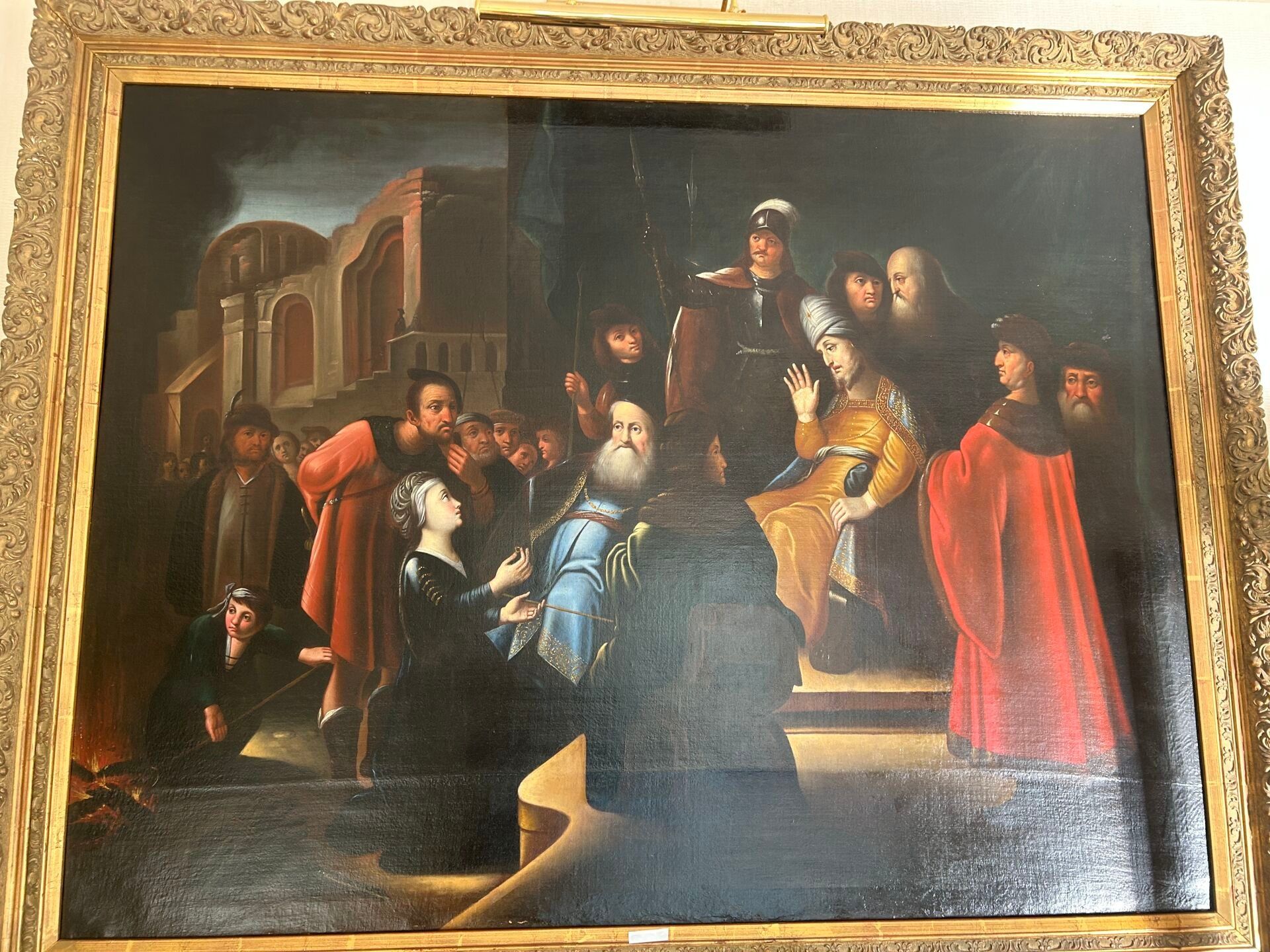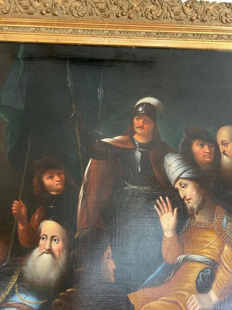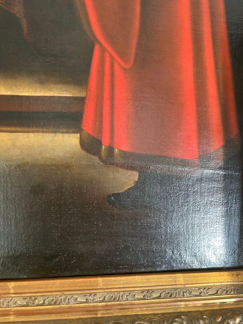 Oil on canvas, beautiful wood and gilded stucco frame with acanthus leaf scrolls
