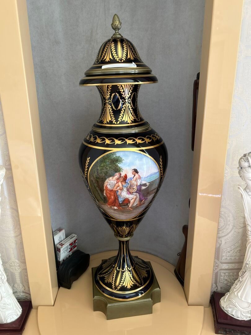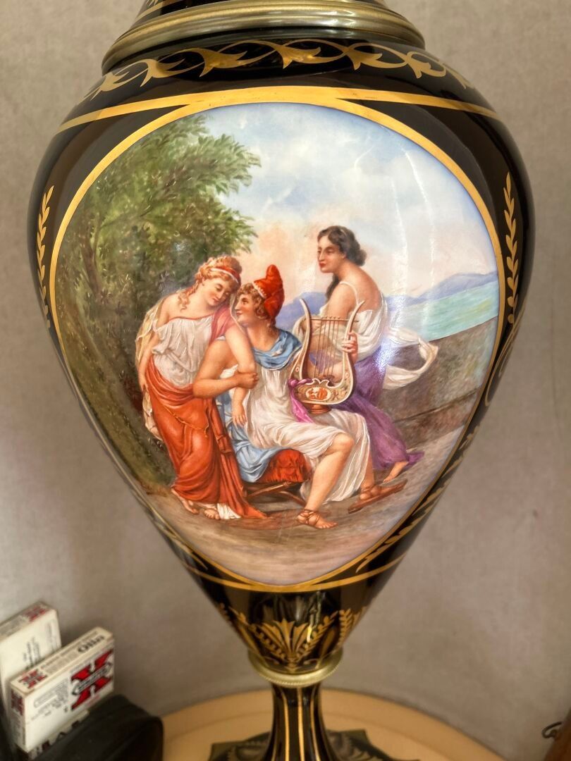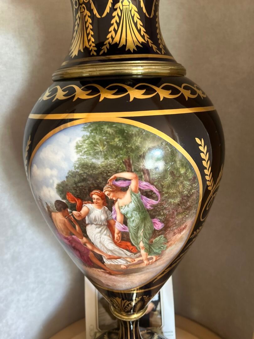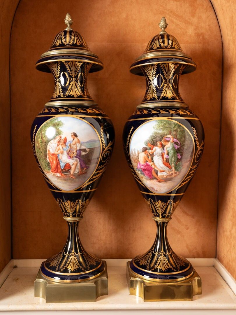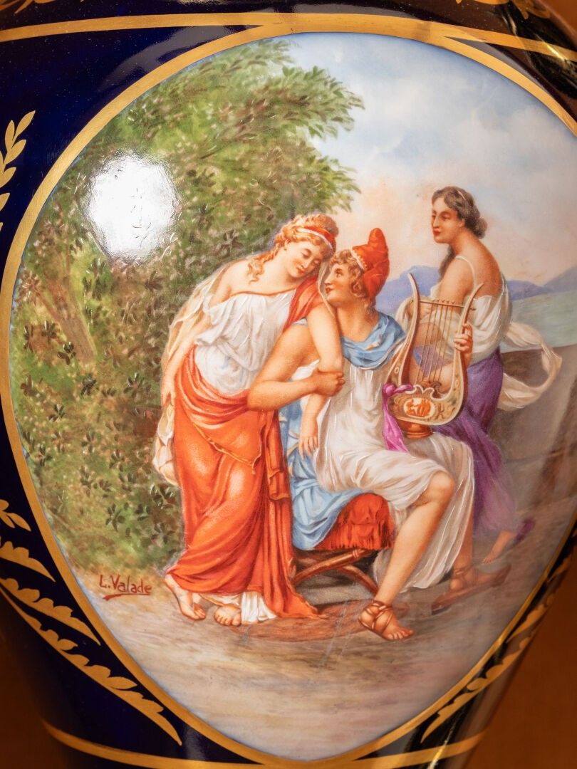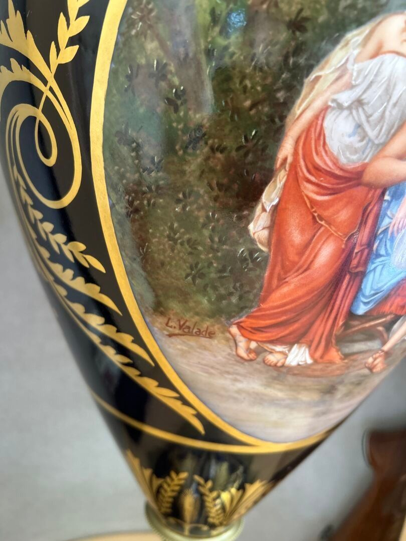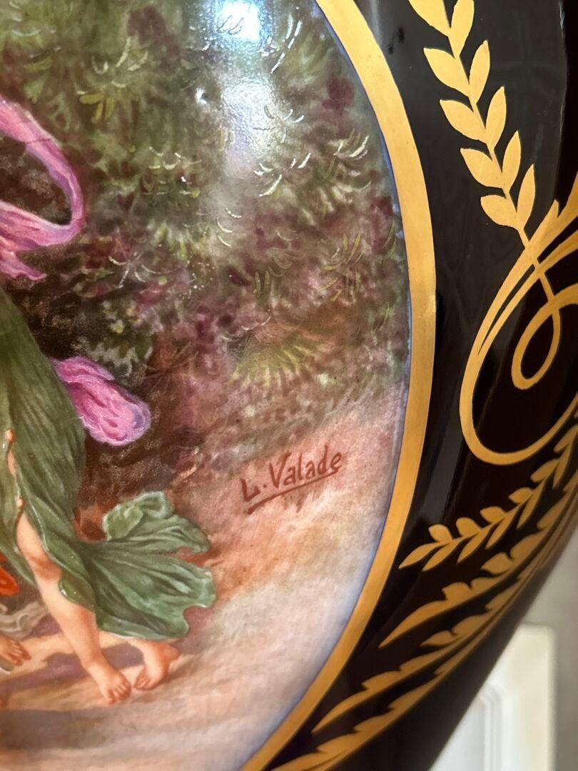 Louis Valade (1892-1973) in LIMOGES. Pair of large VASES decorated with gallant scenes