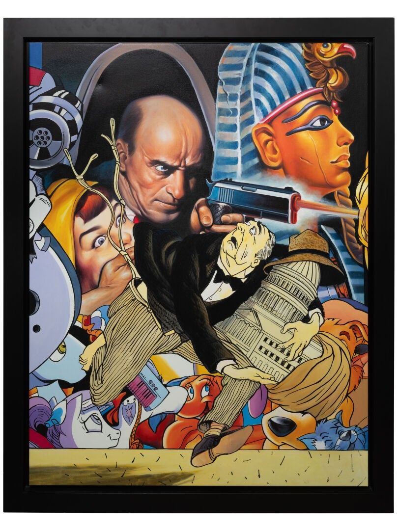 Erró, whose real name is Guðmundur Guðmundsson, is an Icelandic artist born in Ólafsvík in 1932. A major figure in the Figuration Narrative movement, he made his mark in the 1960s with a colourful, abundant style combining painting, collage and the appropriation of images from popular culture. Erró draws his inspiration from the media, advertising, comic strips, political propaganda and the icons of consumer society, juxtaposing them to create dense, ironic compositions. His work is deeply marked by a critique of power, capitalism and war, while celebrating the visual profusion of modernity. The artist often adopts an aesthetic close to pop art, but distinguishes himself from it by a more narrative and political dimension. His world, both playful and subversive, functions as a mirror of contemporary society, saturated with images and contradictions. Living in France since the 1950s, Erró has produced a considerable body of work, which can now be seen in many international museums, including the Musée d'Art Moderne in Paris and the Erró Museum in Reykjavik, which is entirely dedicated to him.