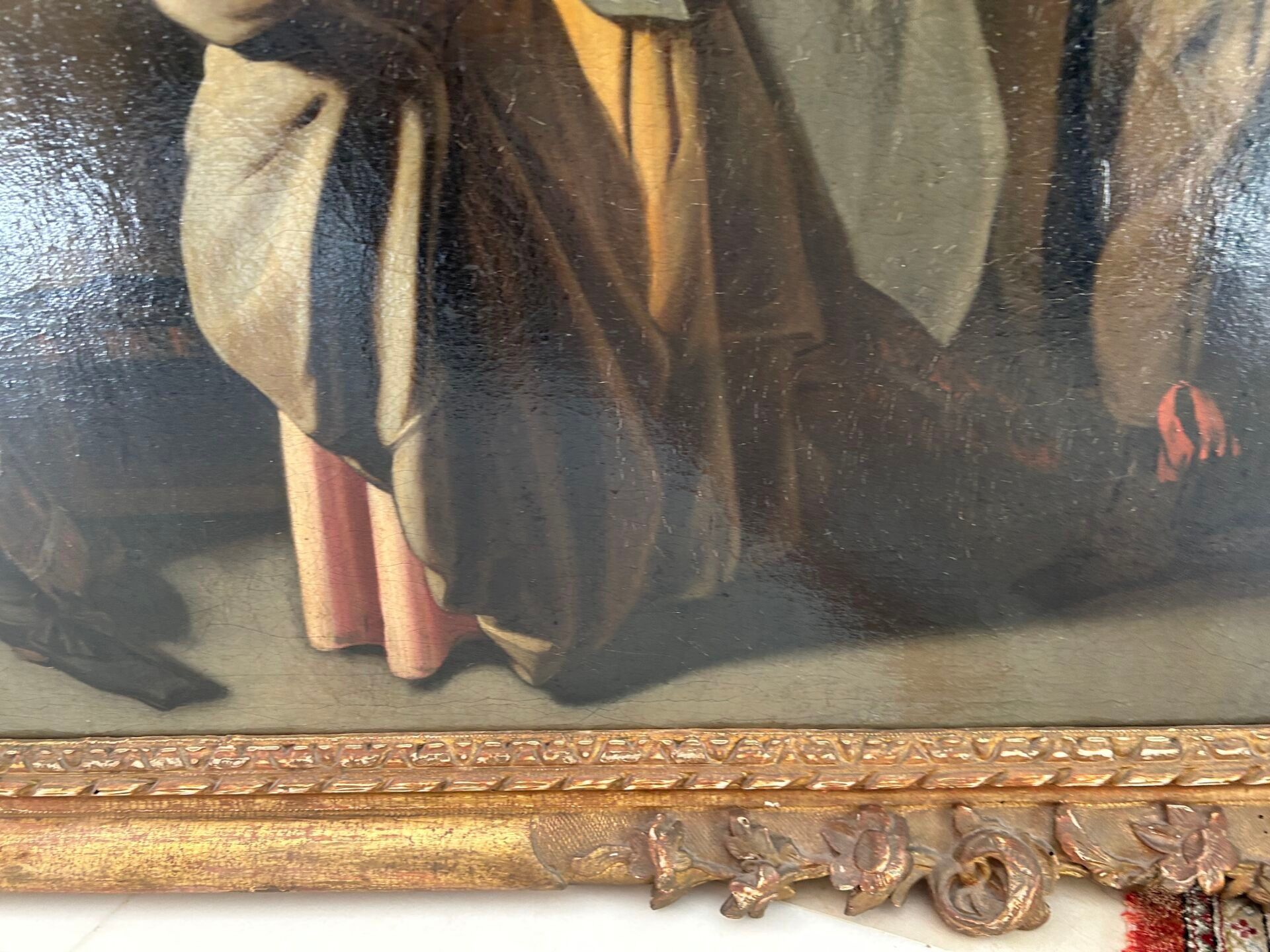 A few holes caused by wood-eating insects on the frame, some stretching, old restorations.