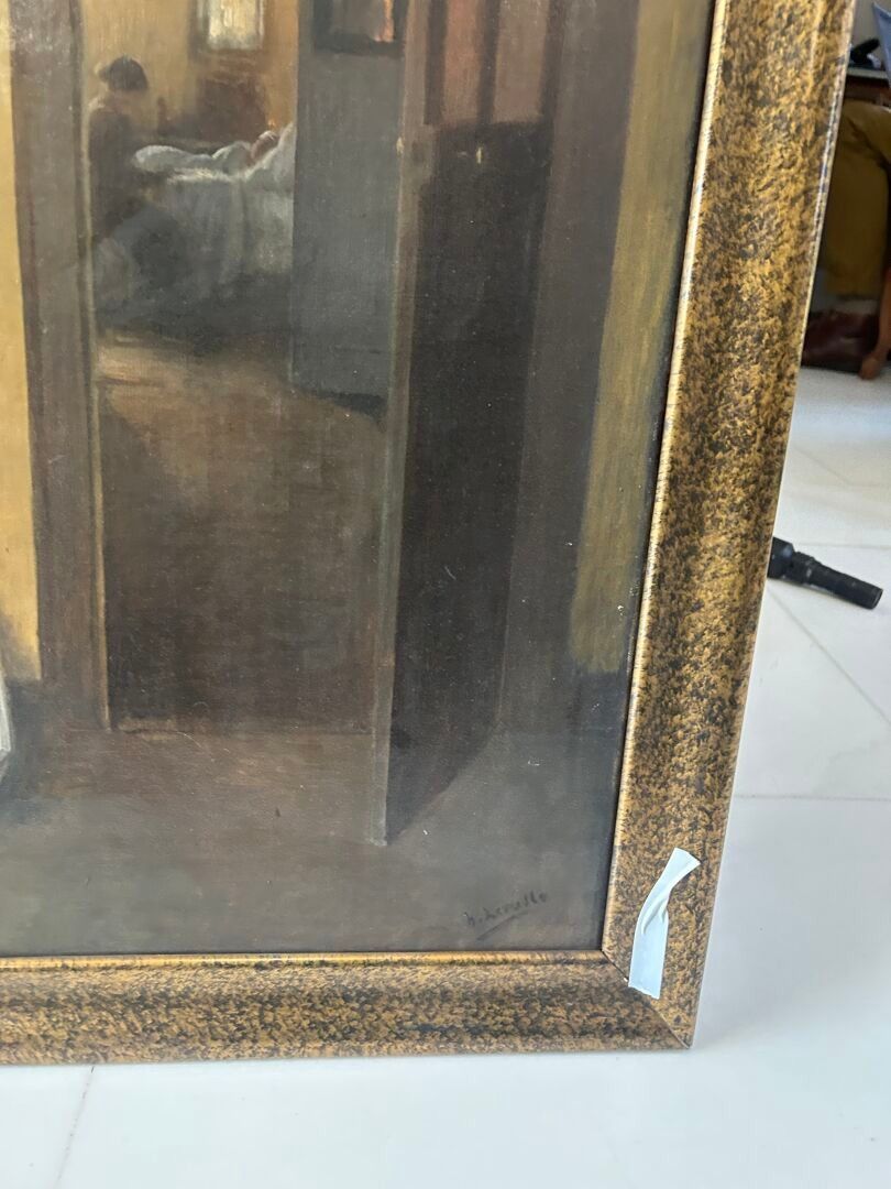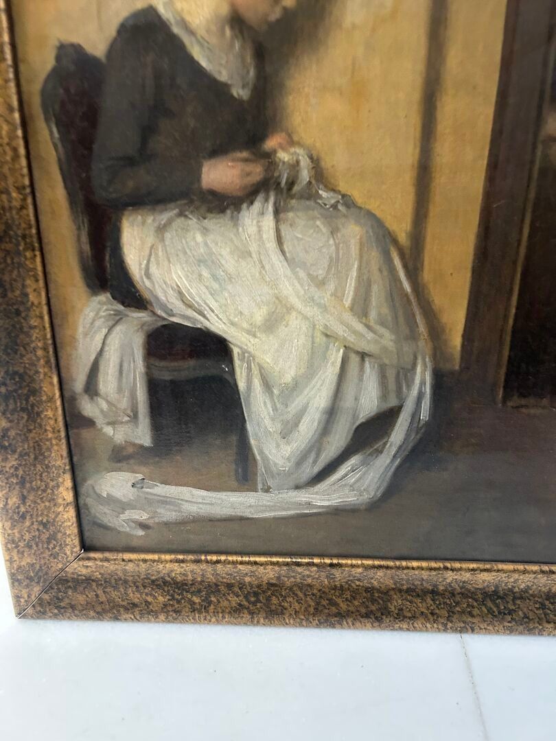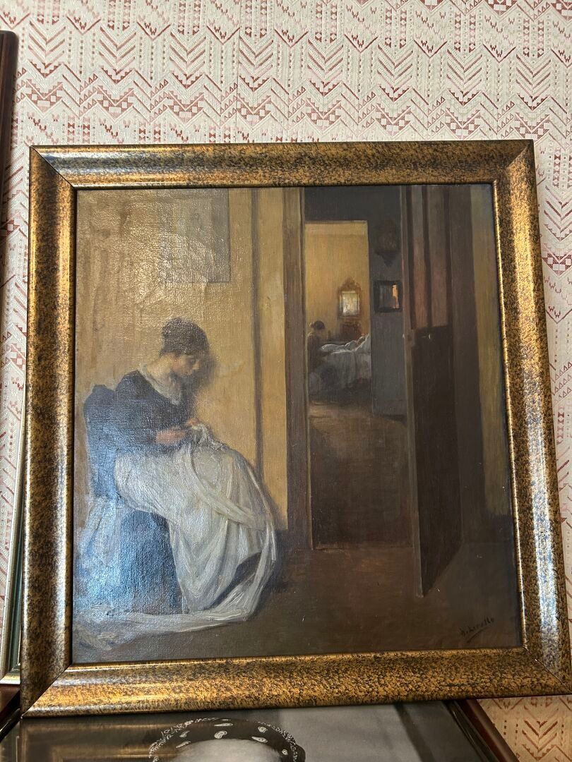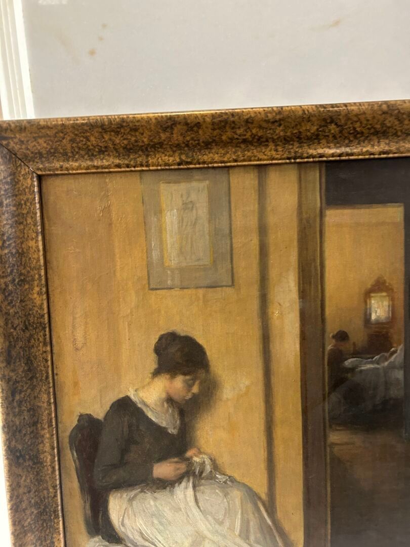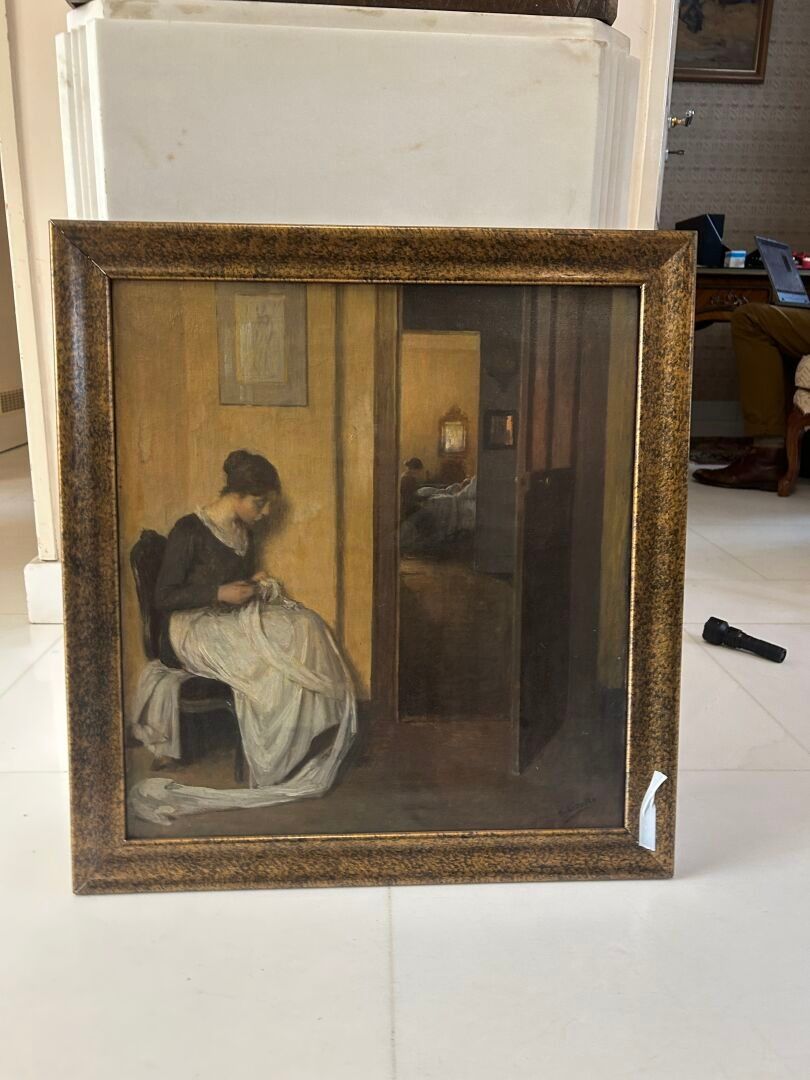 Henri LEROLLE (1848-1929). Woman sewing in an interior