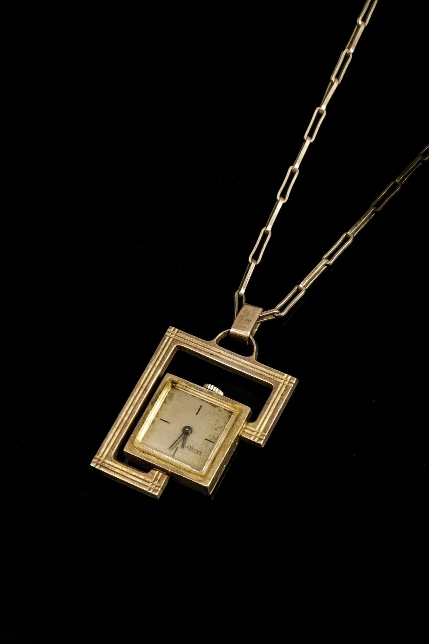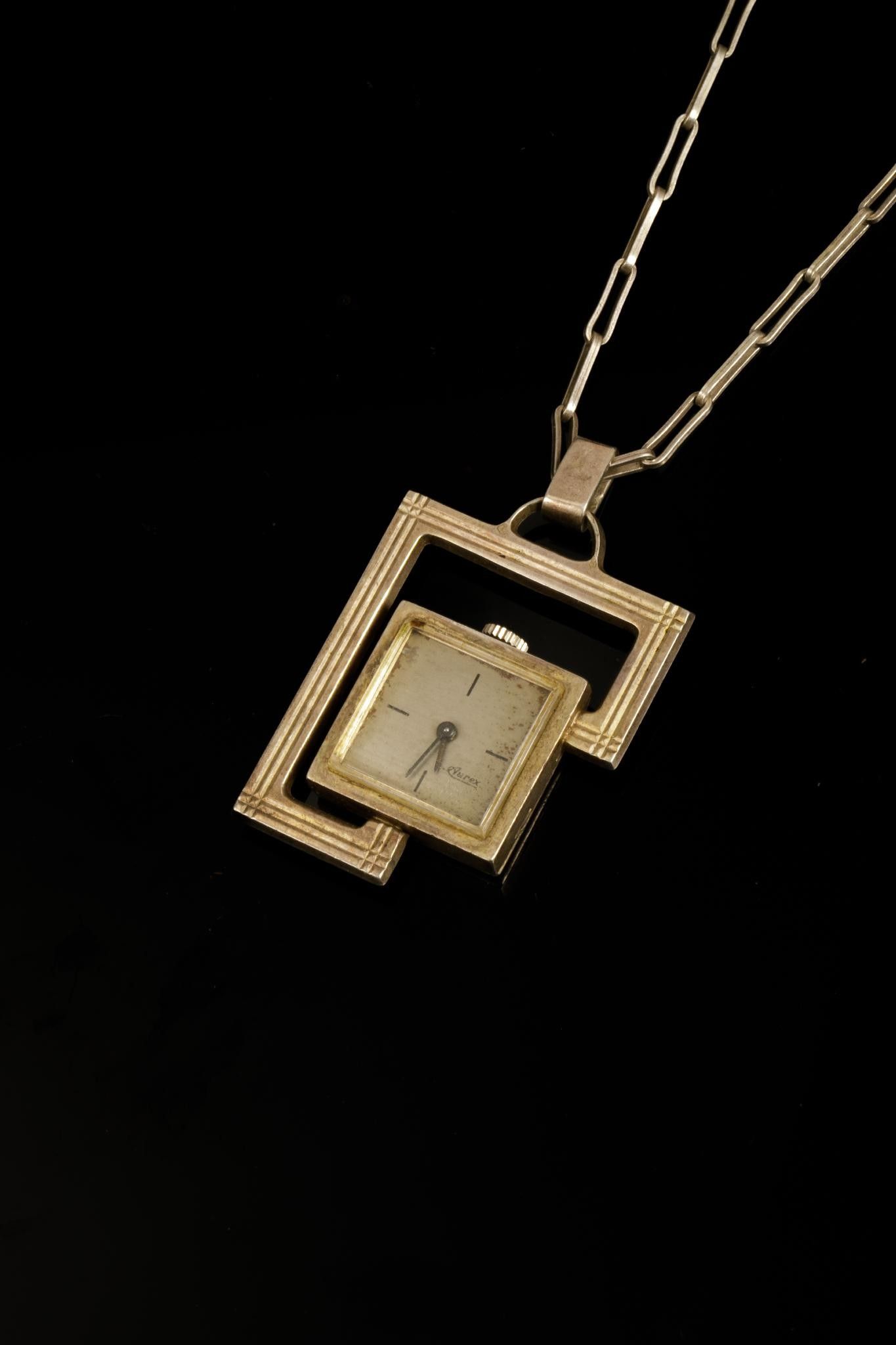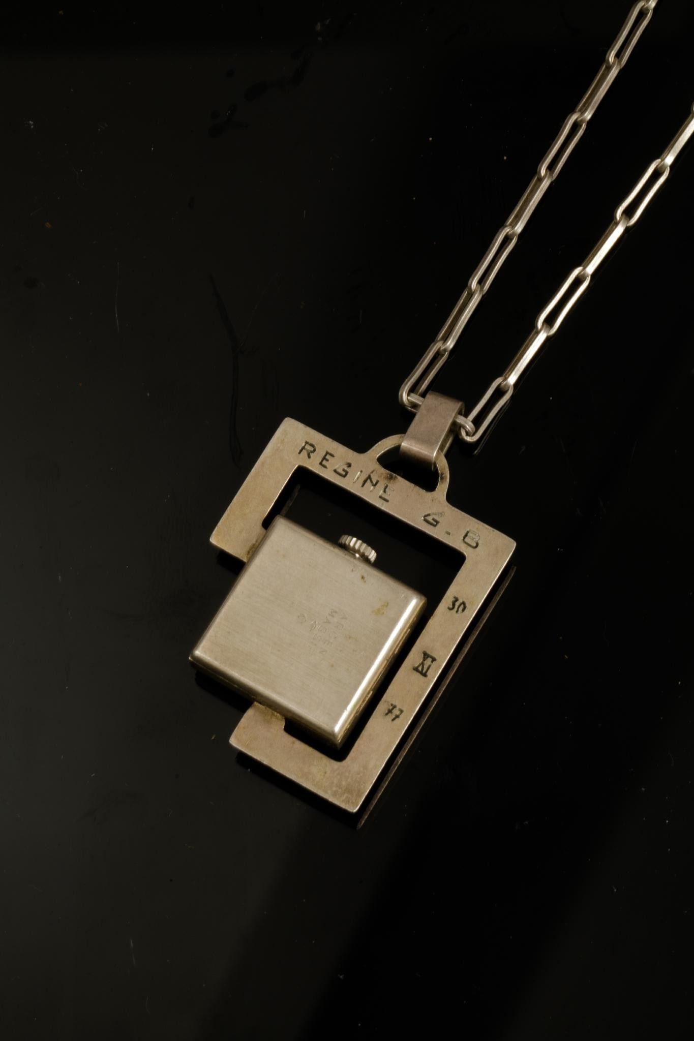 Crab stamp silver pendant watch, geometric shape, mechanical movement, rectangular-link chain with lobster clasp