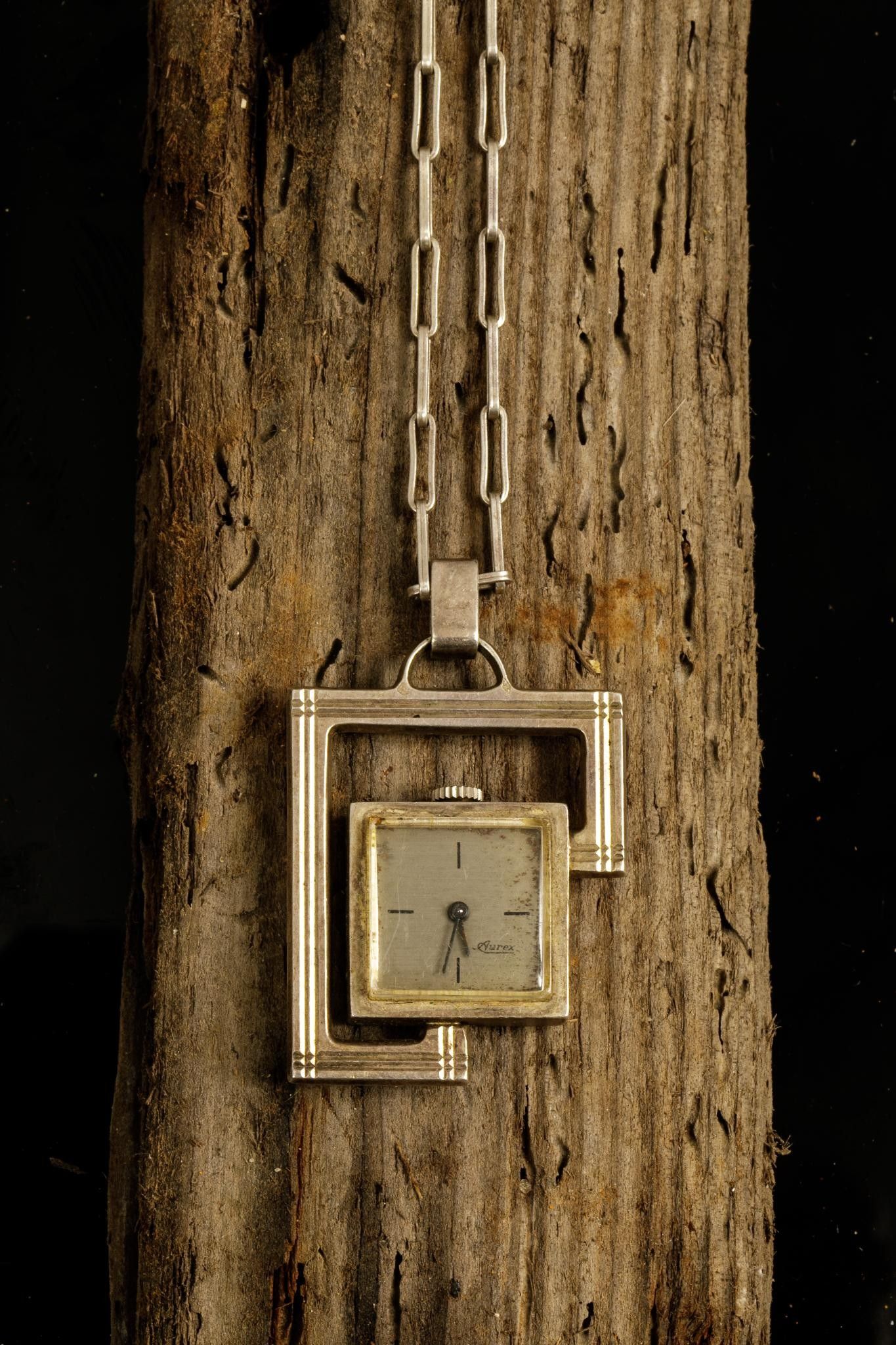 AUREX Crab stamp silver pendant watch, geometric shape, mech…