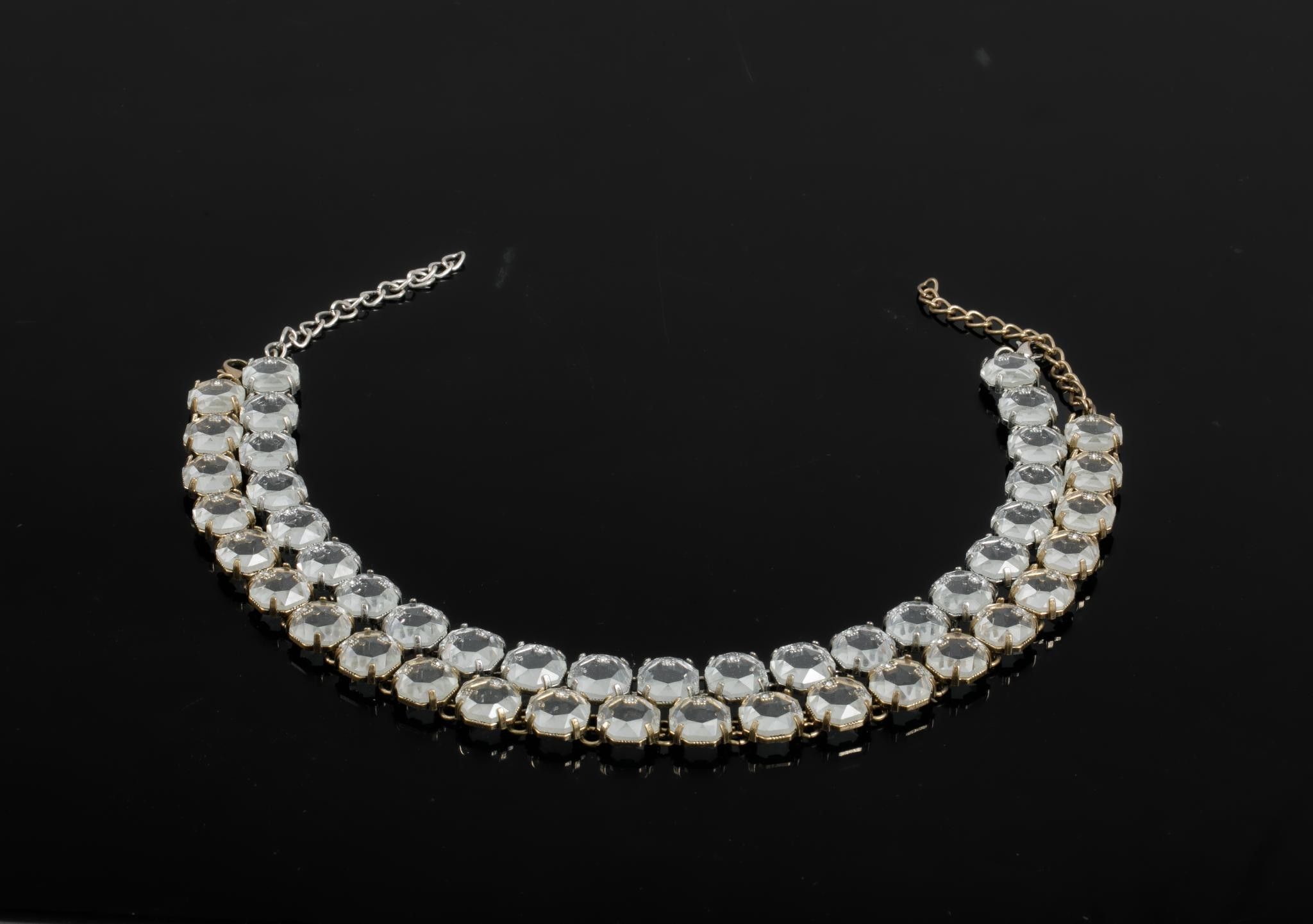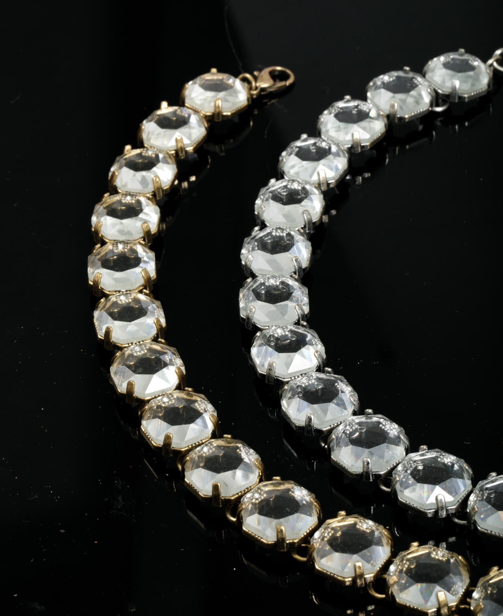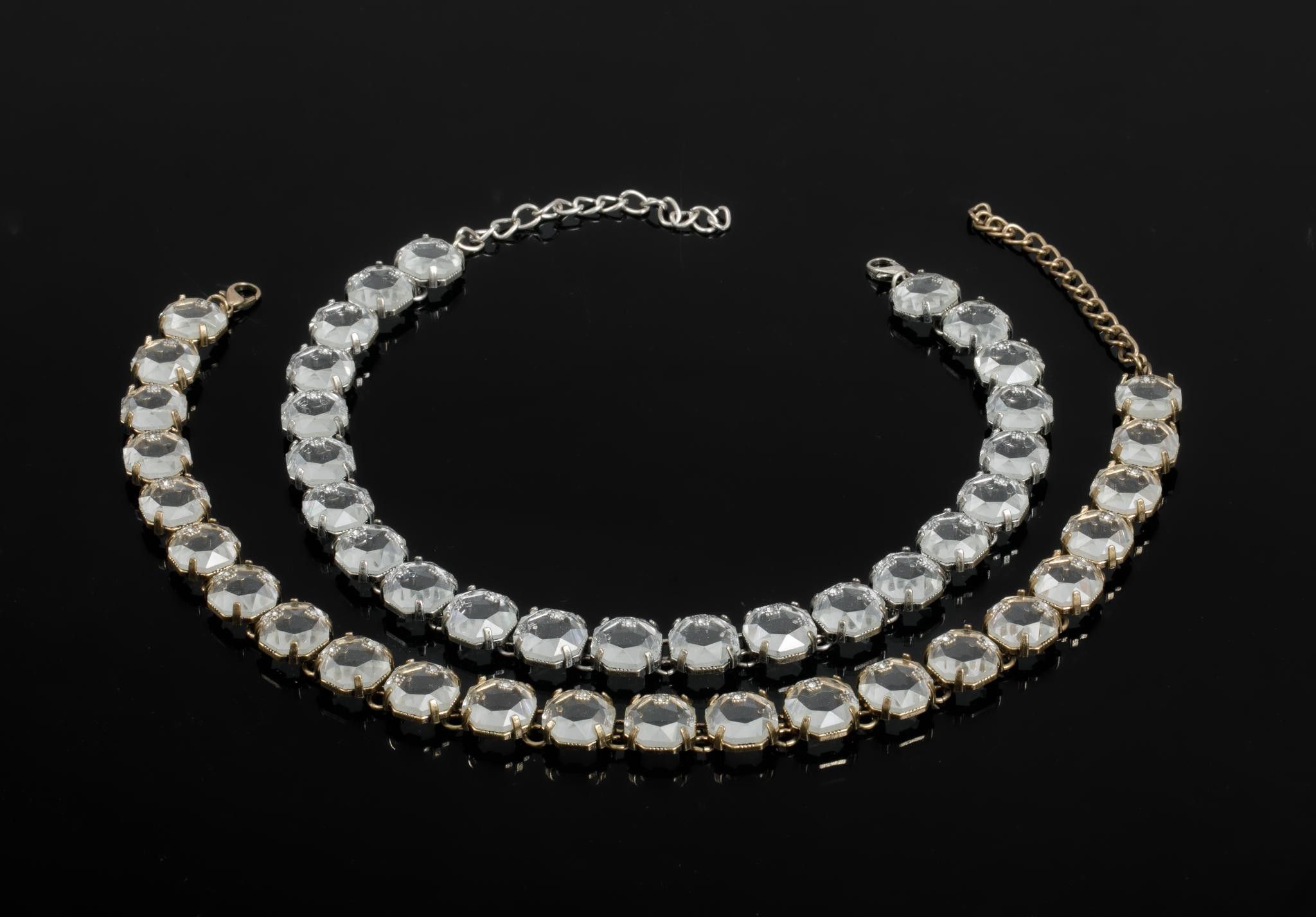 Set of two necklaces in metal and imitation crystal stones