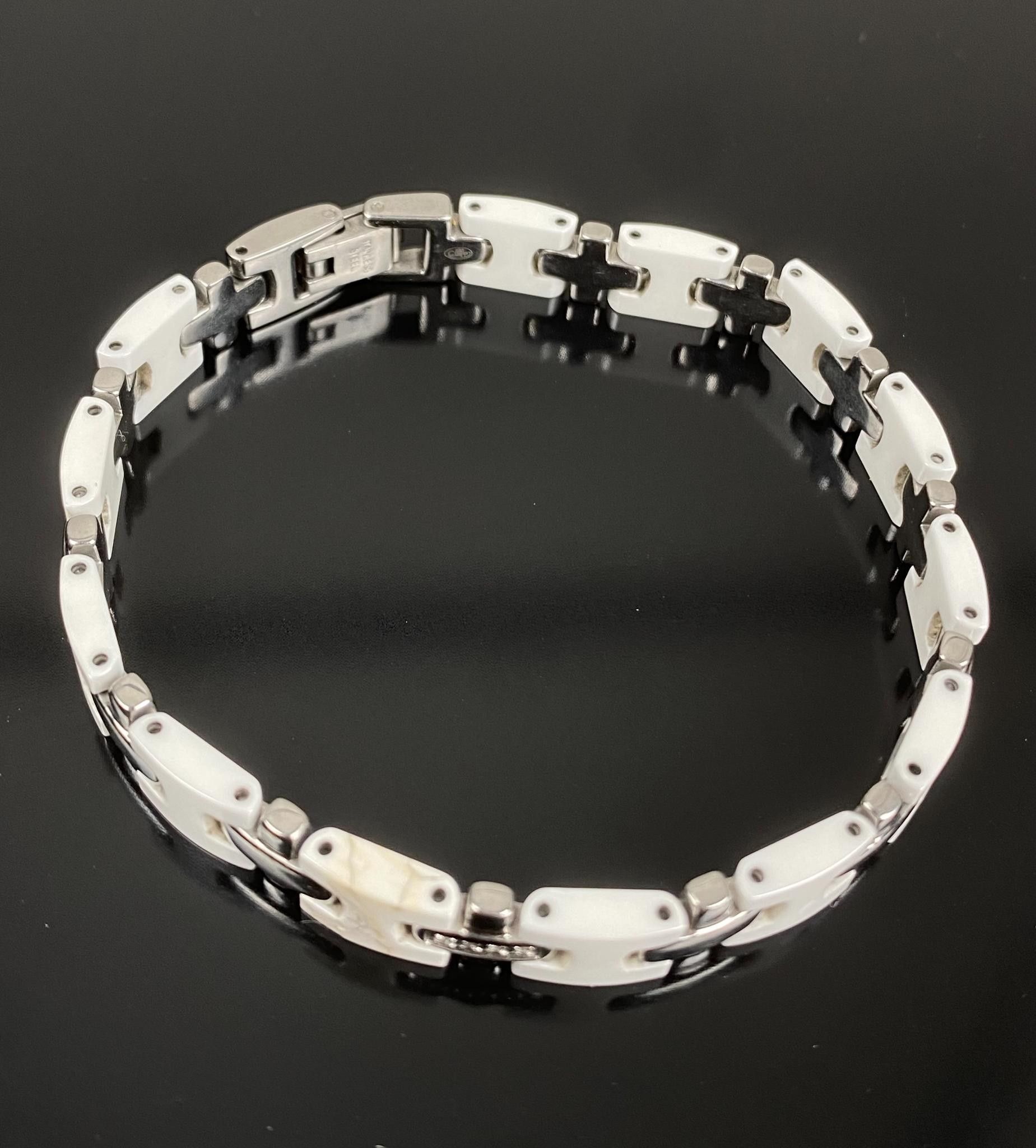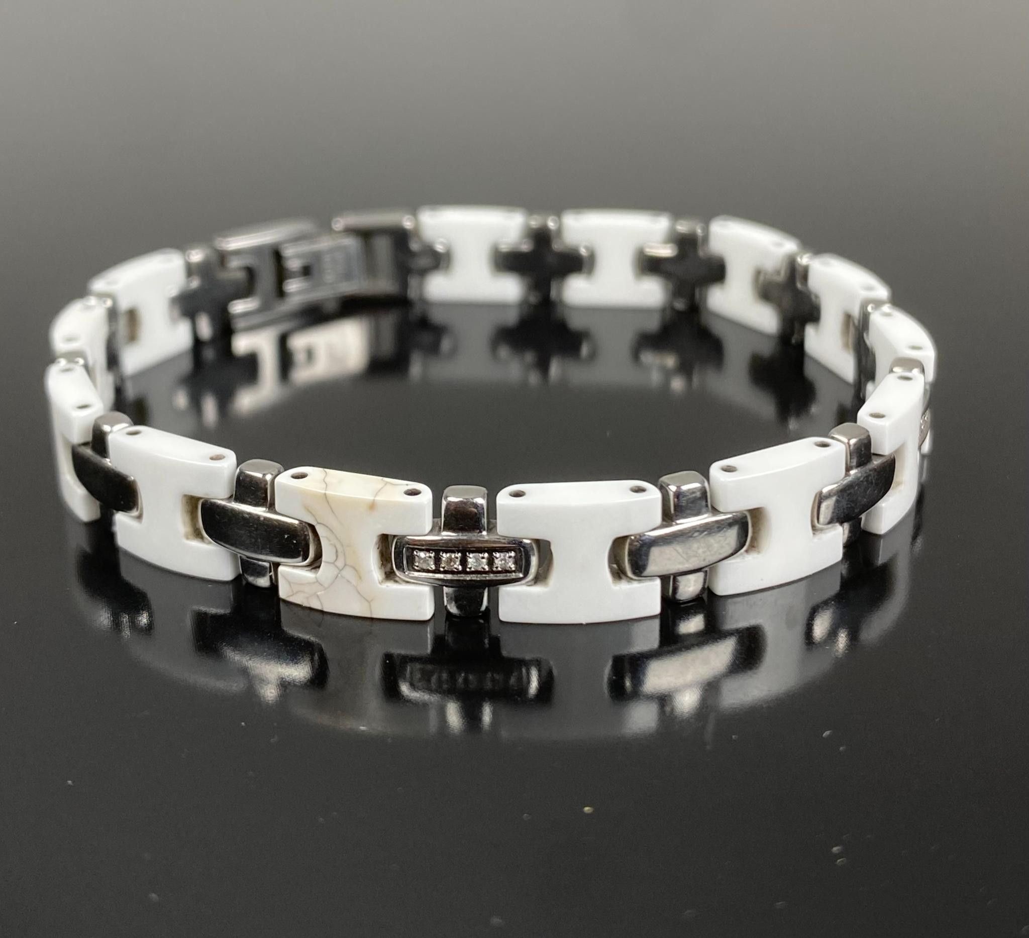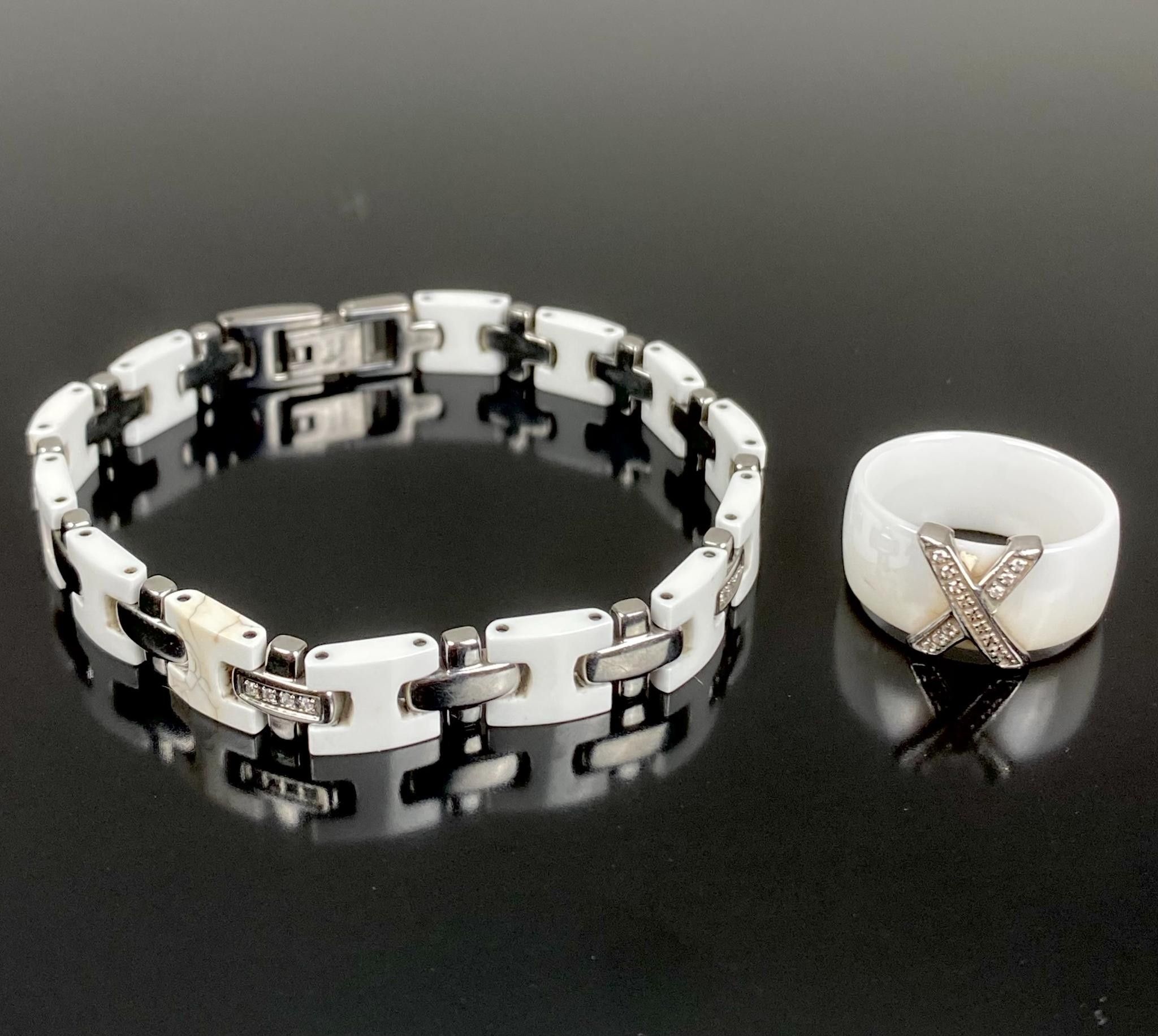 Stainless steel, diamond and white ceramic ring and bracelet…