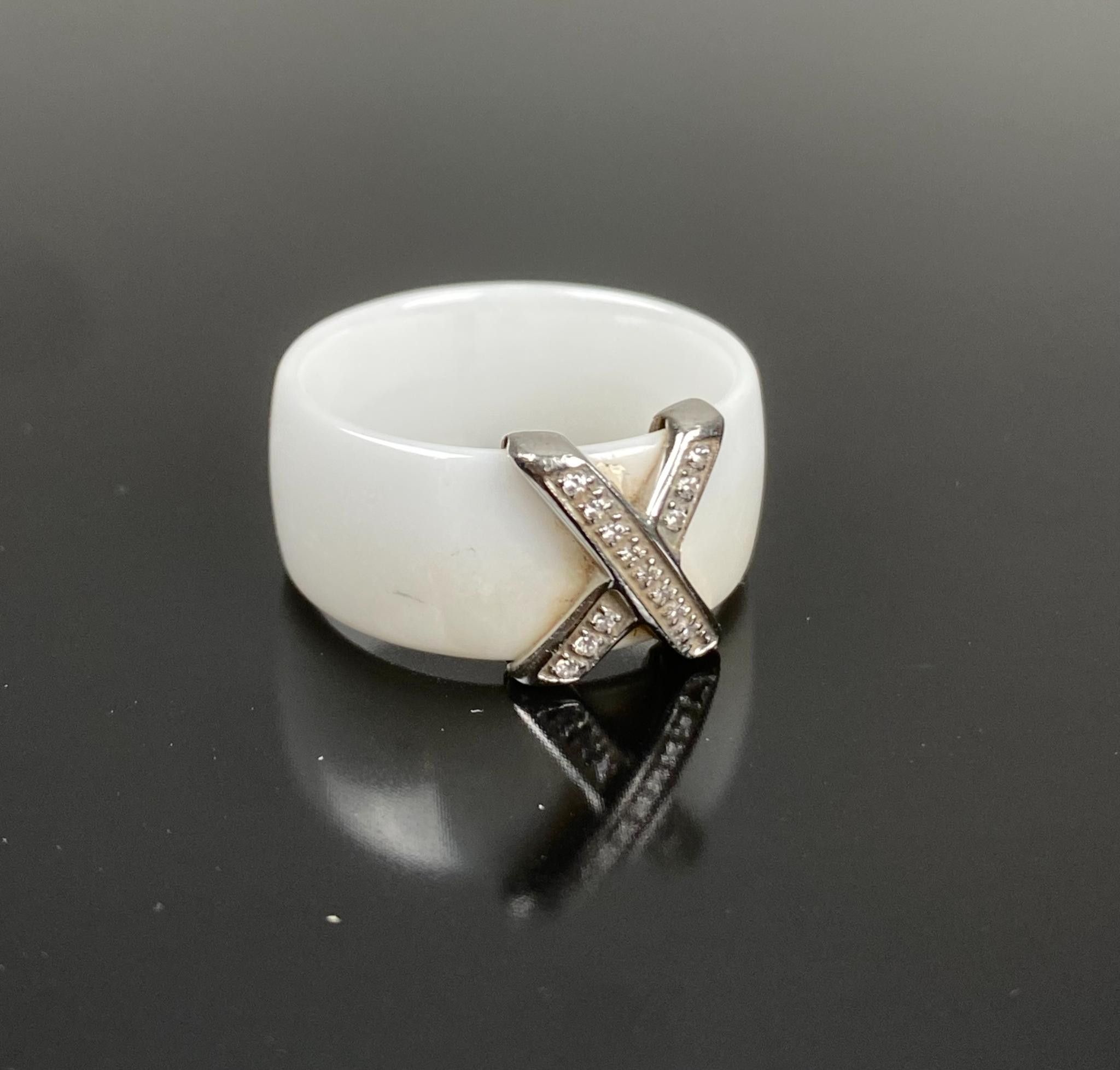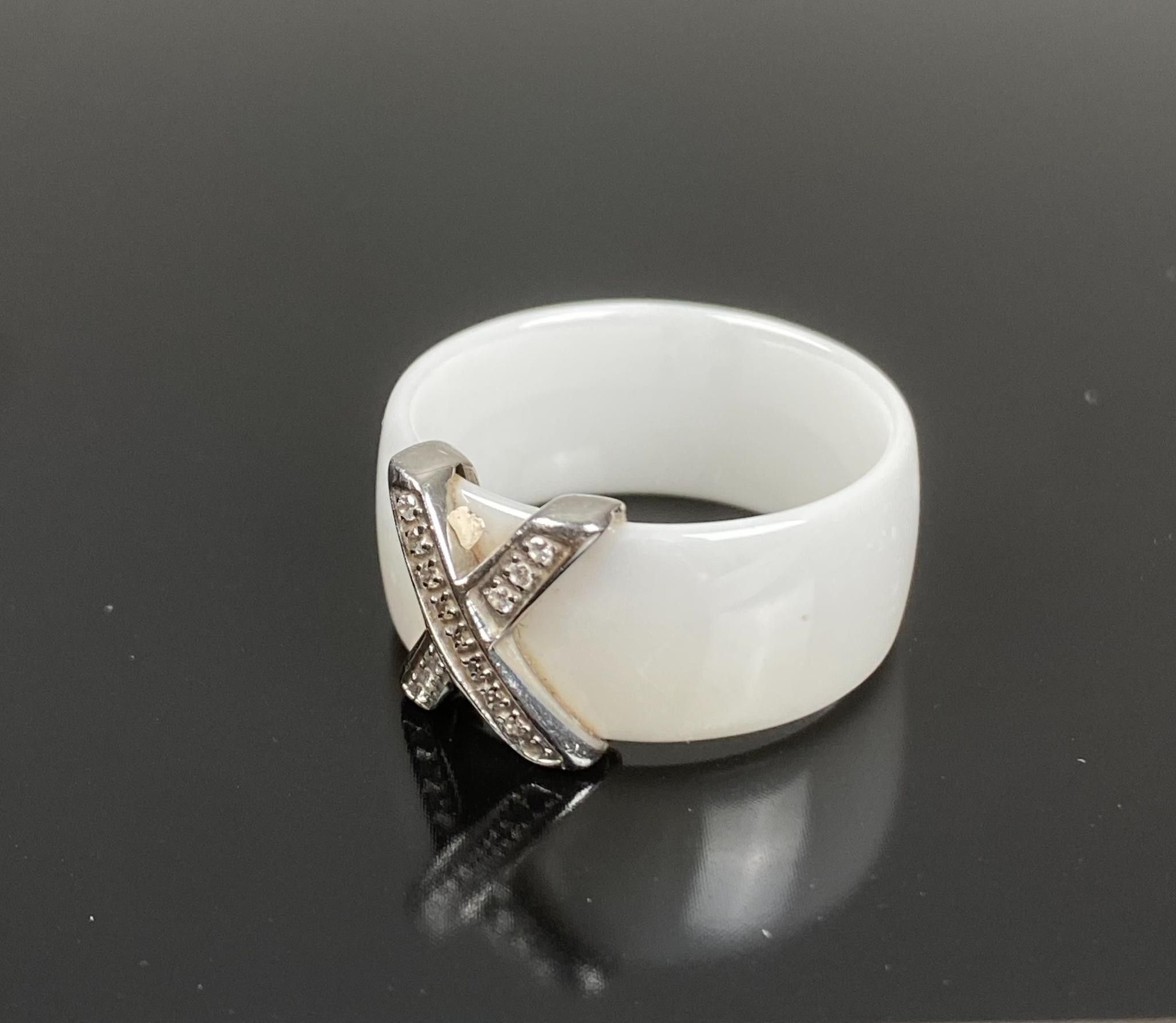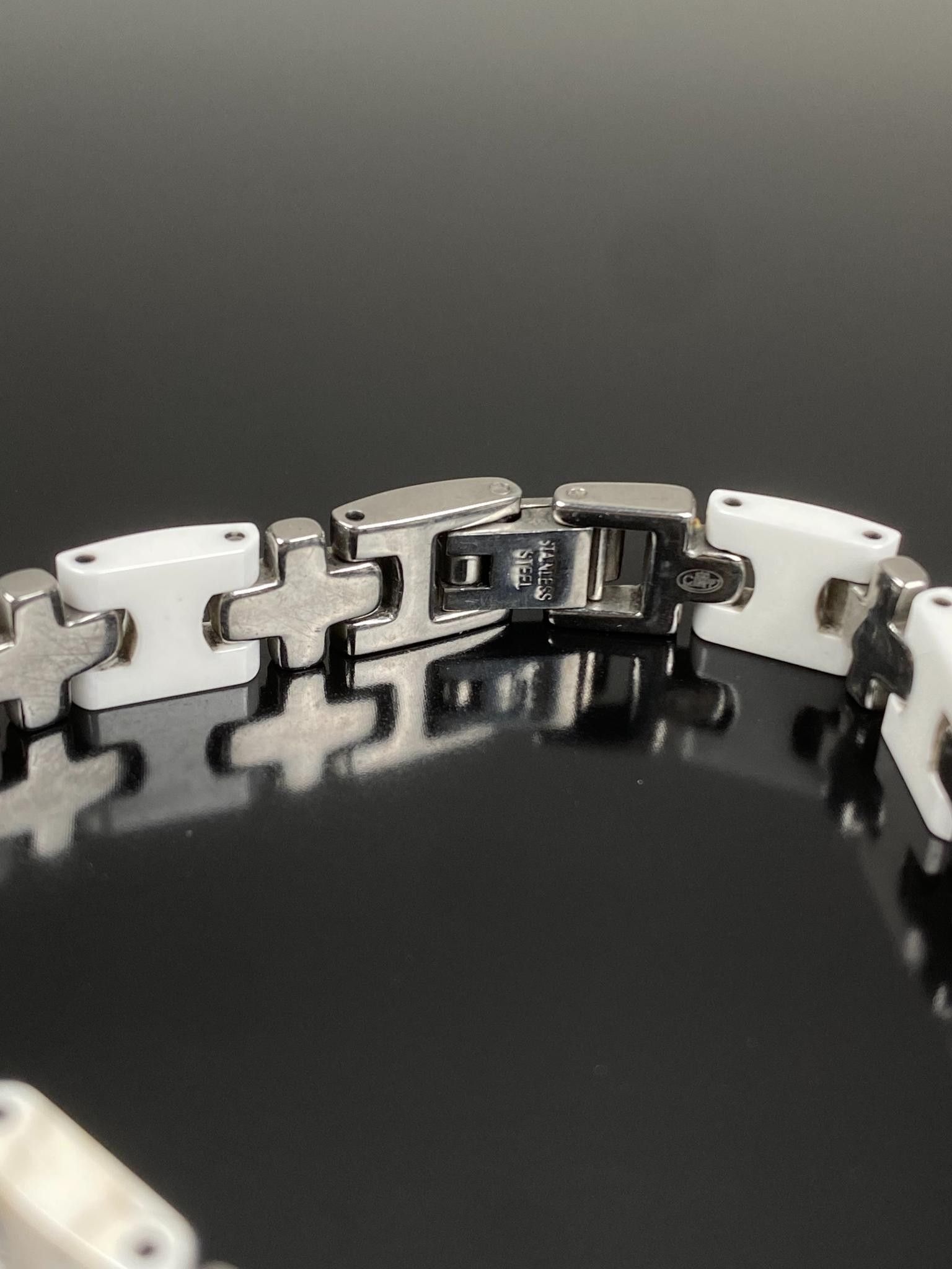 Stainless steel, diamond and white ceramic ring and bracelet…