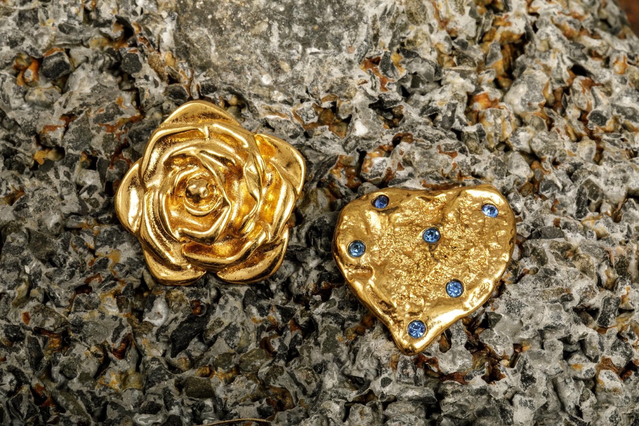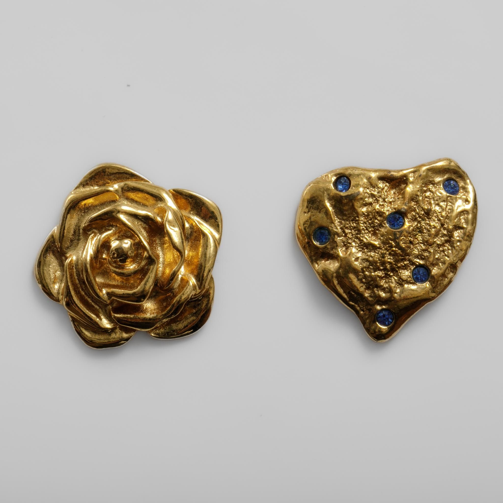 Premium Yves Saint Laurent Two gilded metal pins, one with flowers, …