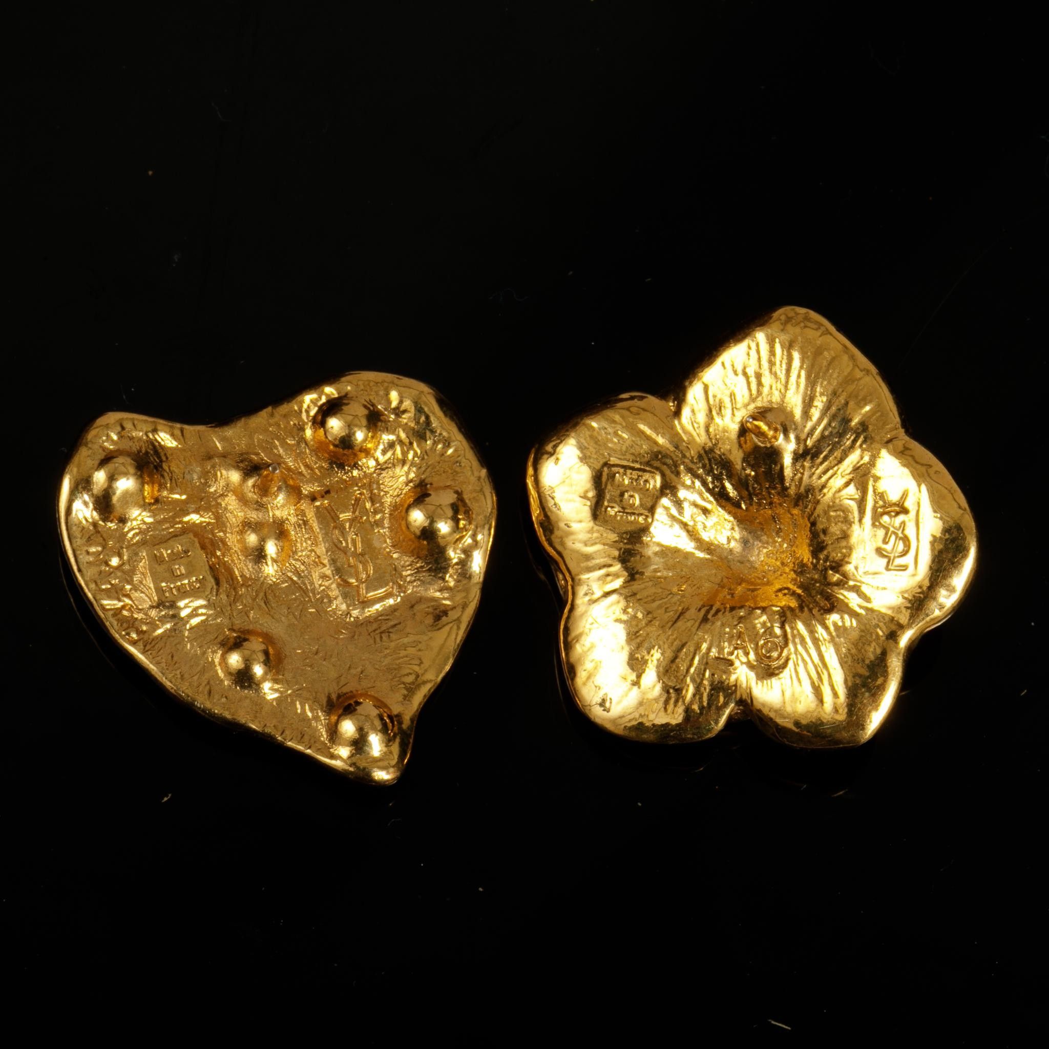 Yves Saint Laurent Two gilded metal pins, one with flowers, …