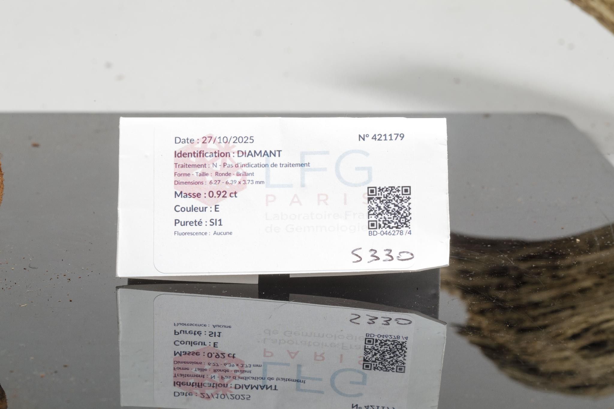 Certificate from the Laboratoire Français de Gemmologie N° 4211** dated 27/10/25 (no indication of treatment)