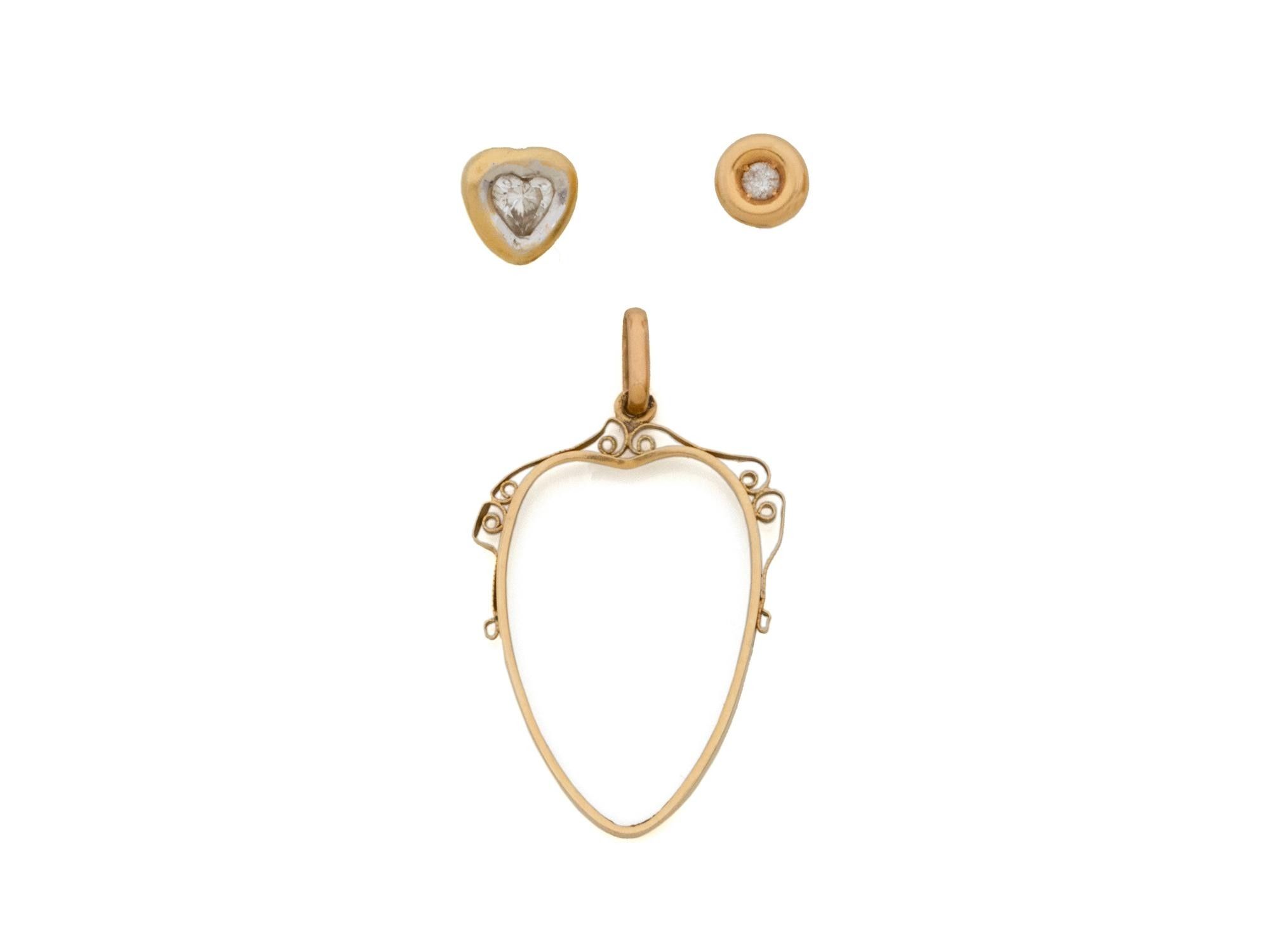 Lot in 750 thousandths gold consisting of a pendant and 2 ear studs with diamonds and heart cut diamonds.