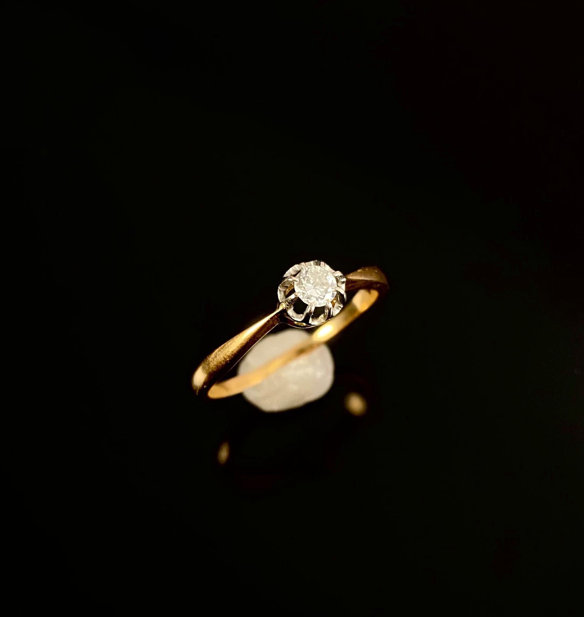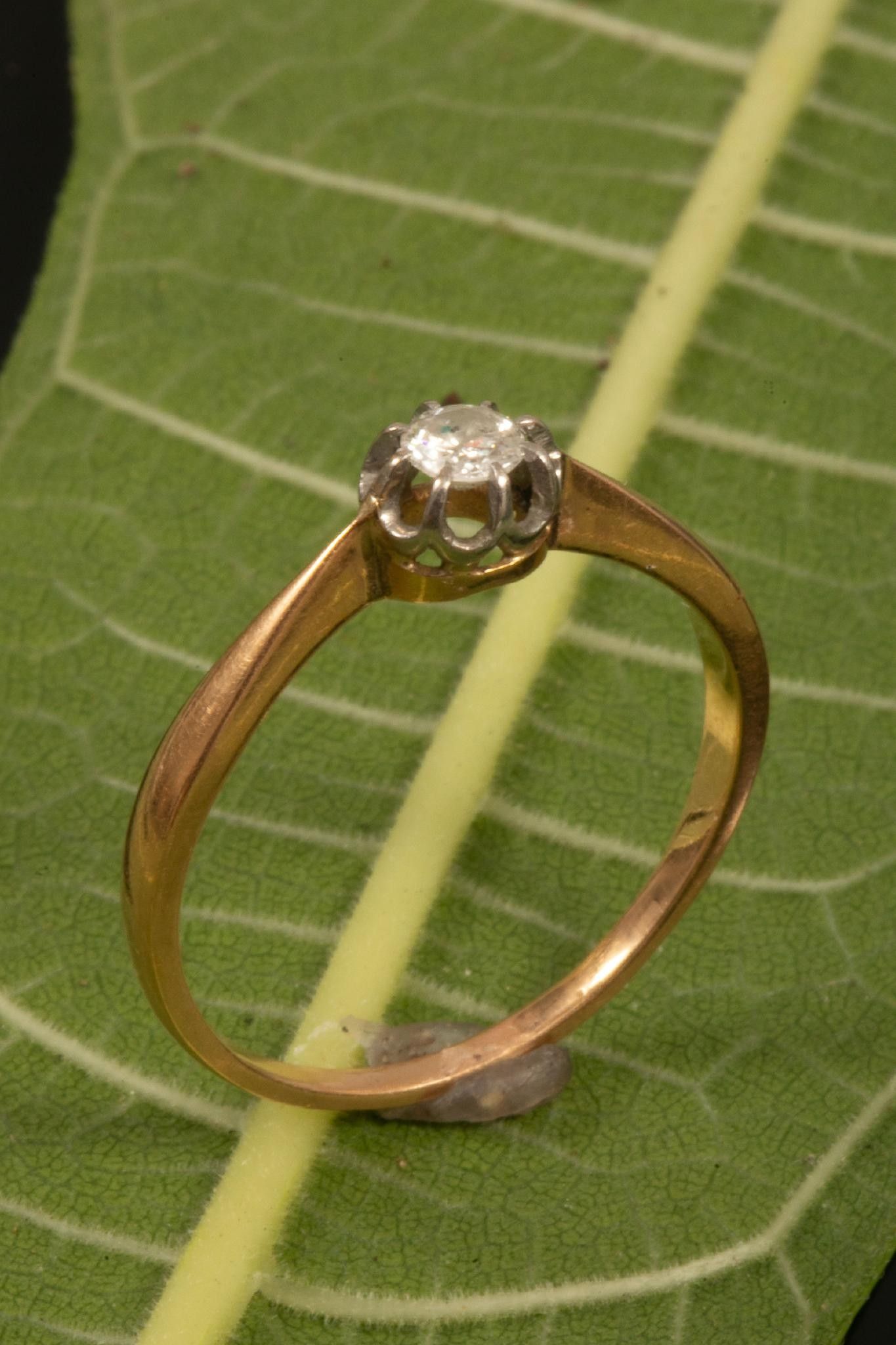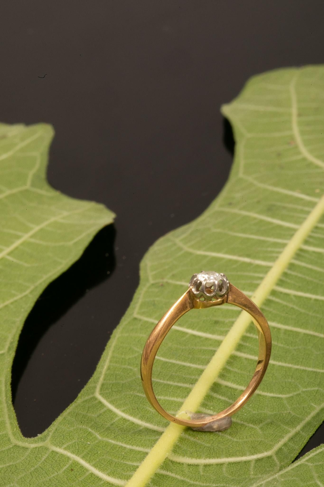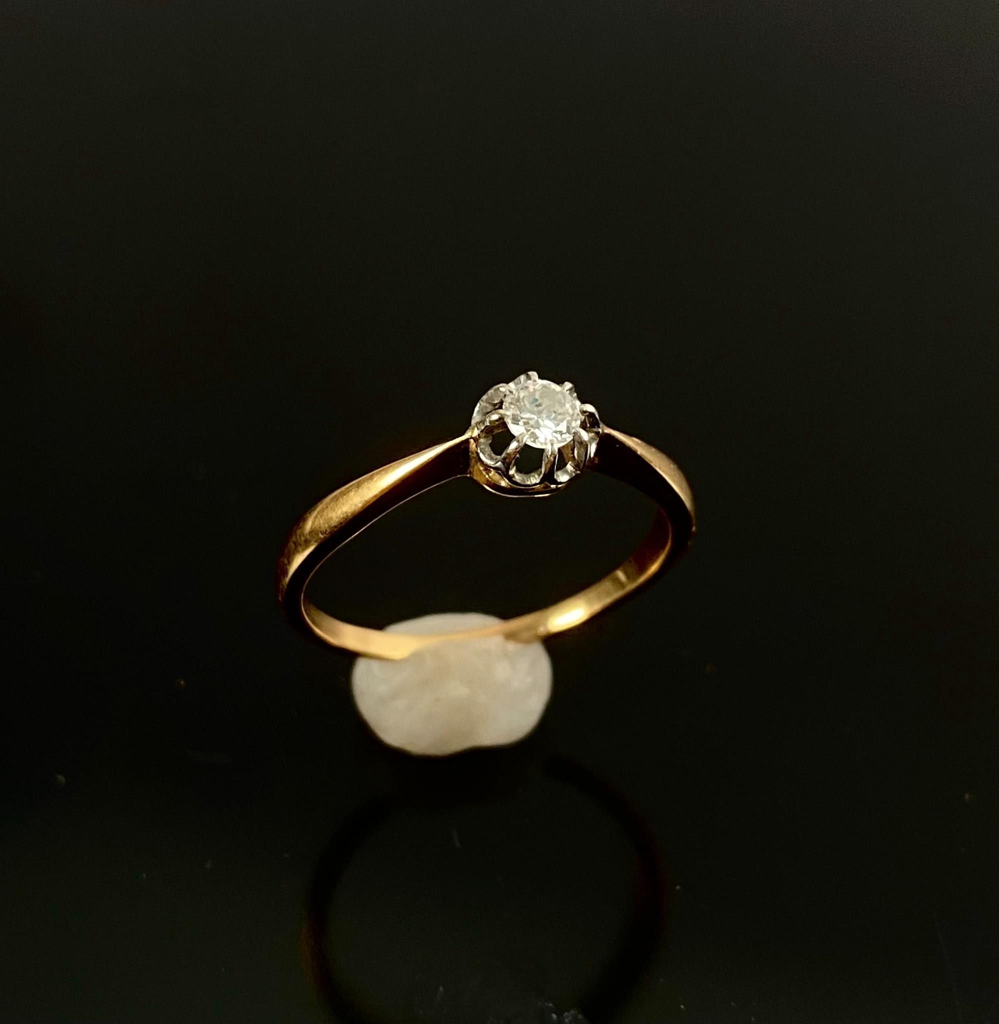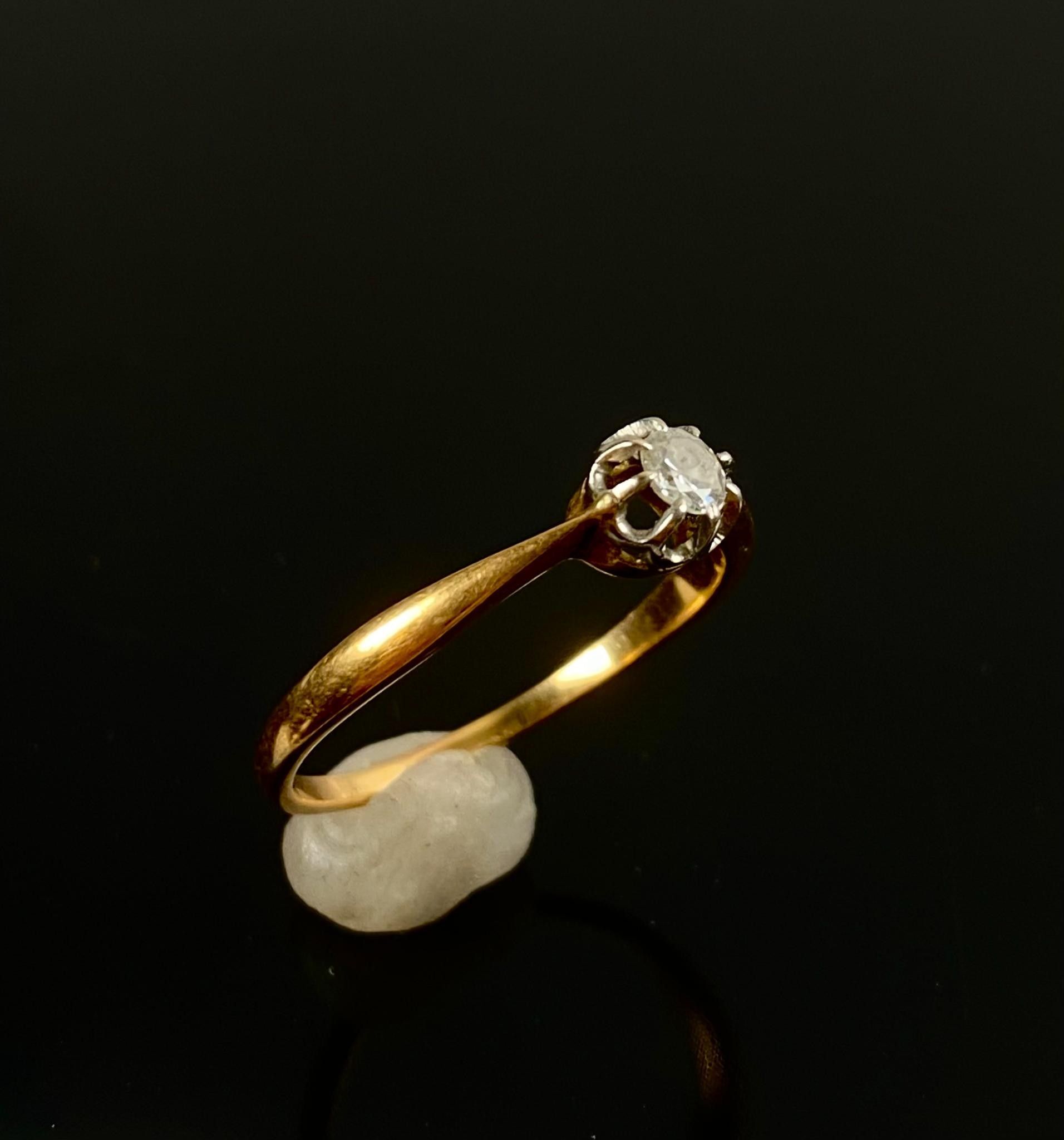 Ring in 750 thousandths yellow gold (eagle's head hallmark) set with a small diamond weighing approximately 0.2 carats