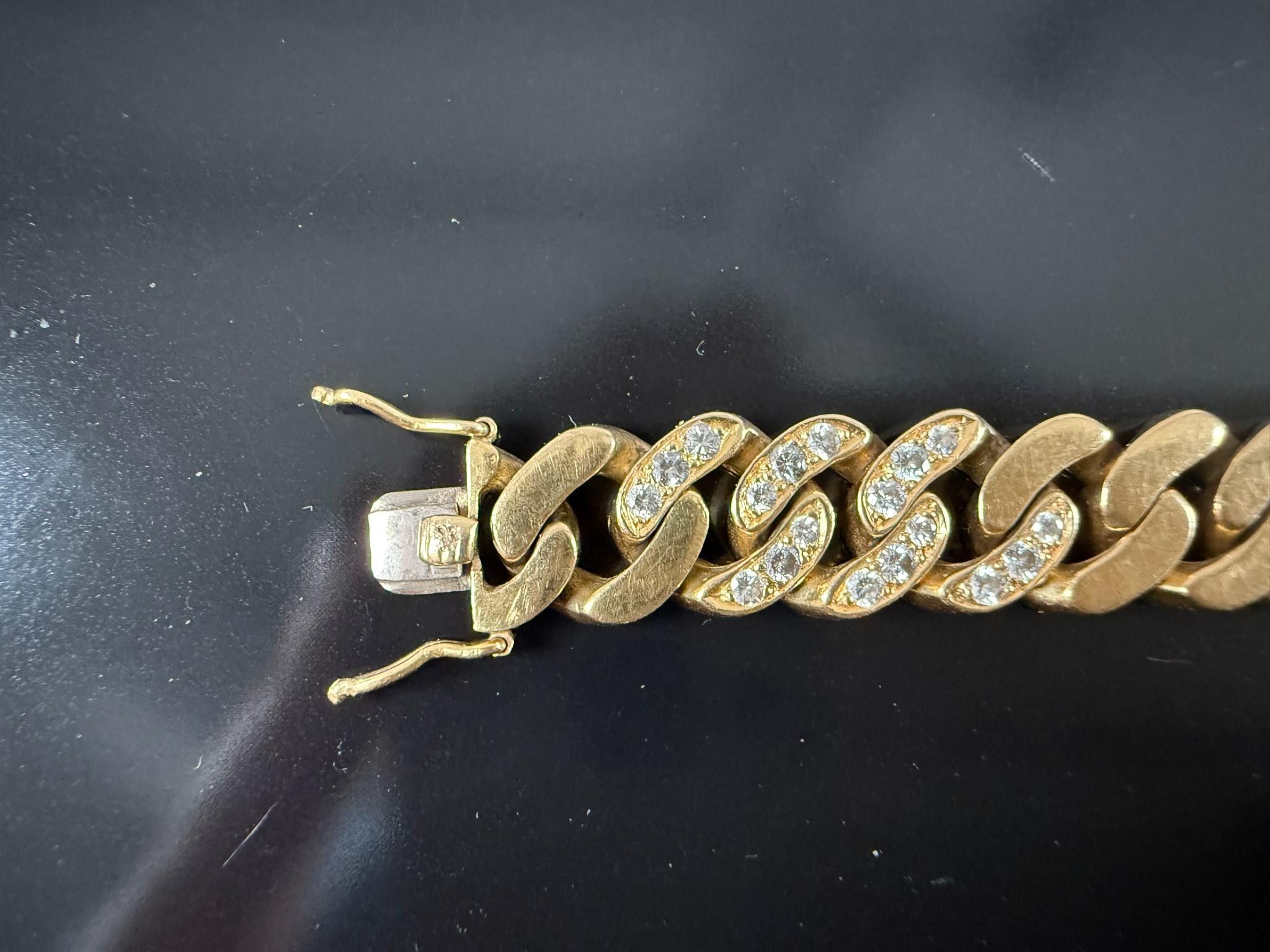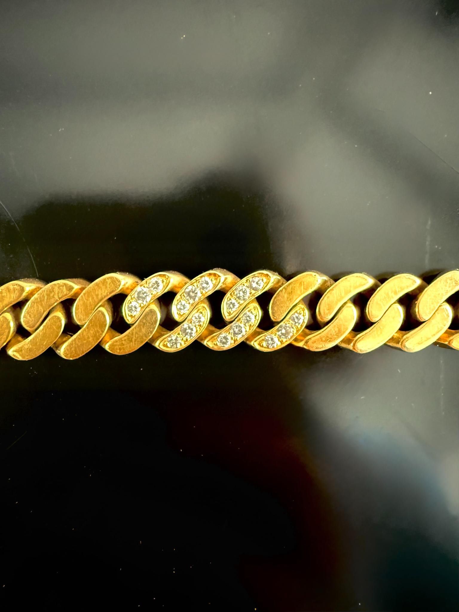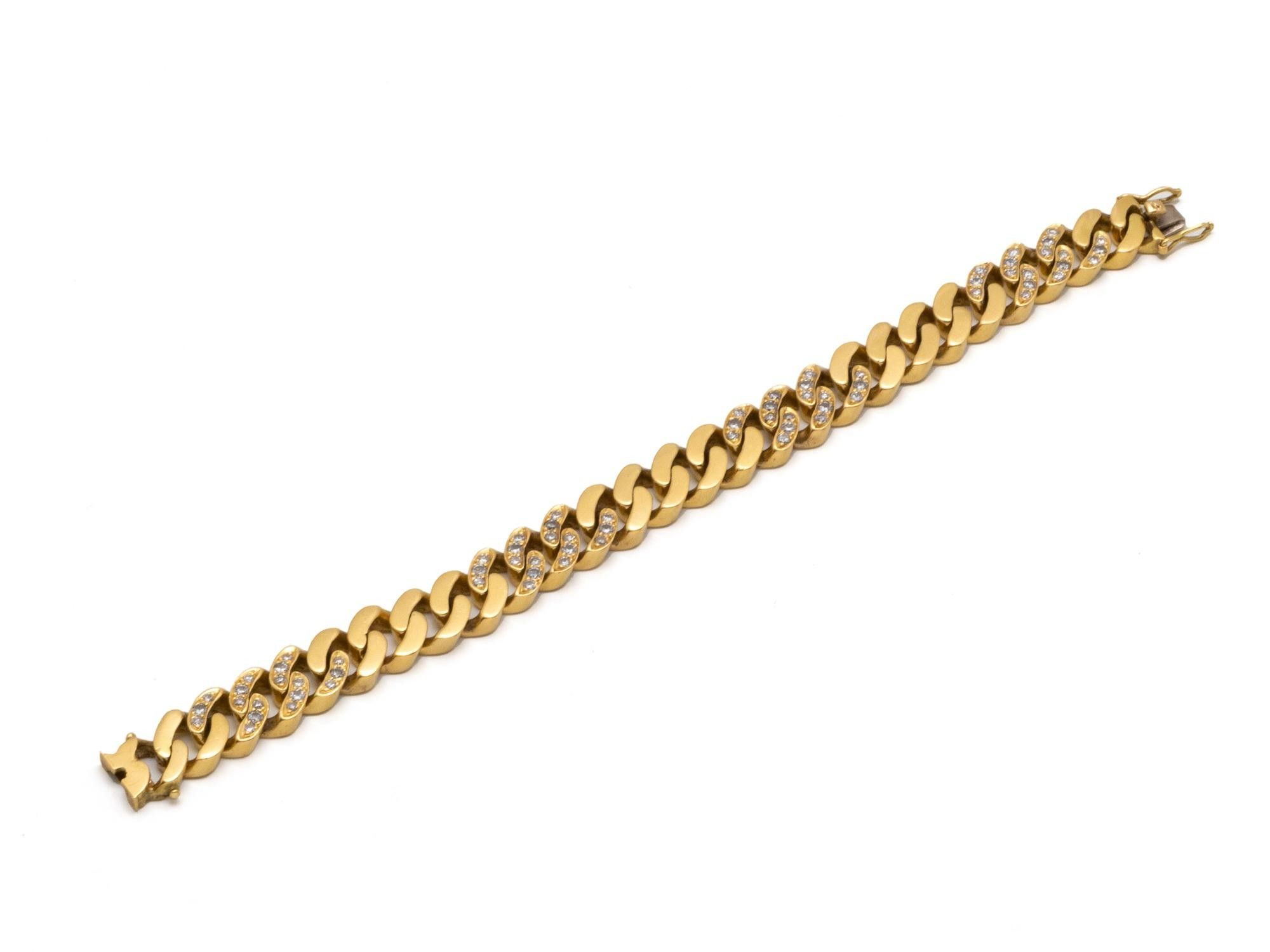 Articulated bracelet in 750 thousandths gold with gourmet links partially punctuated with brilliant-cut diamonds.
