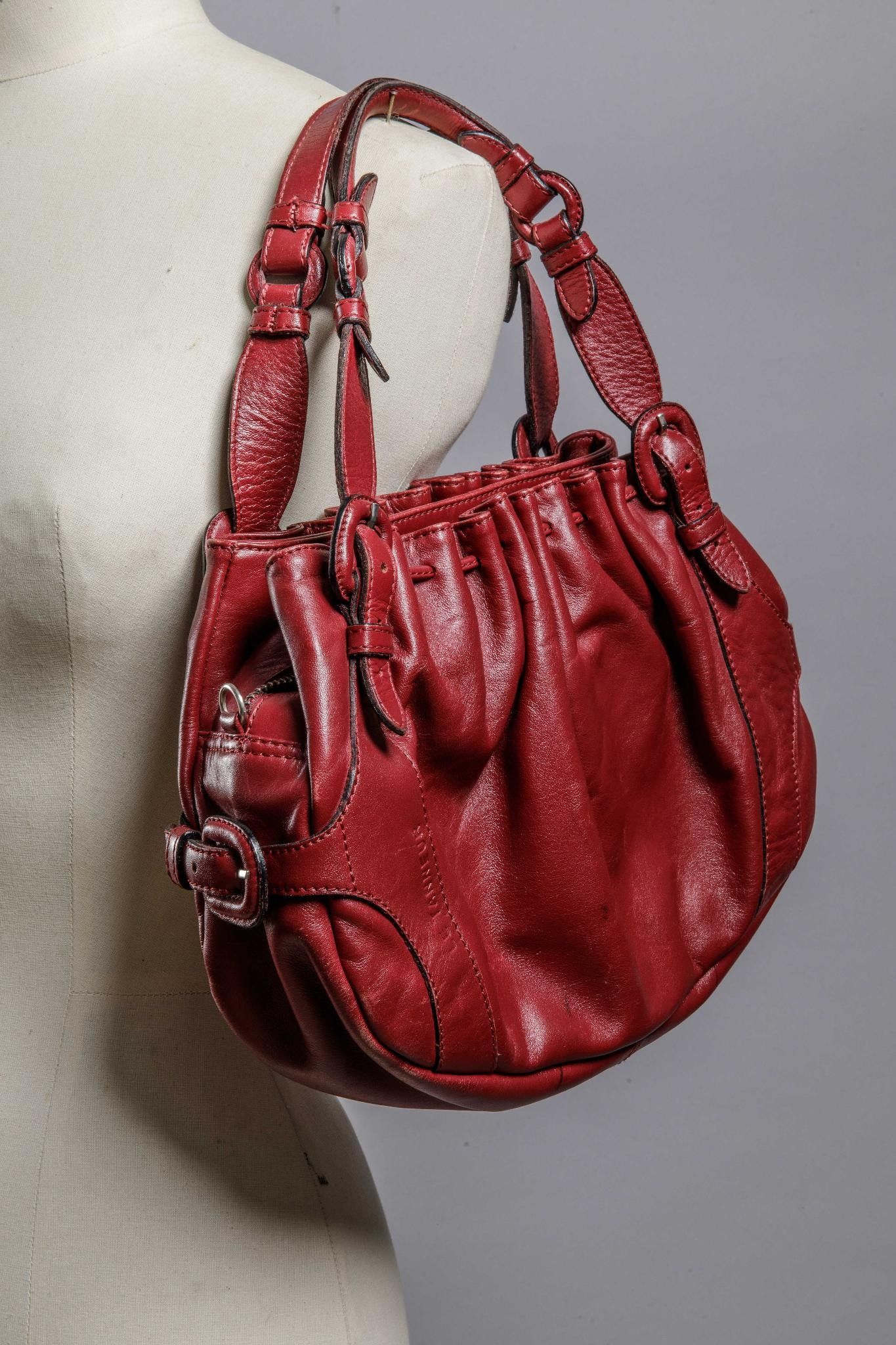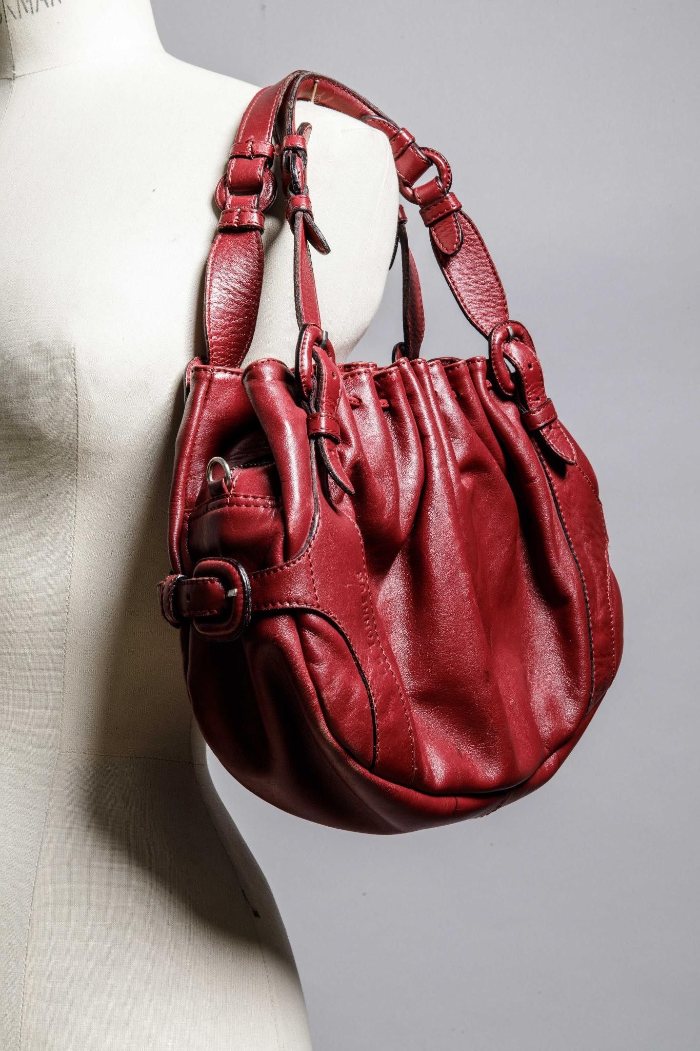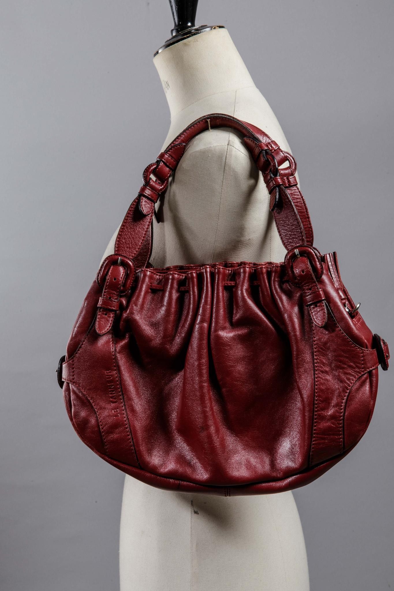 LE TANNEUR. Fuchsia leather shoulder bag, zip fastening, han…