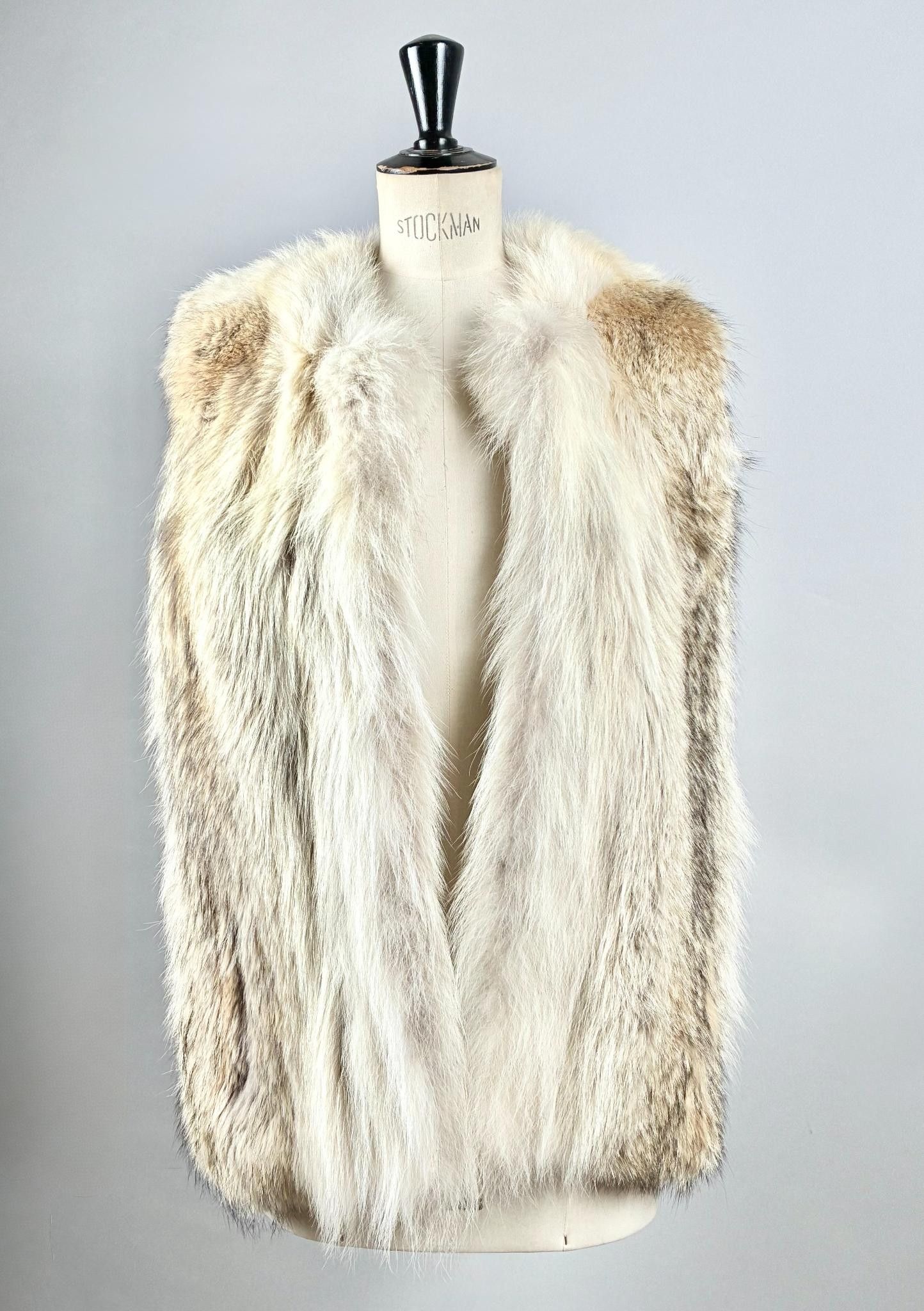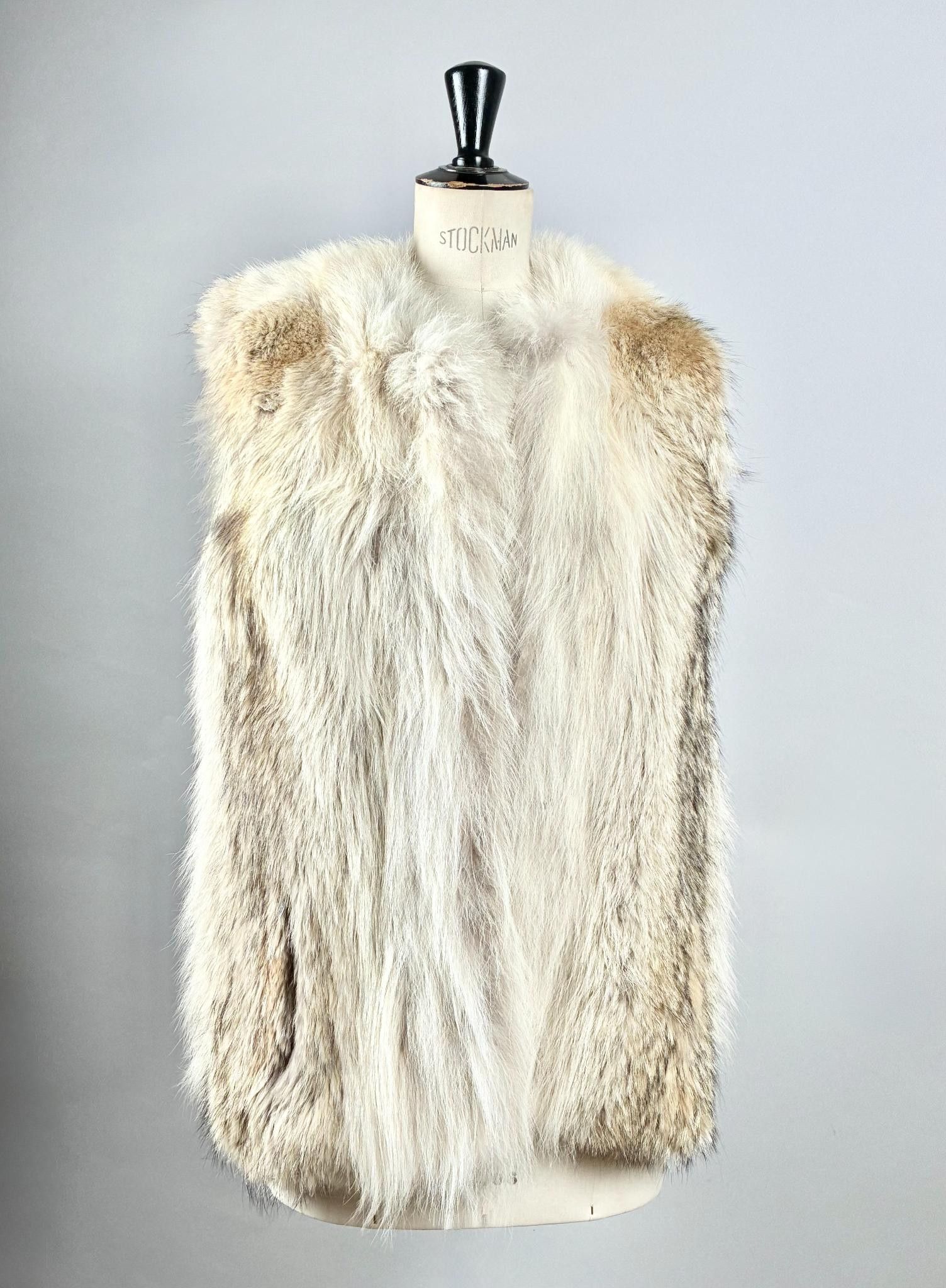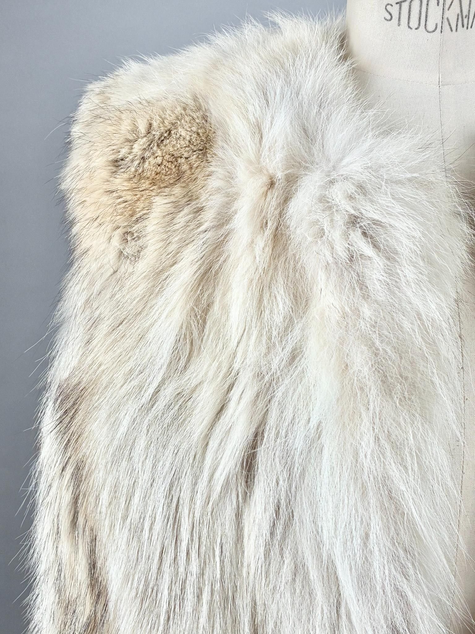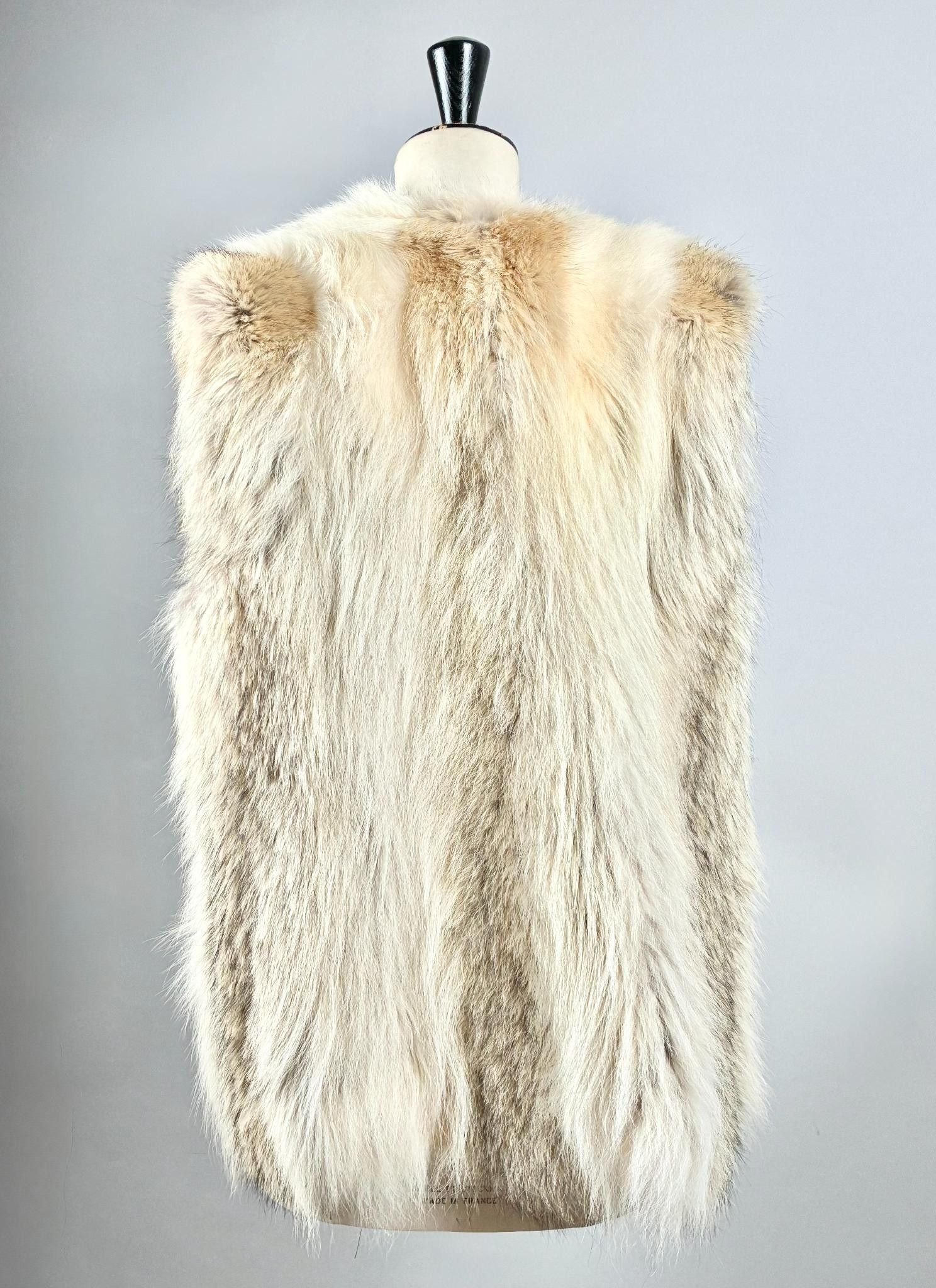 Sleeveless jacket in silver fox fur with monogrammed silk lining