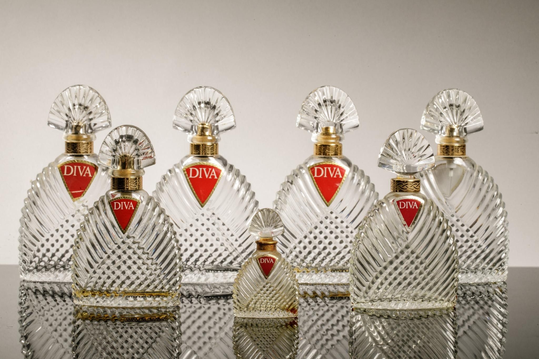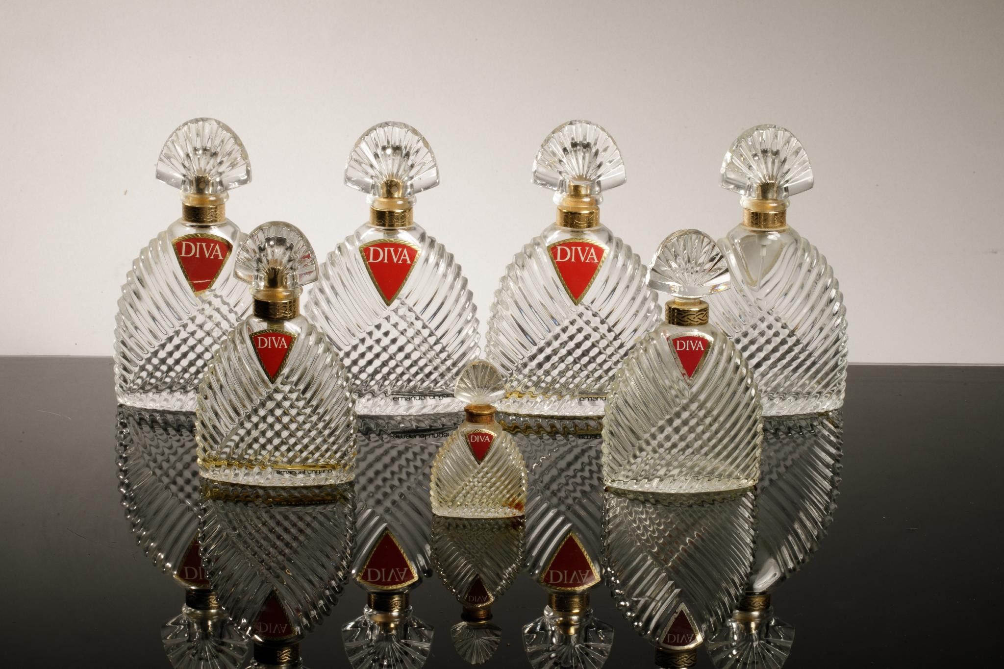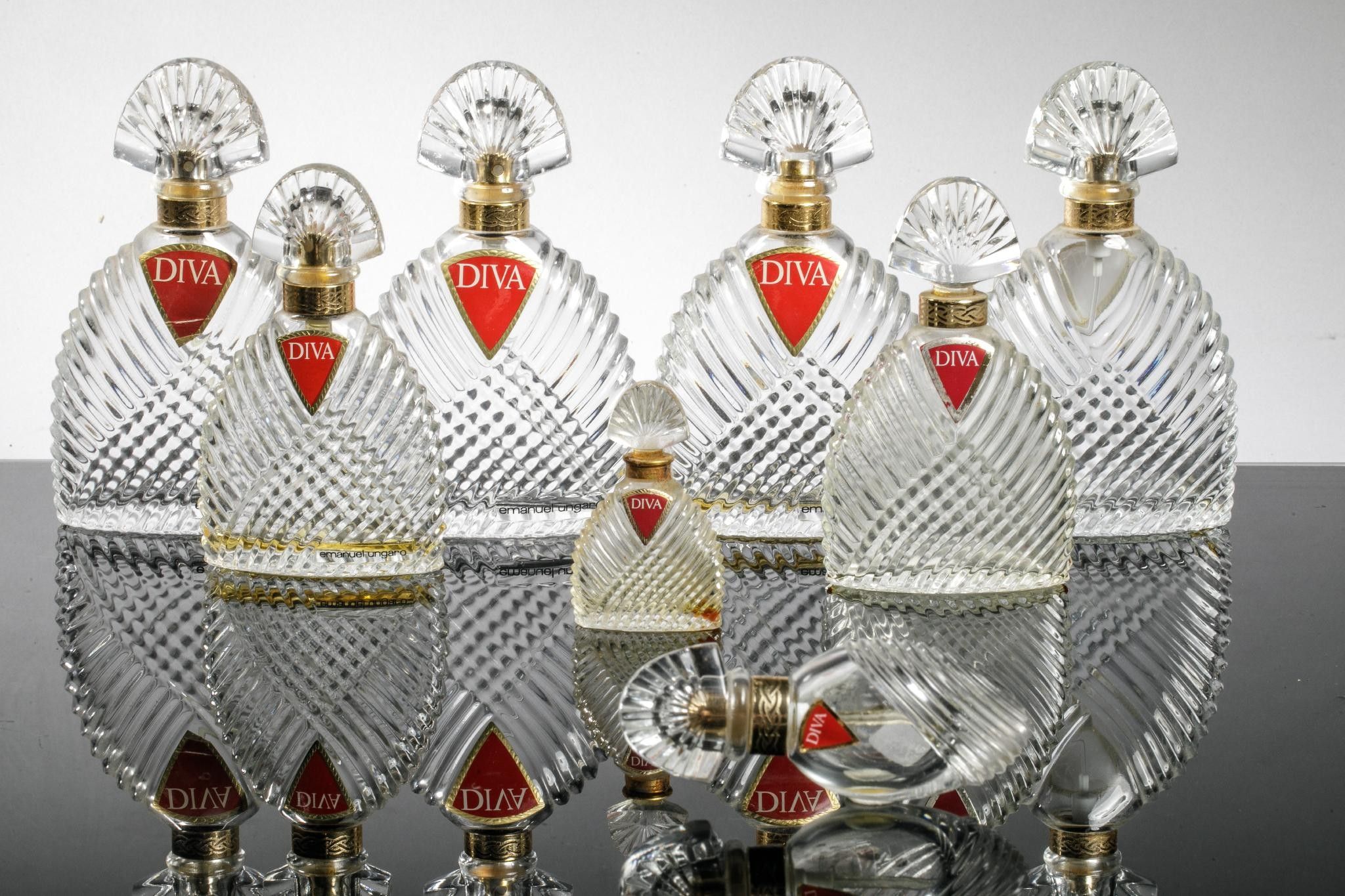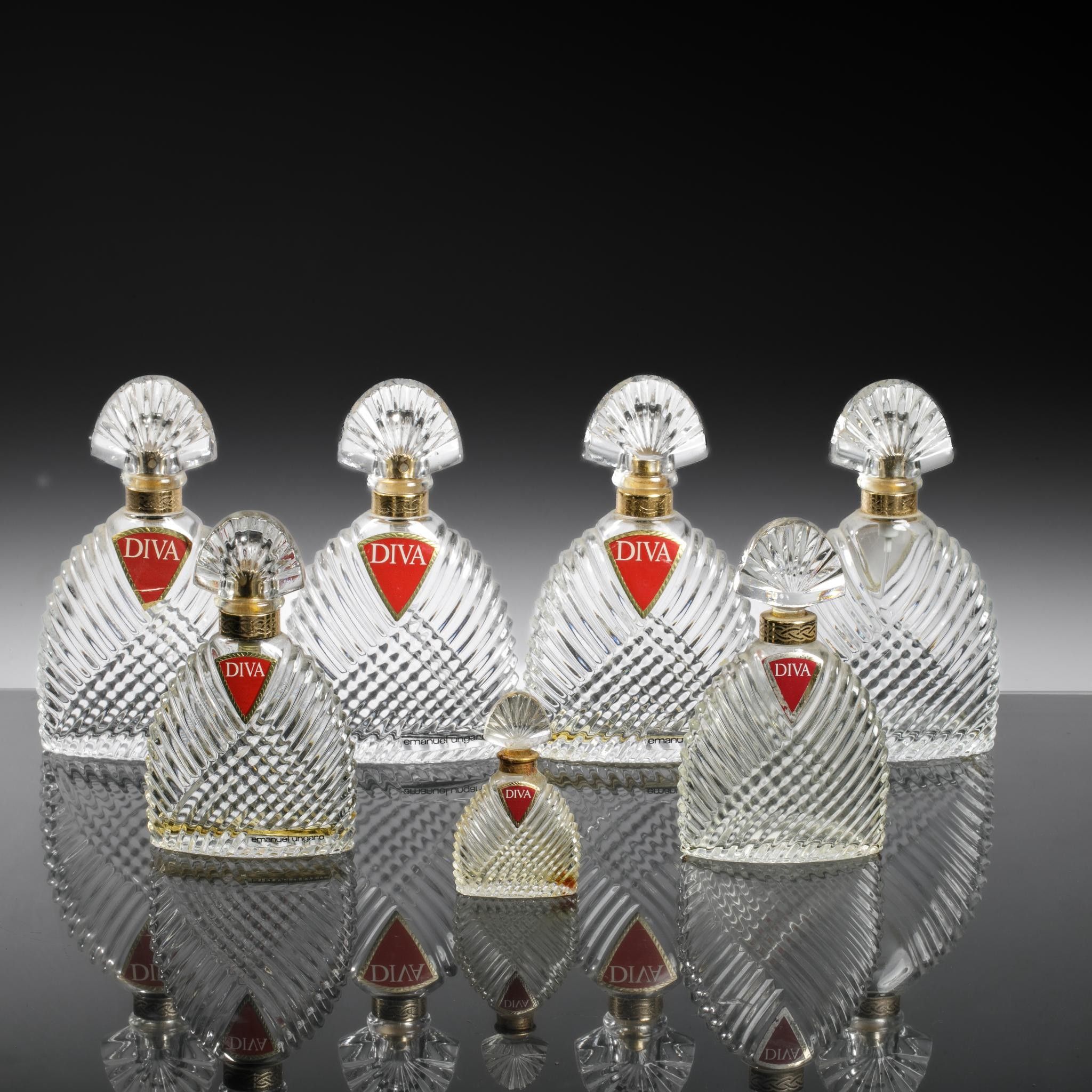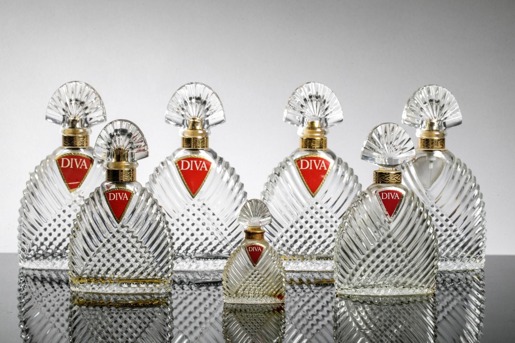 EMMANUEL UNGARO Diva Set of 8 draped moulded glass perfume b…