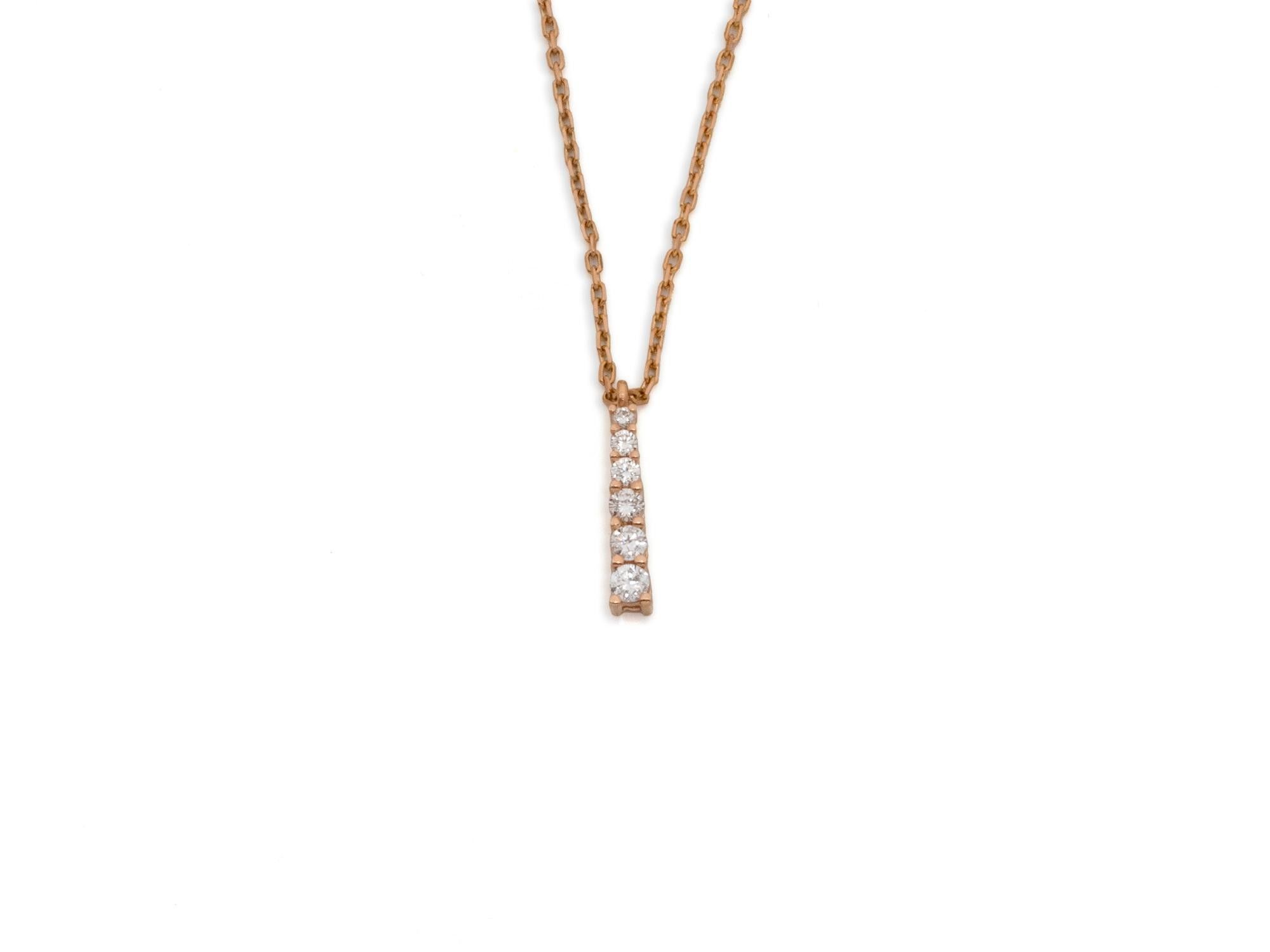 Necklace in 750 thousandths pink gold, holding a long pendant adorned with a drop of brilliant-cut diamonds.
